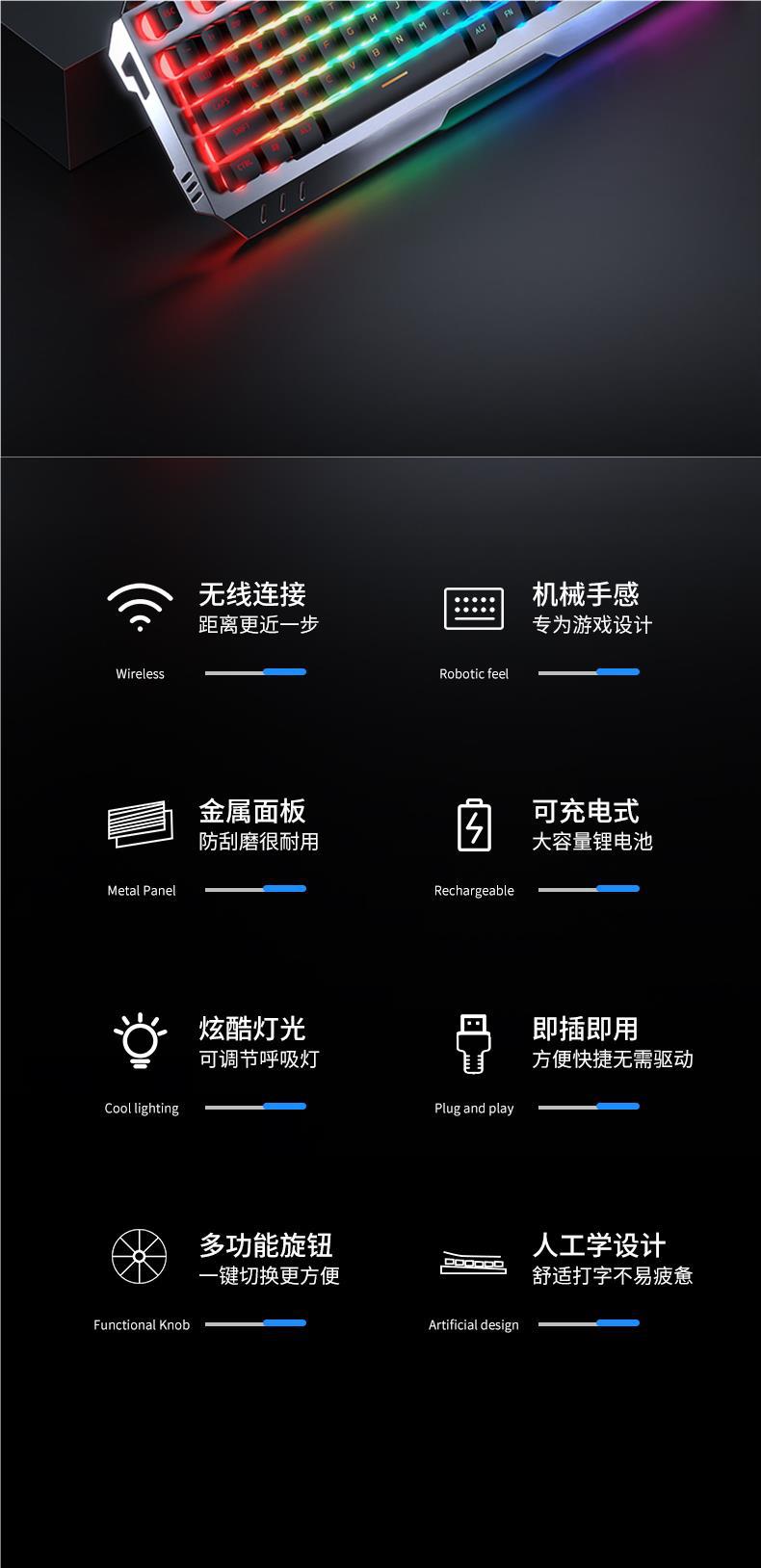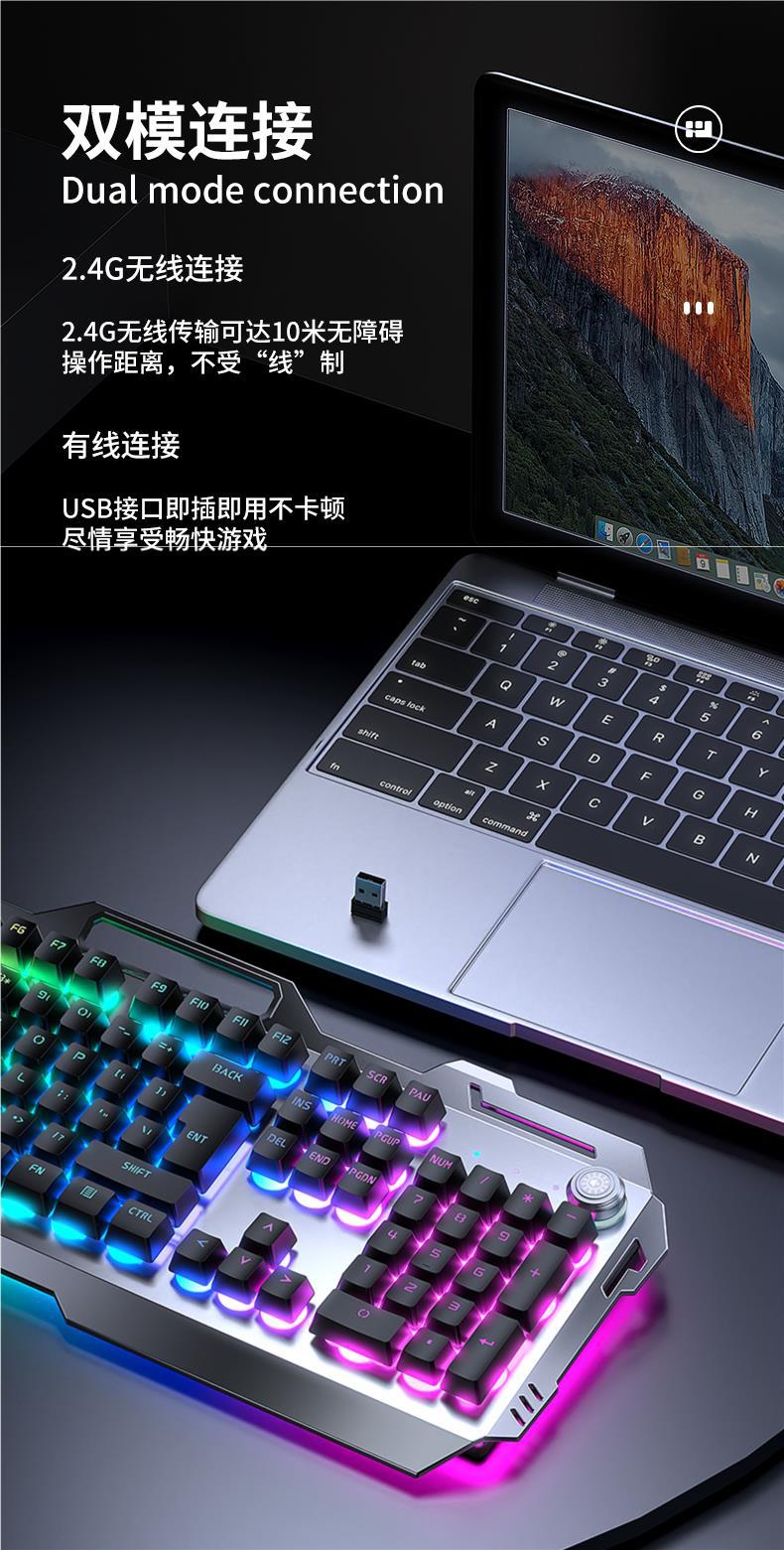 • 금속 기계적 느낌-게임용 특수-실버 블랙 레인보우 라이트 [무선 듀얼 모드 충전 에디션