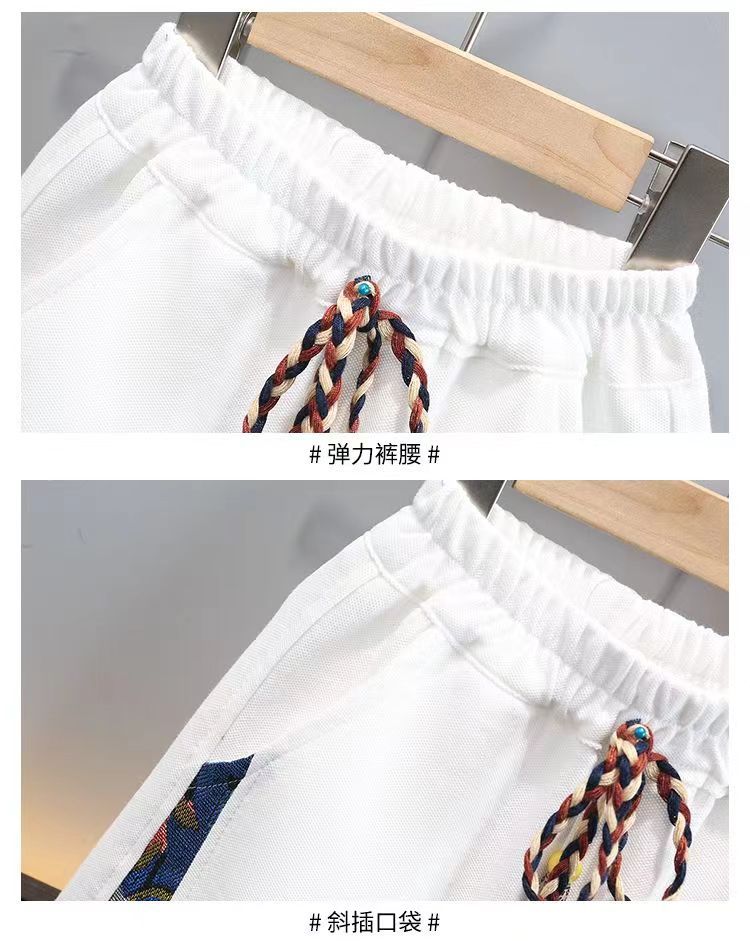 어린이 여름 세트 남자 2024 새 소년 캐주얼 스포츠 투피스 아기 거리 반팔 국가 스타일 아동복