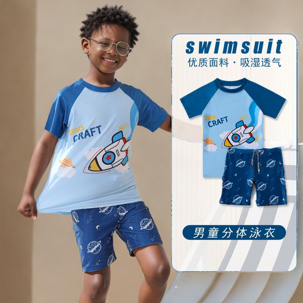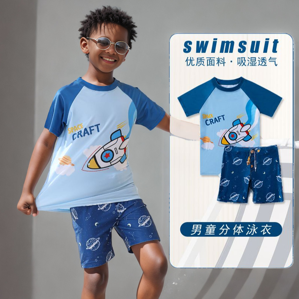 어린이 수영복 소년 분할 소년 2024 새로운 우주선 중형 큰 아이 선 스크린 수영 장비