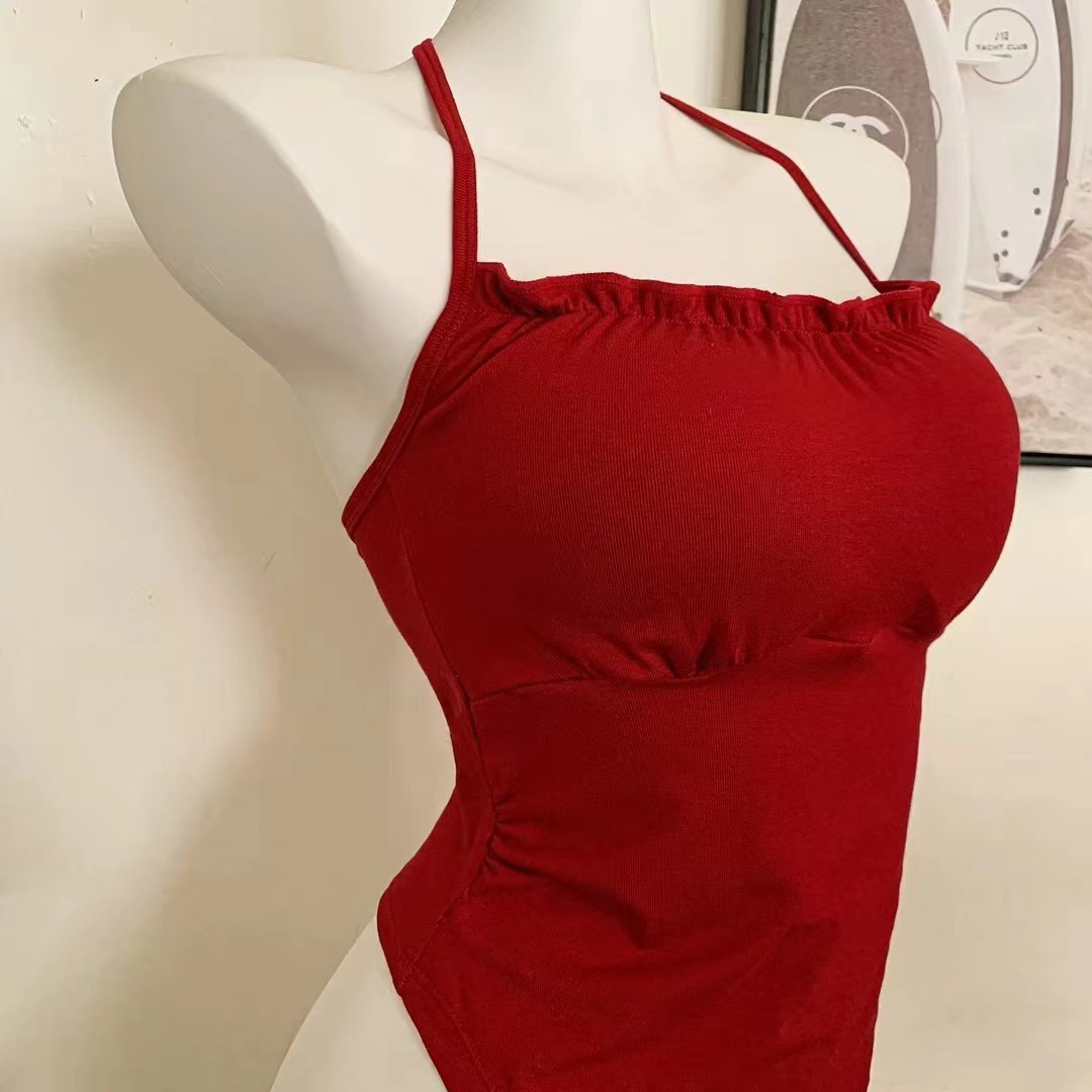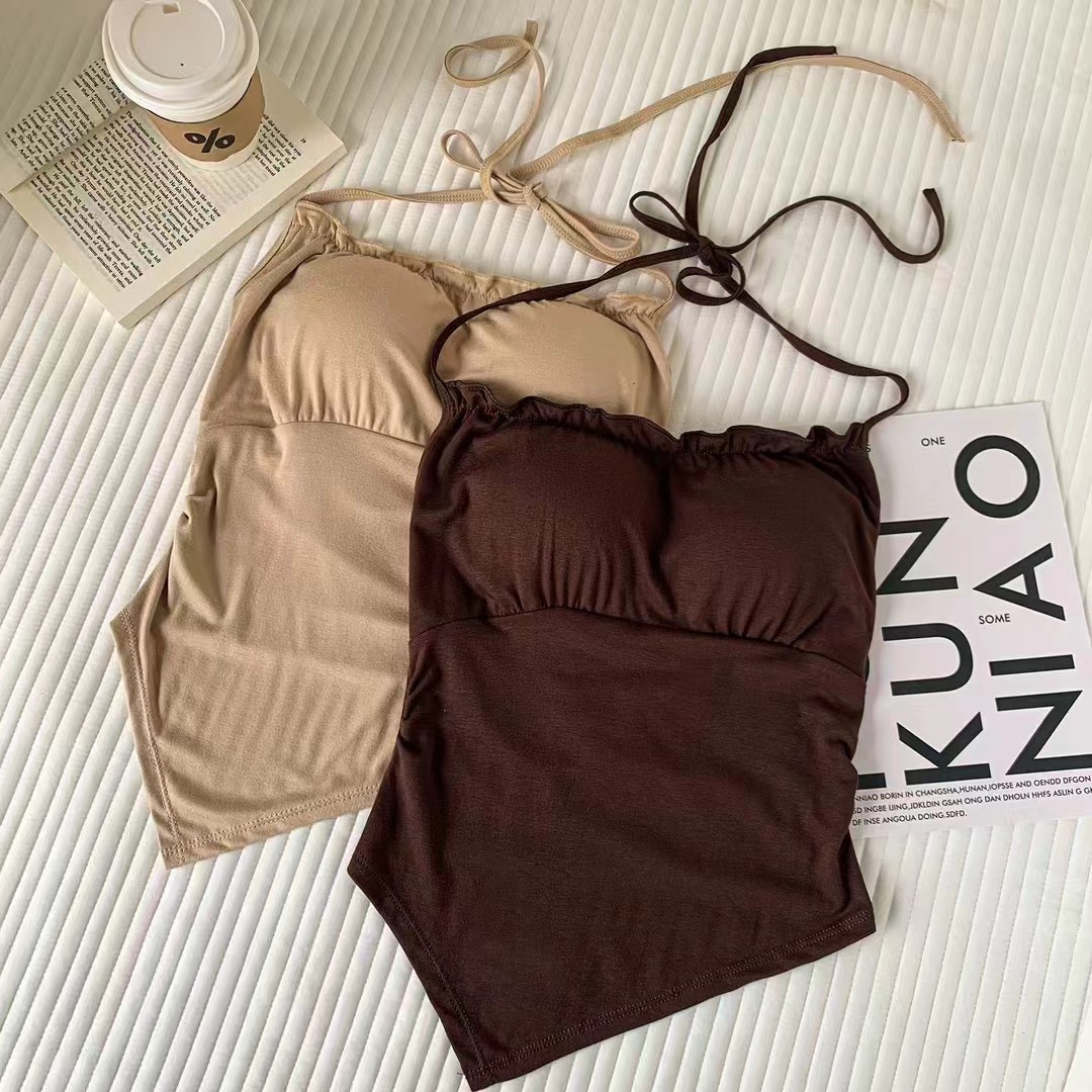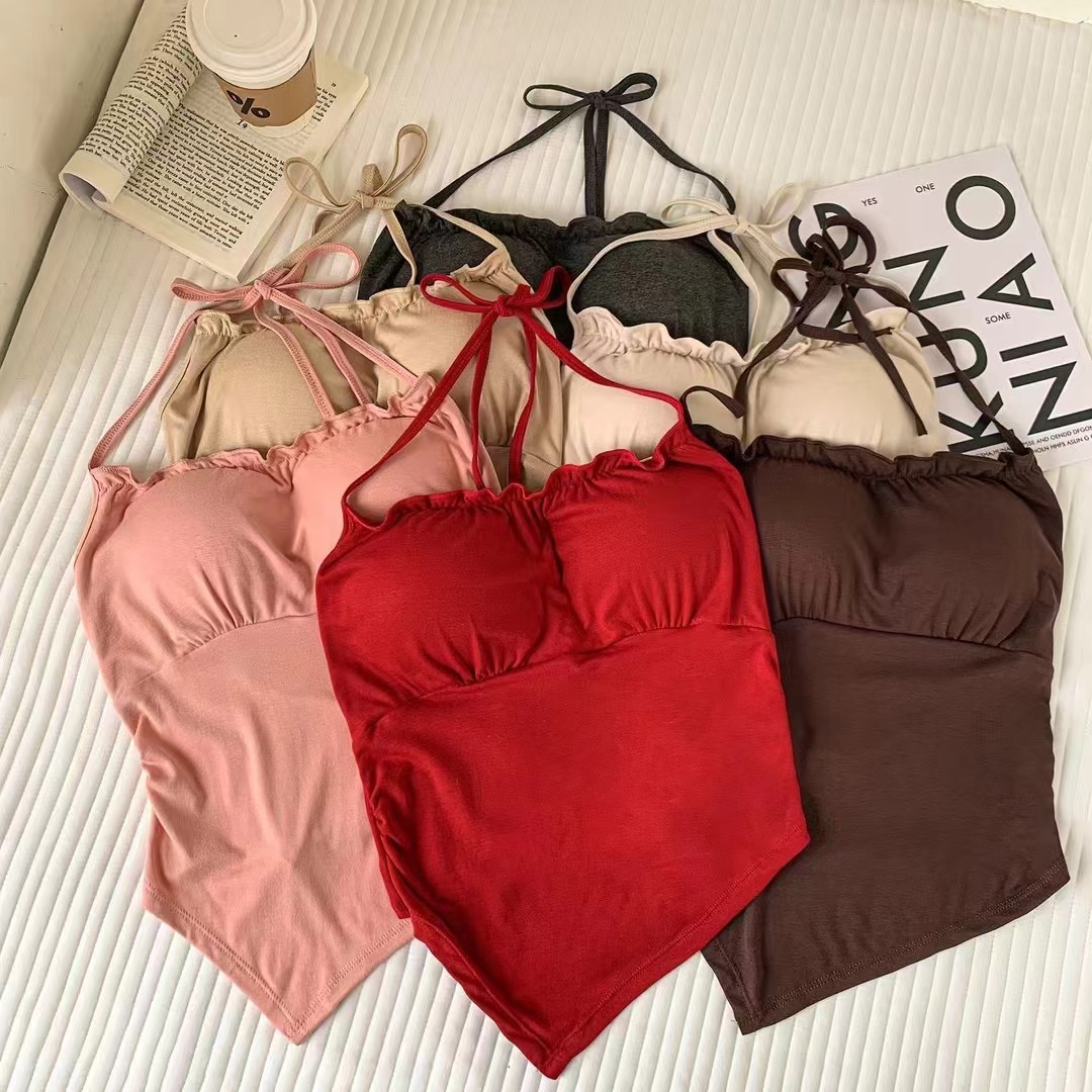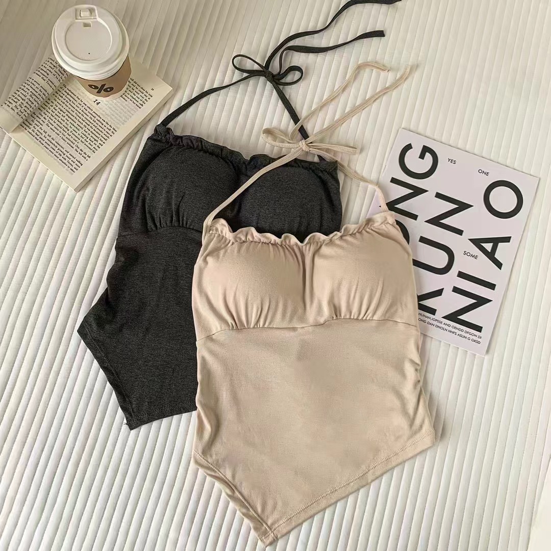 700 # 레이온 스파이스 걸스 고급 센스 우드 엣지 디자인 목에 매달린 아름다운 뒷면 여성 가슴 패드 게으른 카미 솔 조끼