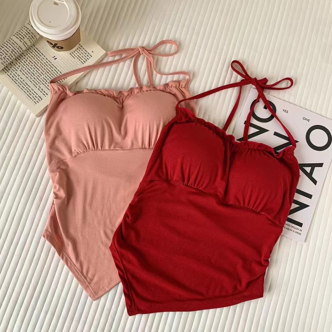 700 # 레이온 스파이스 걸스 고급 센스 우드 엣지 디자인 목에 매달린 아름다운 뒷면 여성 가슴 패드 게으른 카미 솔 조끼스토어 가기