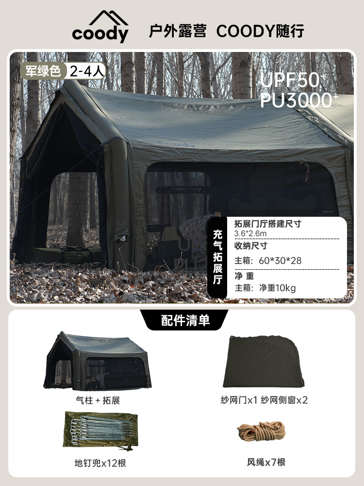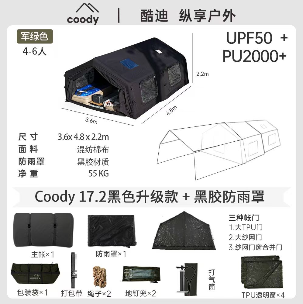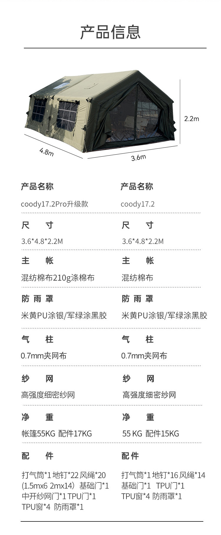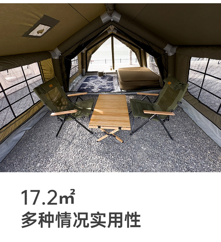Junxin coody 공장 직접 공급 풍선 텐트 17.2 ㎡ 면 천 집 유형 방수 및 자외선 차단제 군용 녹색 캠핑 확장스토어 가기