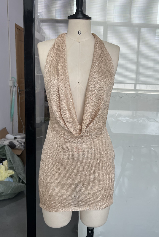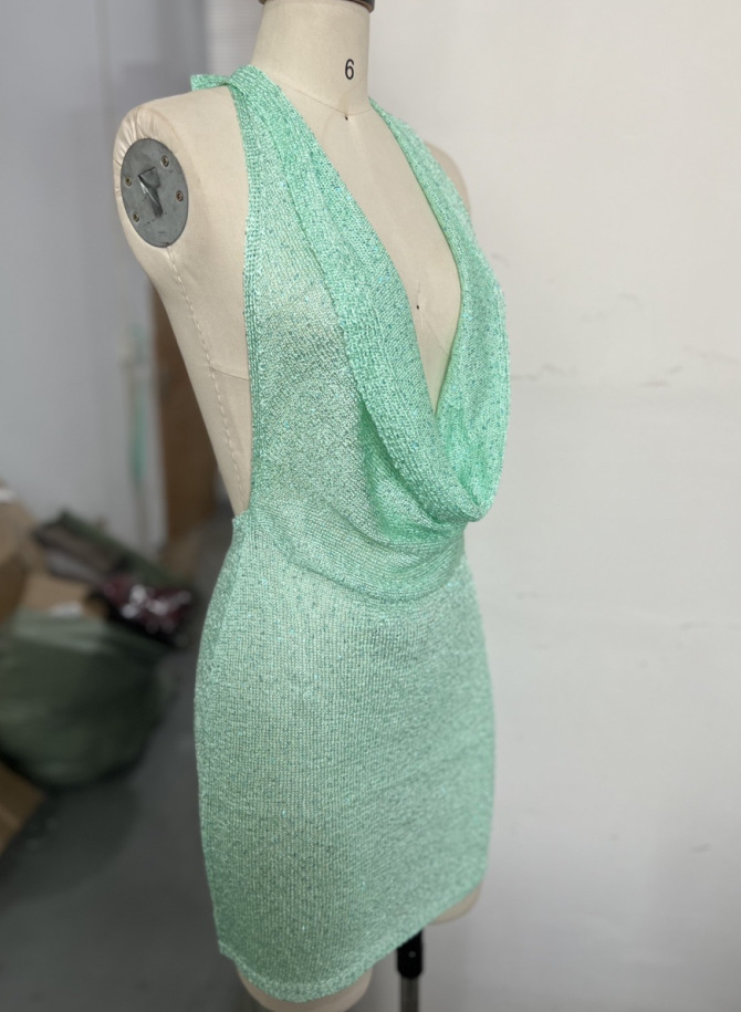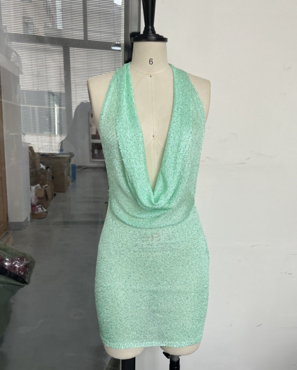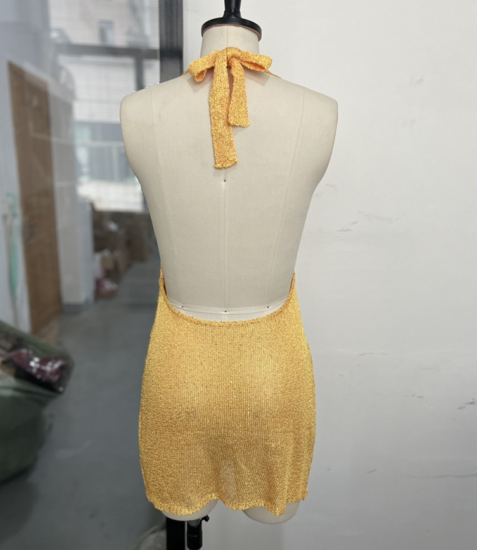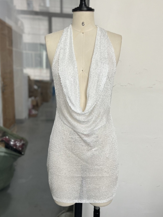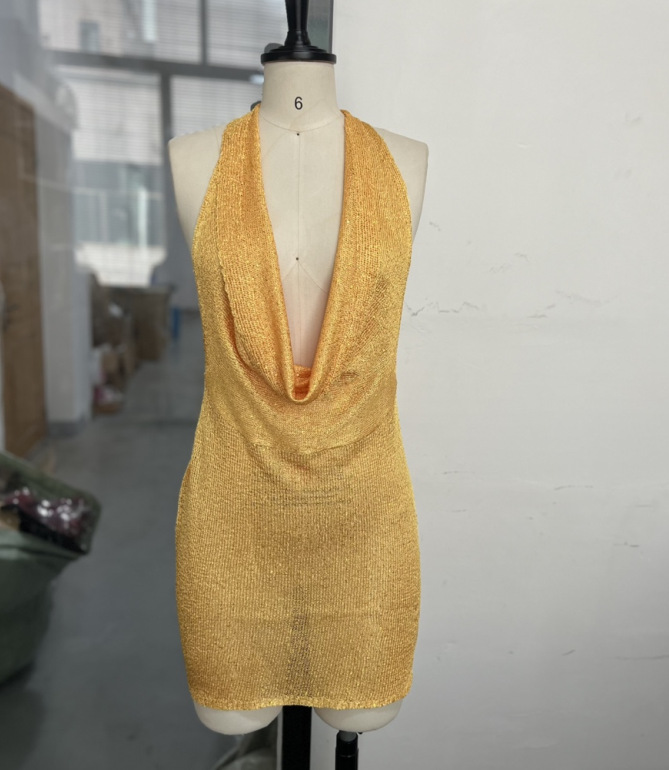 2025 유럽과 미국의 대외 무역 여성 섹시한 민소매 홀터넥 스윙 칼라 노출 백 힙 드레스스토어 가기