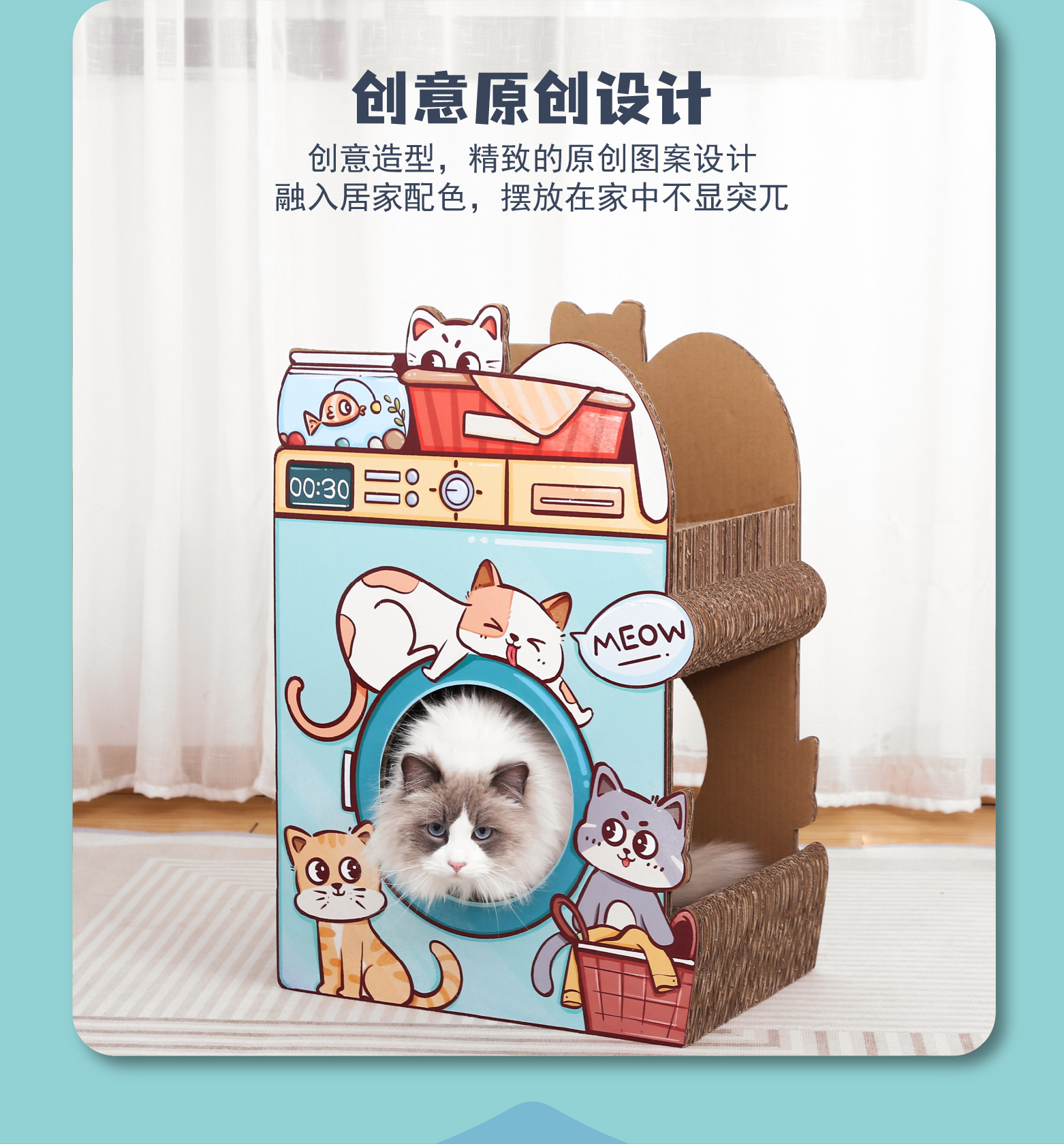 Guipei-Meow Meow 세탁기-무료 조립 고양이 스크래치 보드 둥지 골판지 장난감 고양이 둥지 고양이 집 고양이 연삭 발톱스토어 가기