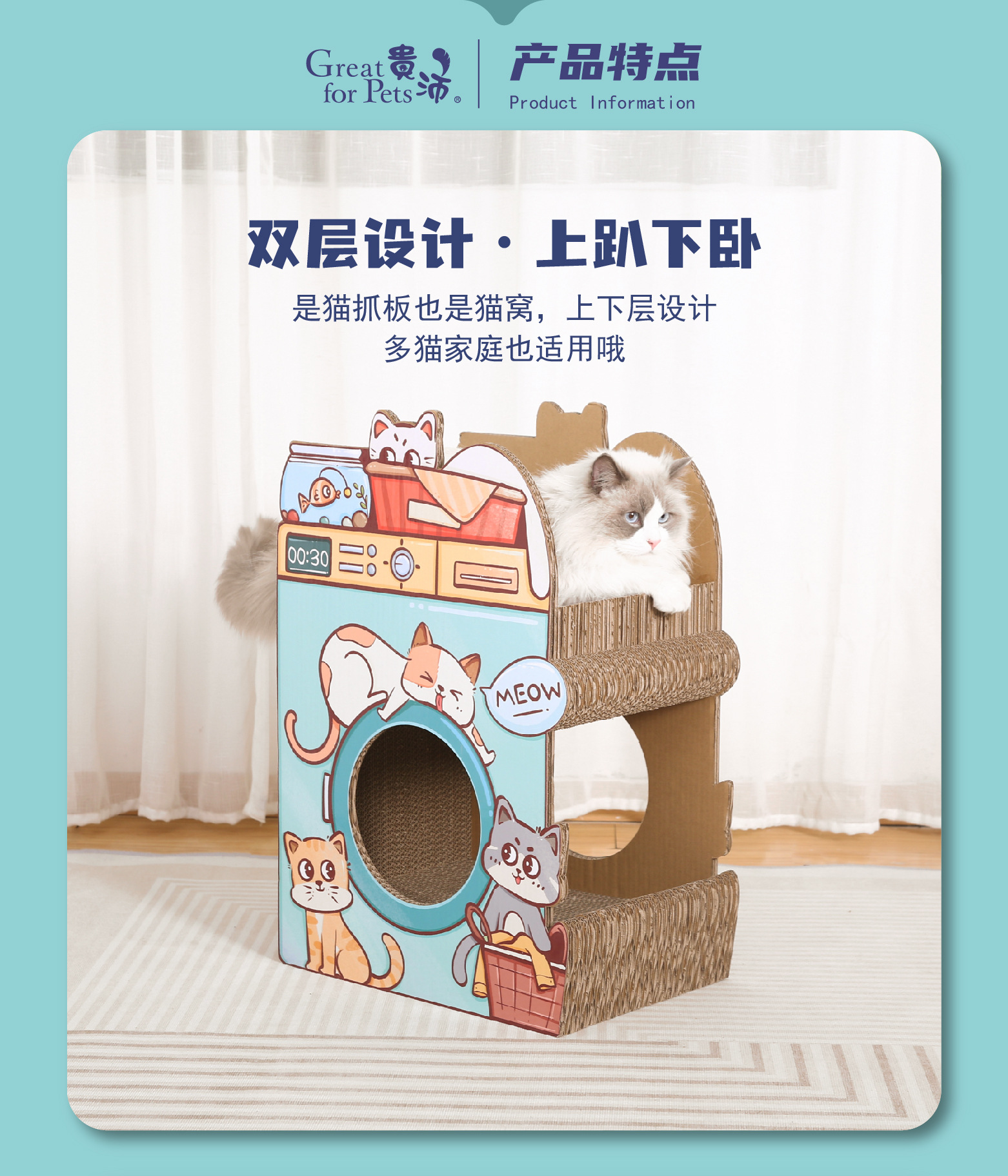 Guipei-Meow Meow 세탁기-무료 조립 고양이 스크래치 보드 둥지 골판지 장난감 고양이 둥지 고양이 집 고양이 연삭 발톱