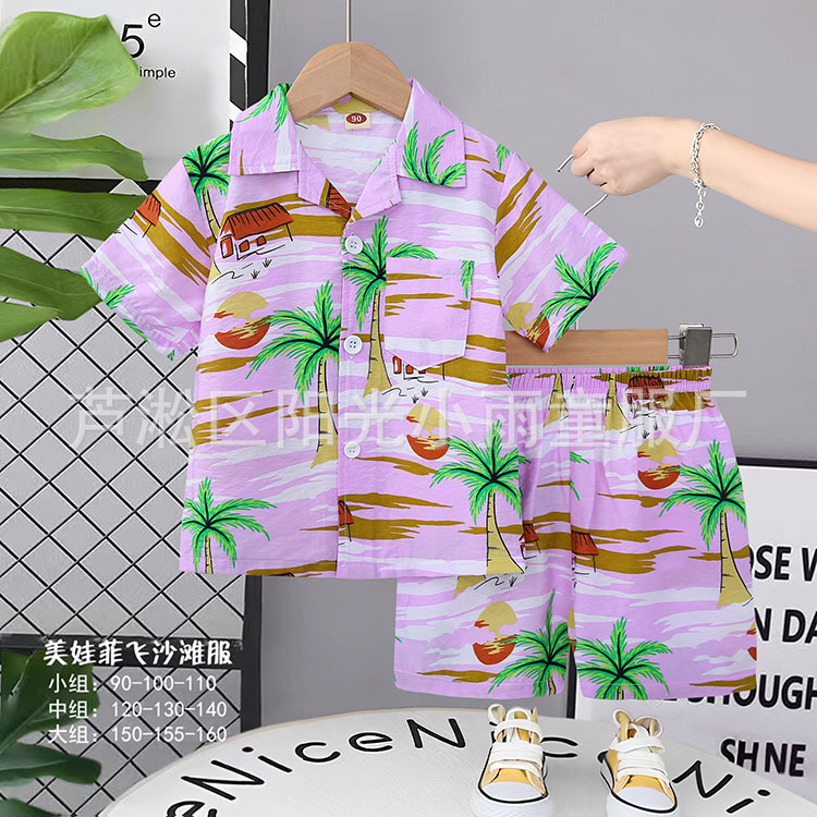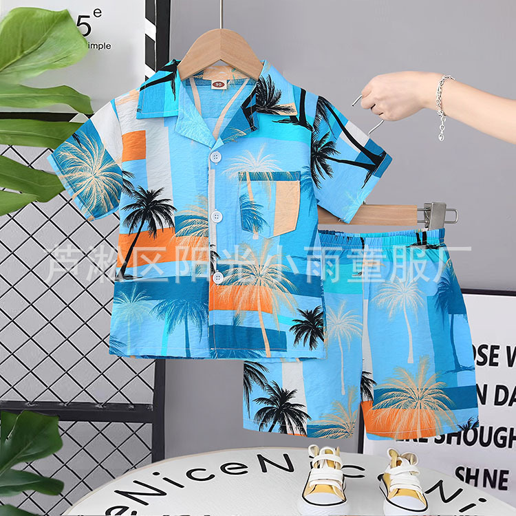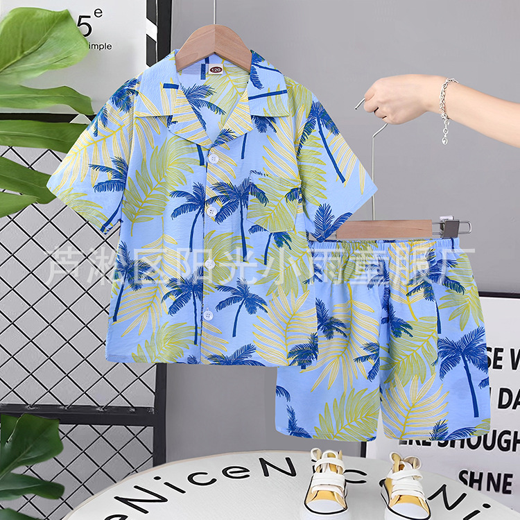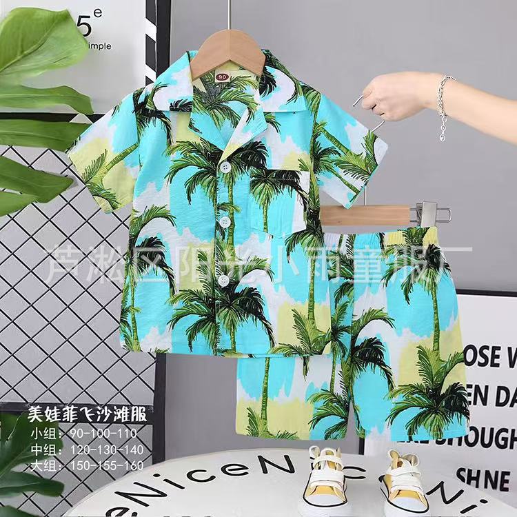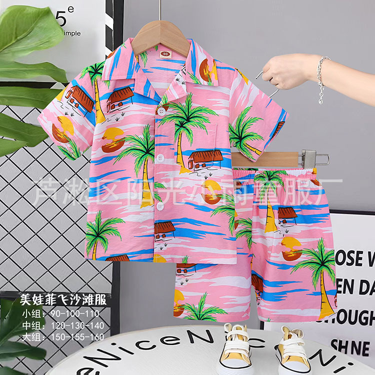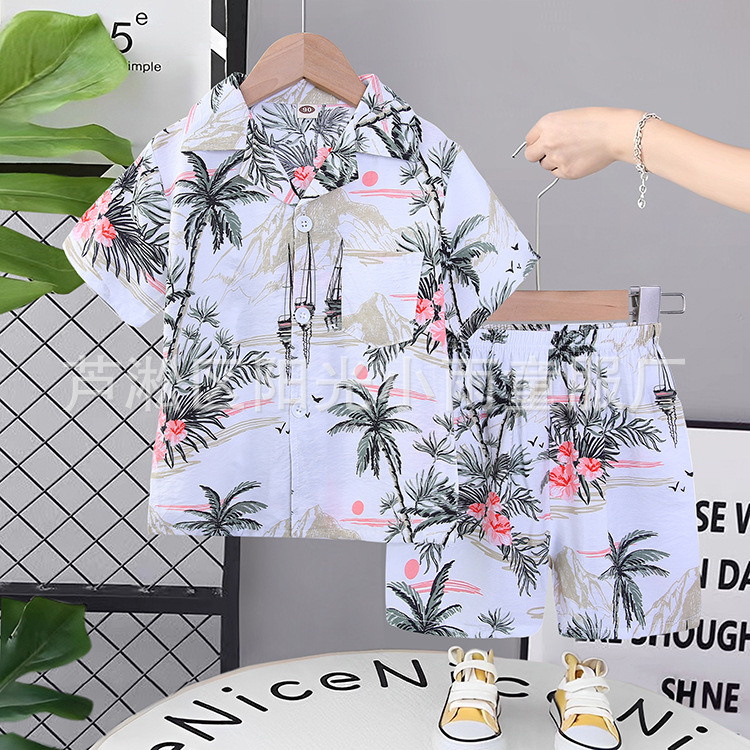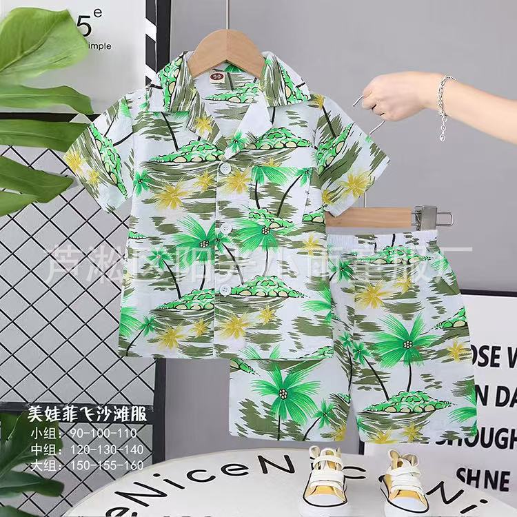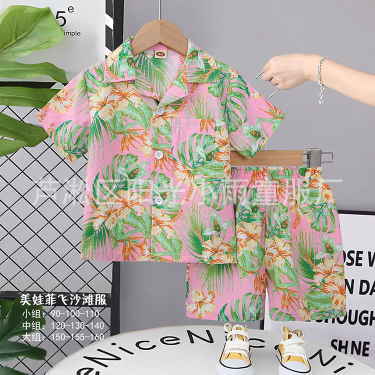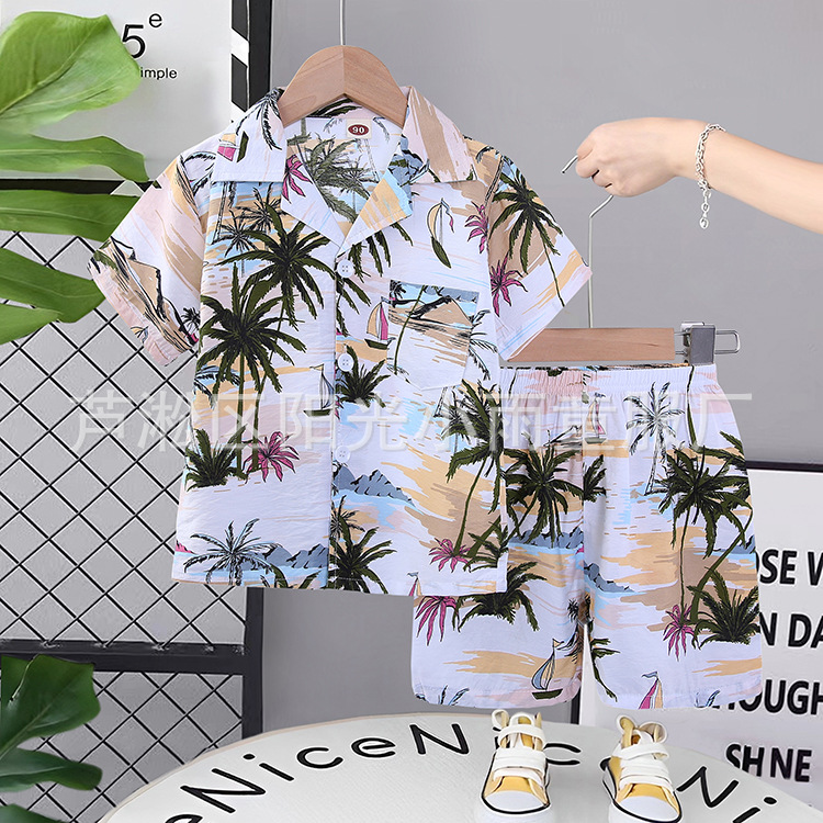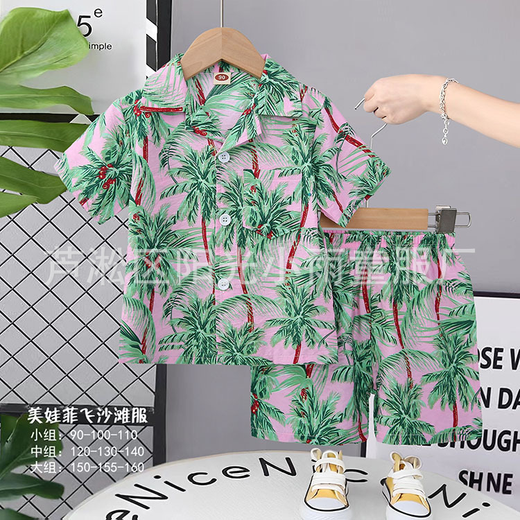 2025 어린이 앞 버클 세트 캐주얼 비치 세트 여름 얇은 느슨한 해변 옷 하와이 반바지