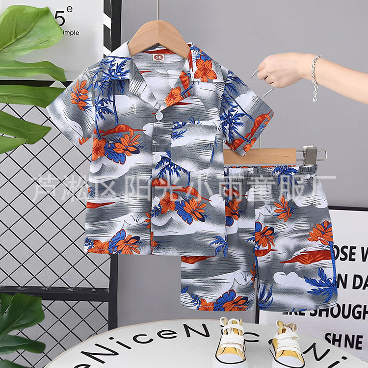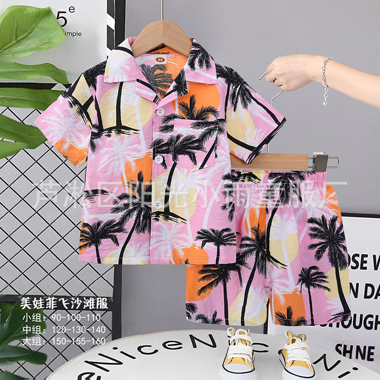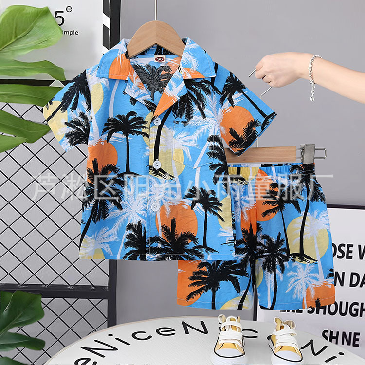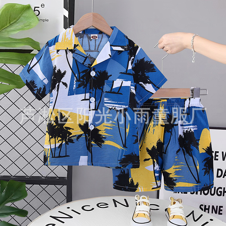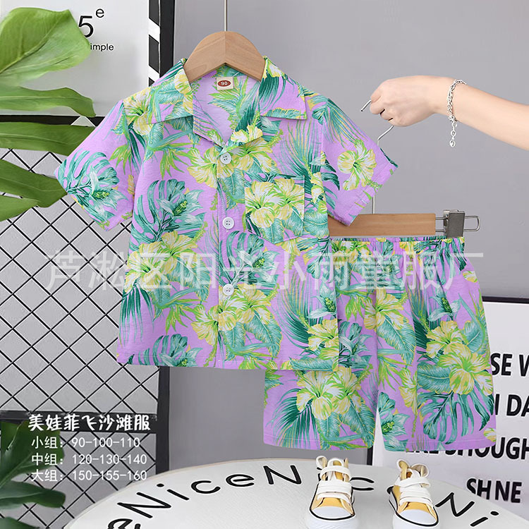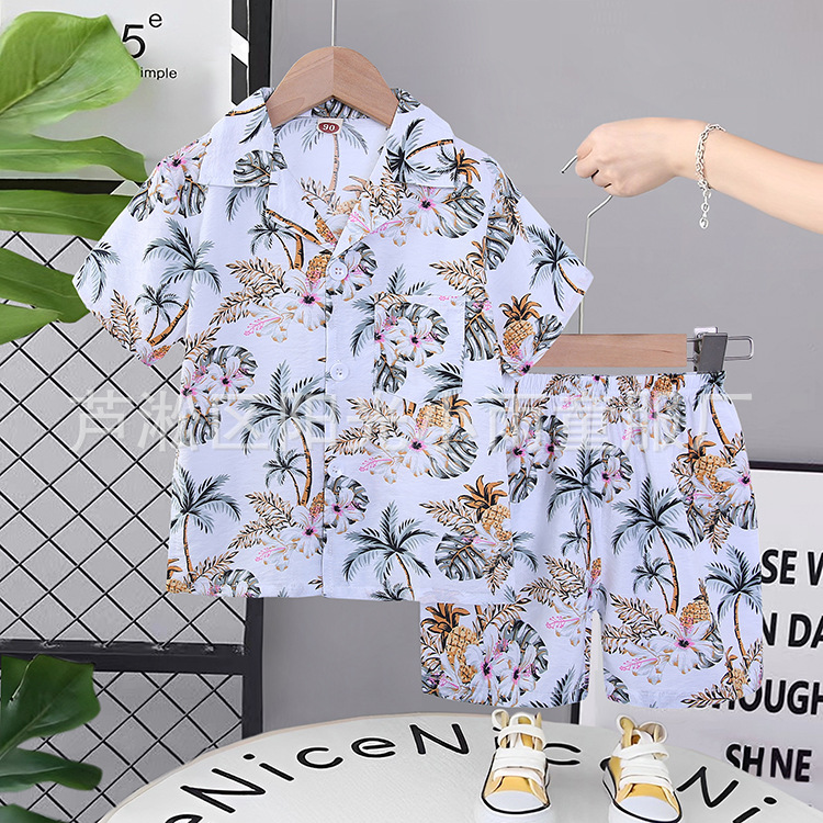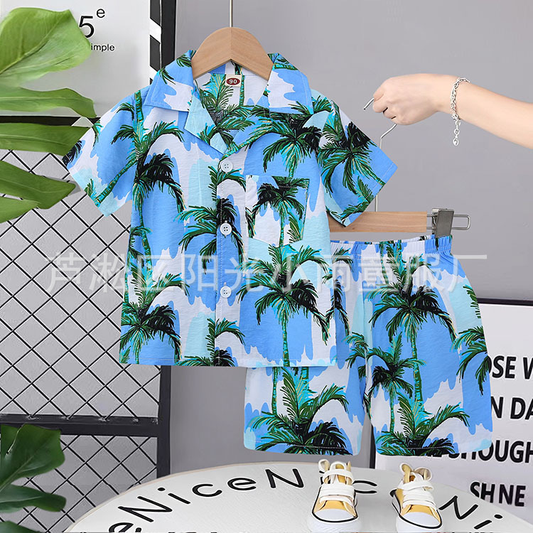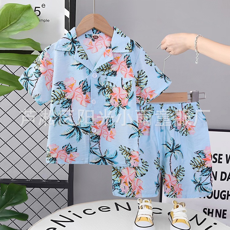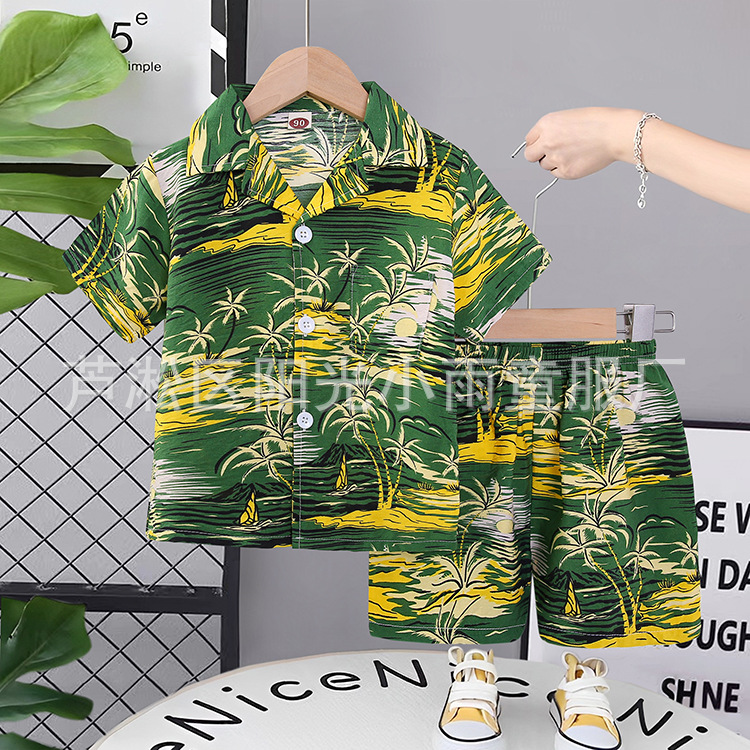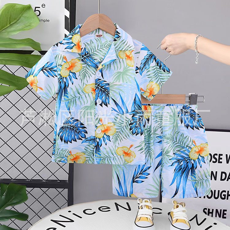 2025 어린이 앞 버클 세트 캐주얼 비치 세트 여름 얇은 느슨한 해변 옷 하와이 반바지