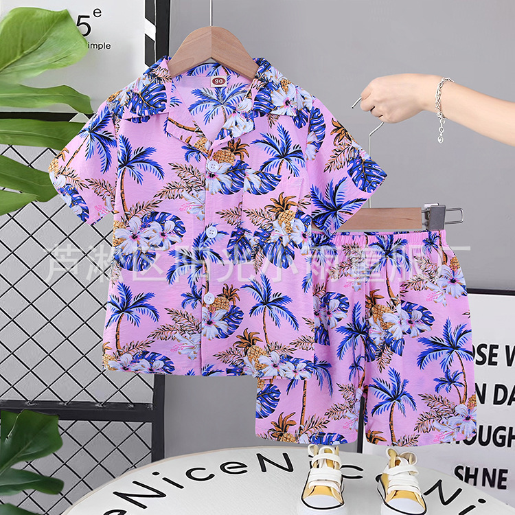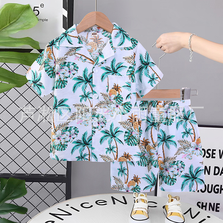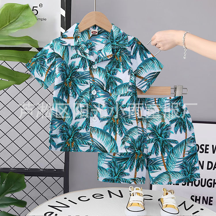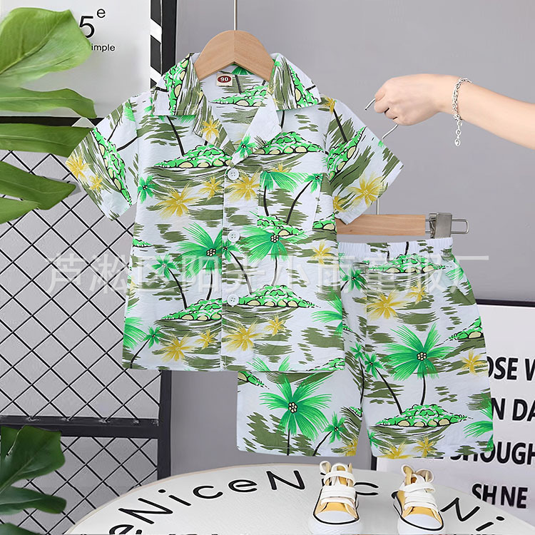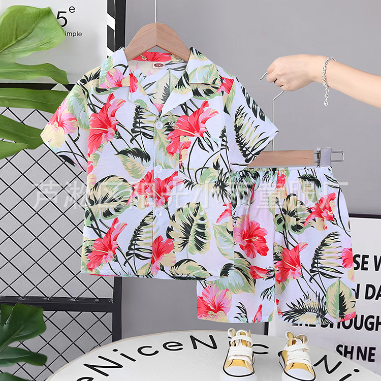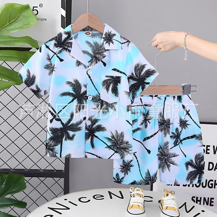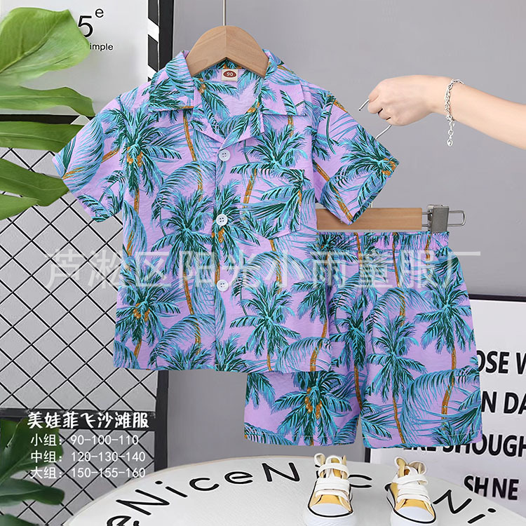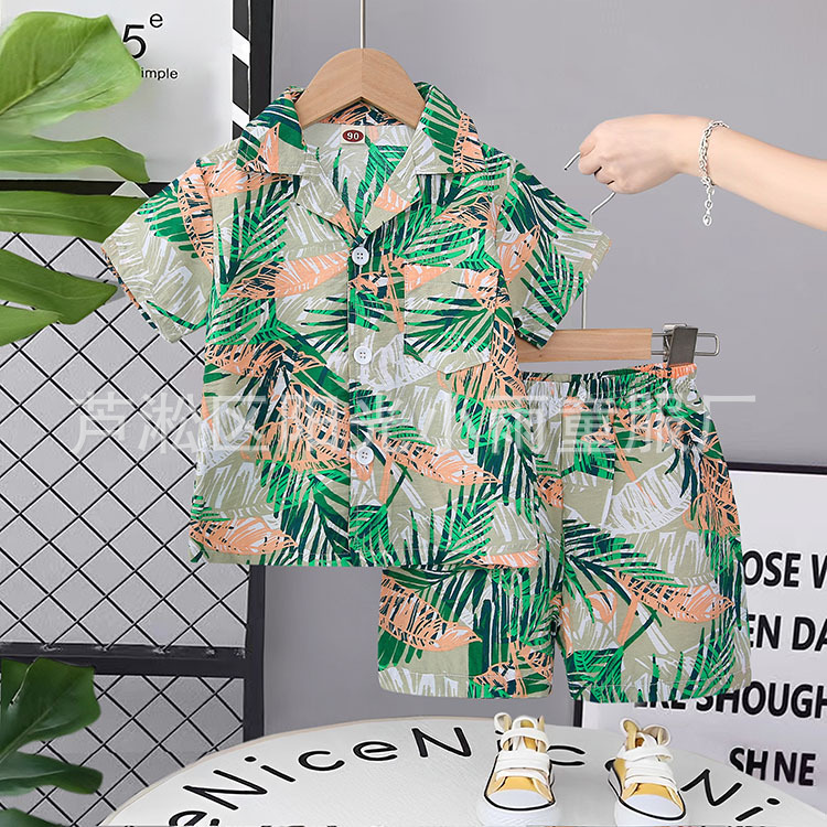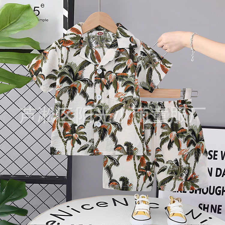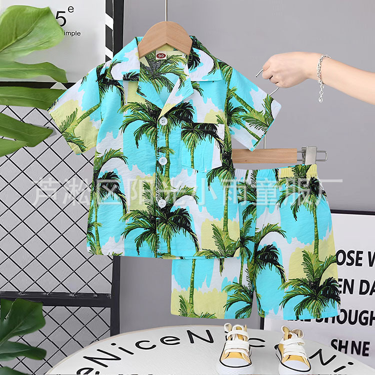 2025 어린이 앞 버클 세트 캐주얼 비치 세트 여름 얇은 느슨한 해변 옷 하와이 반바지