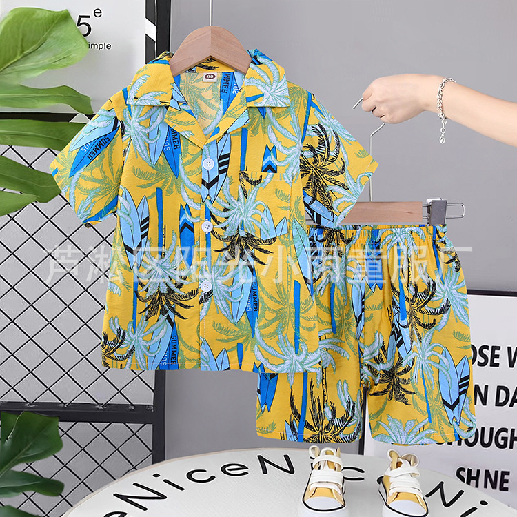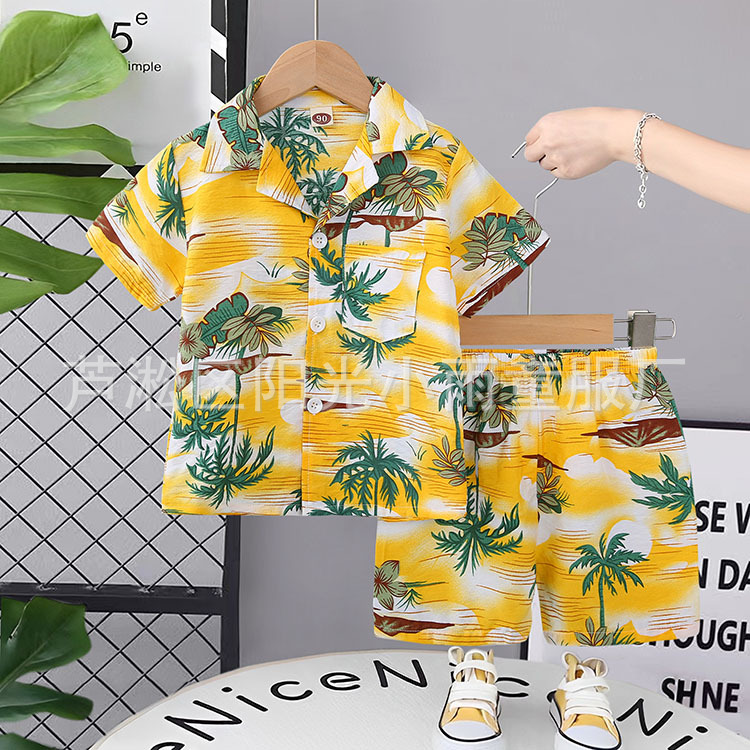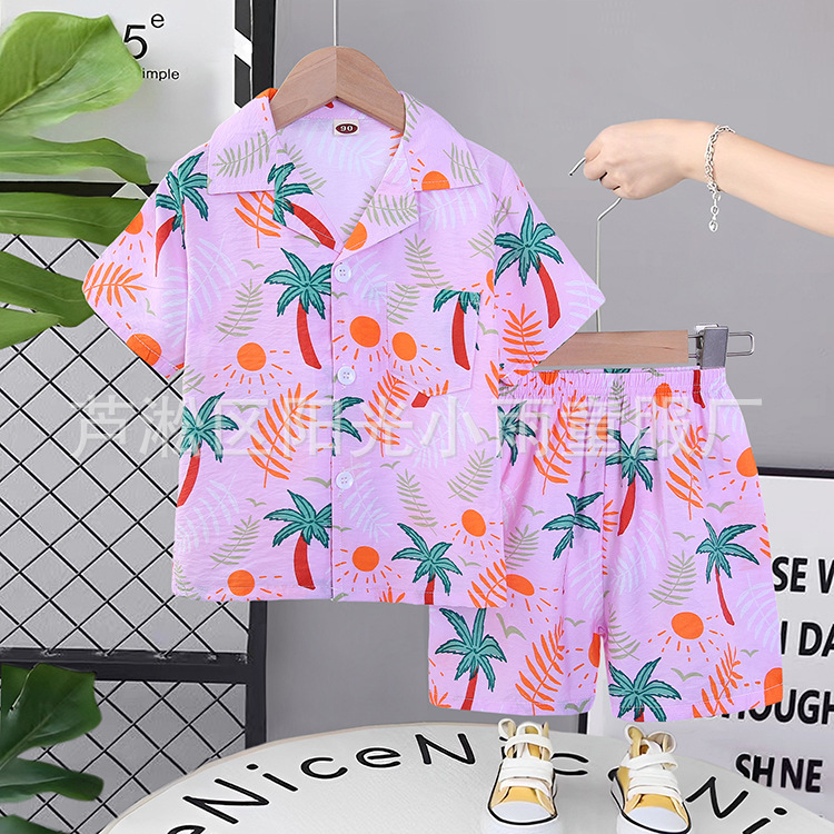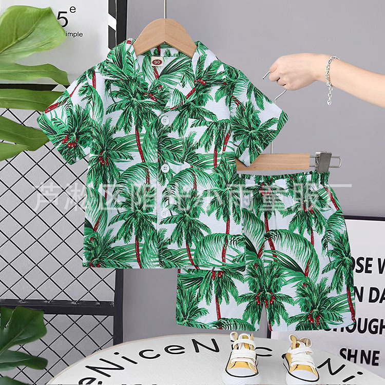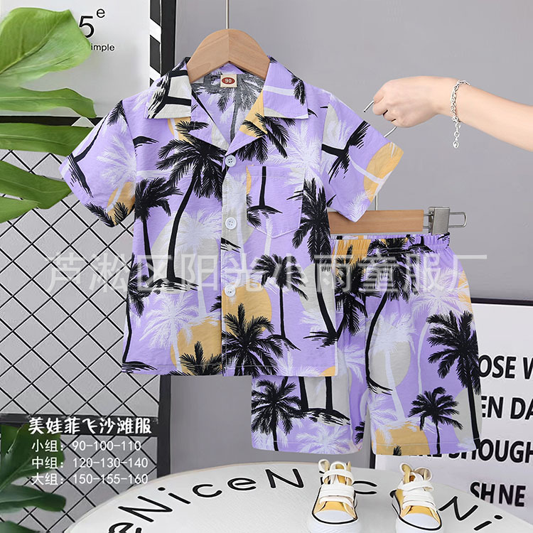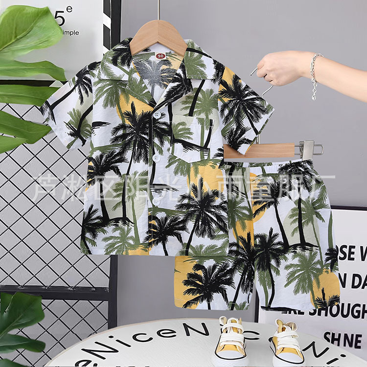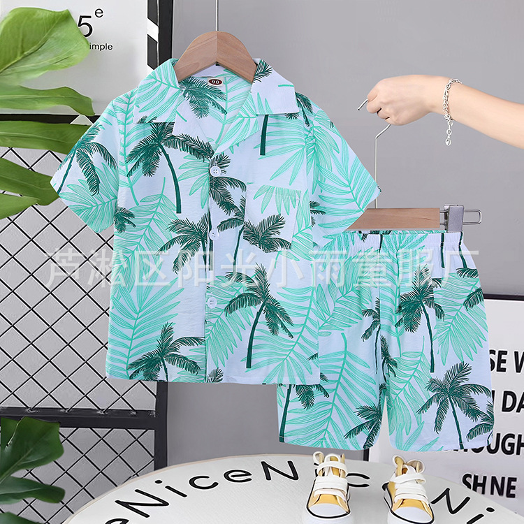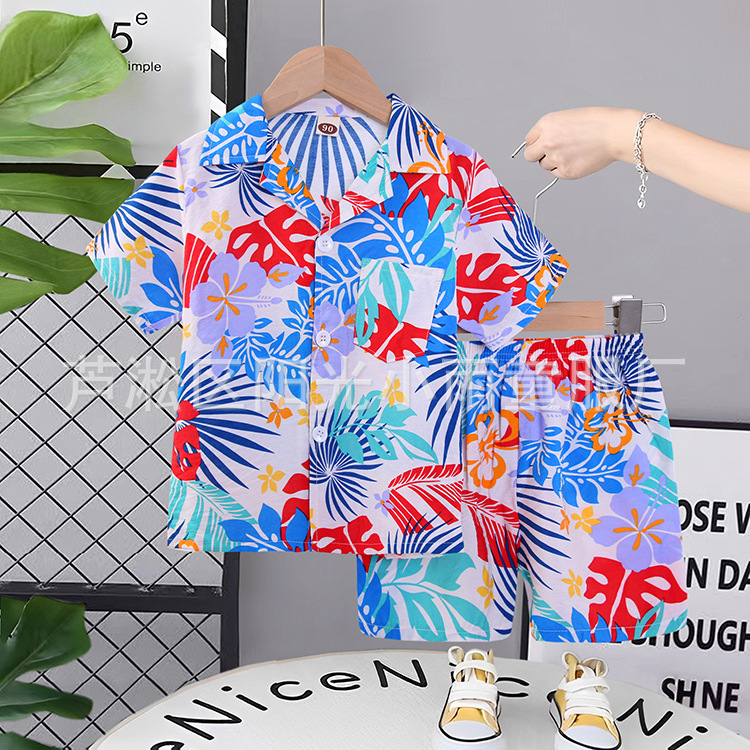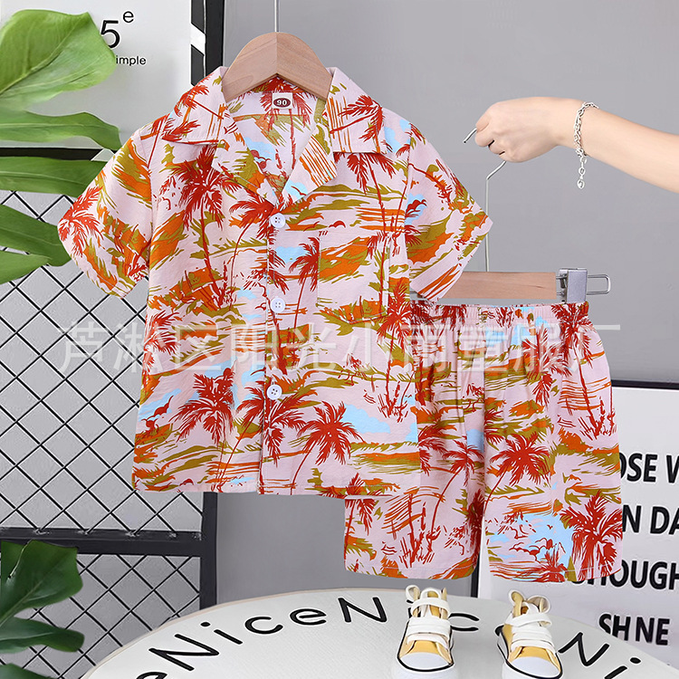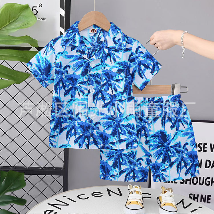 2025 어린이 앞 버클 세트 캐주얼 비치 세트 여름 얇은 느슨한 해변 옷 하와이 반바지