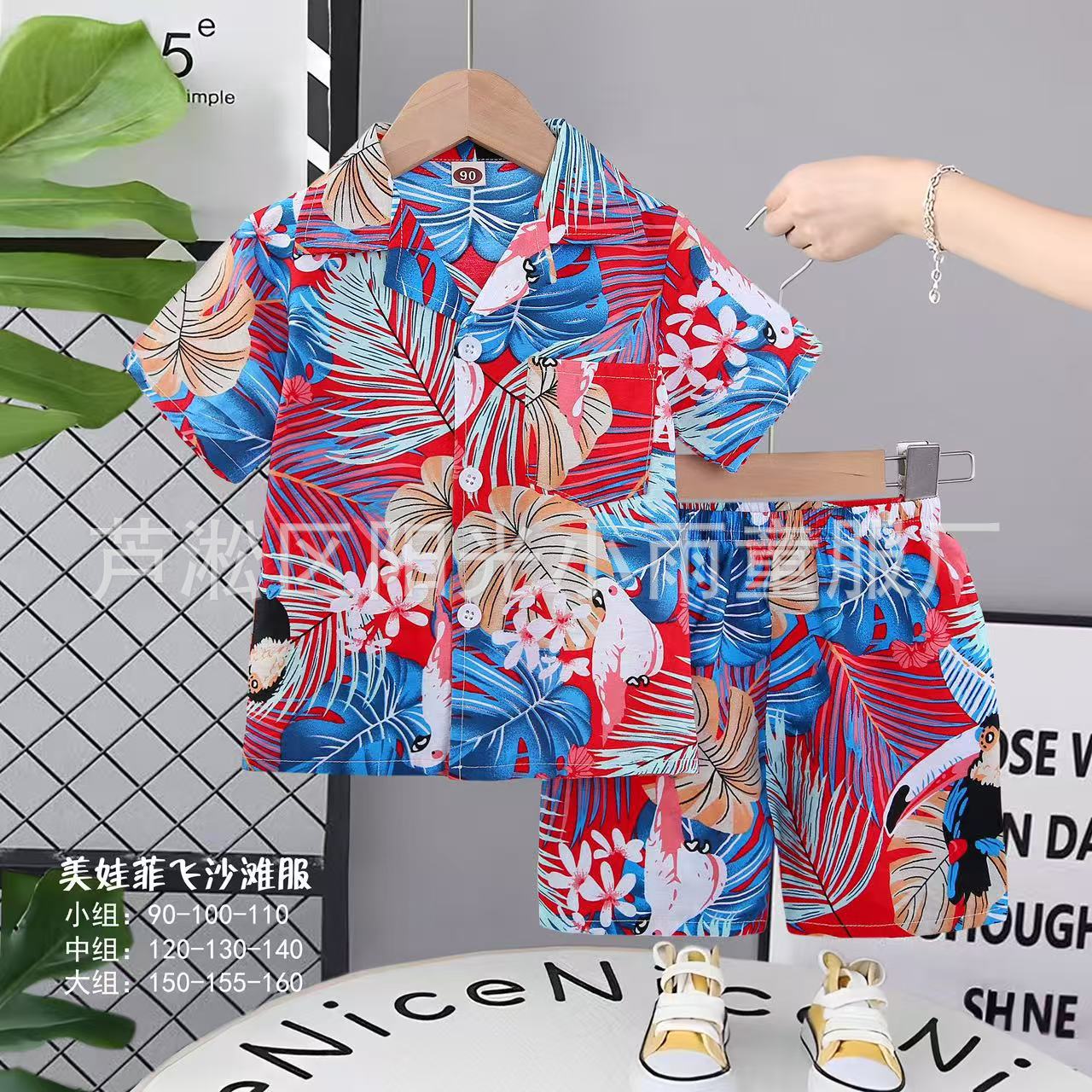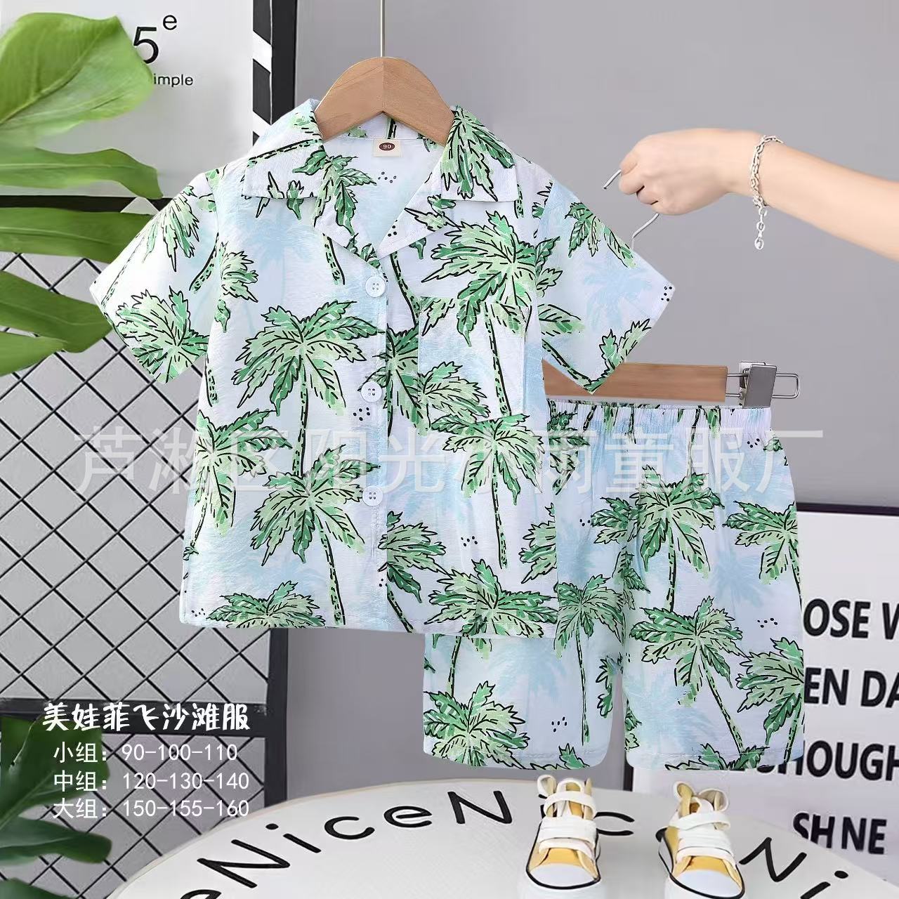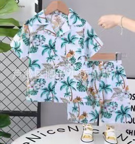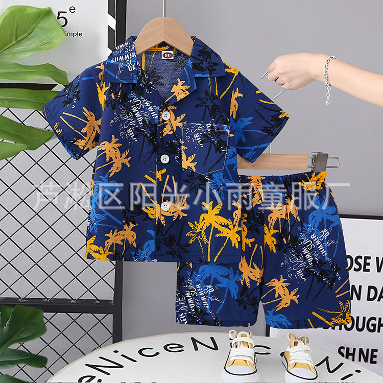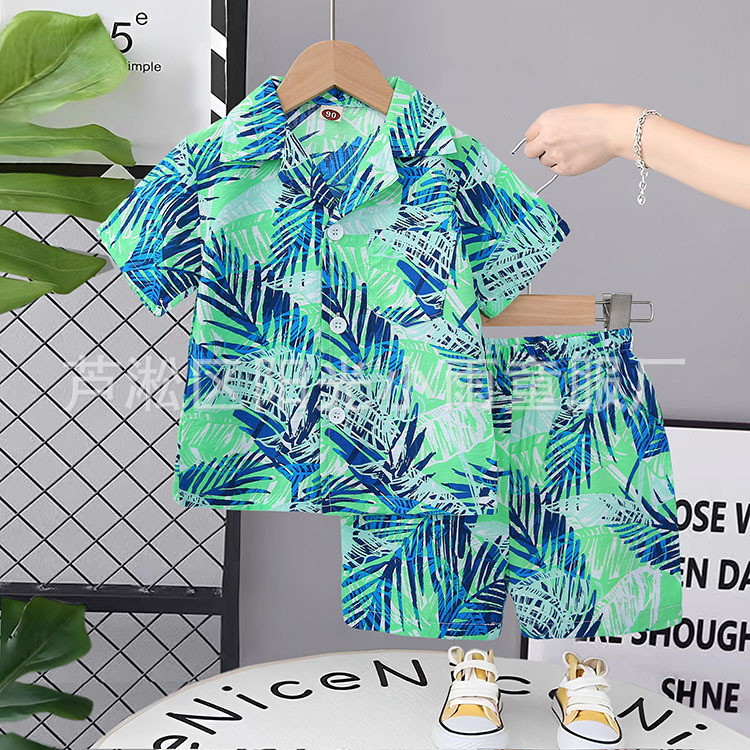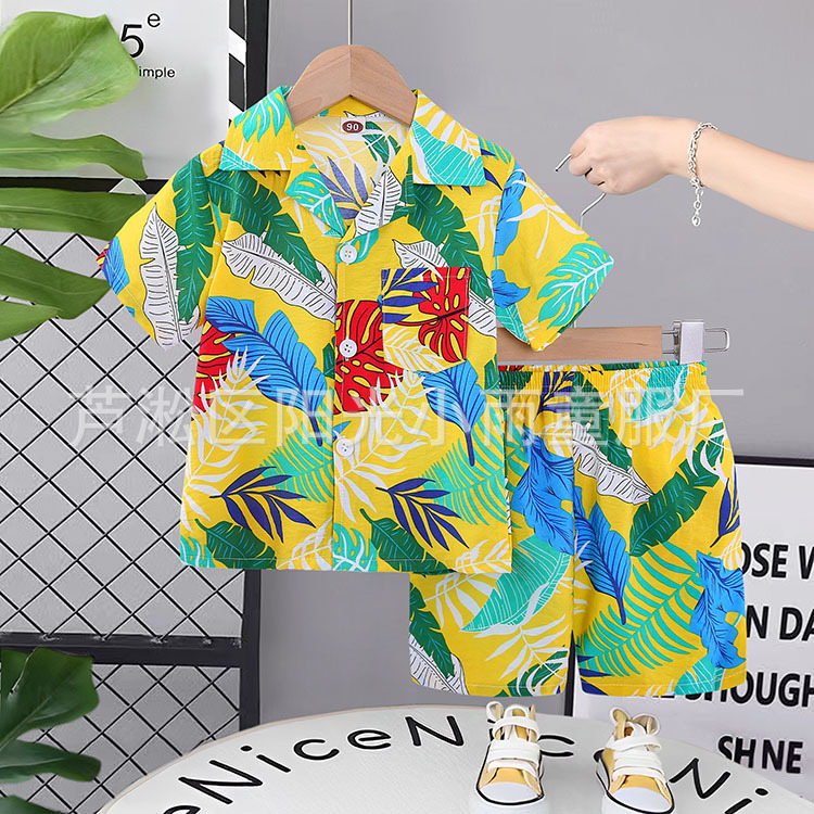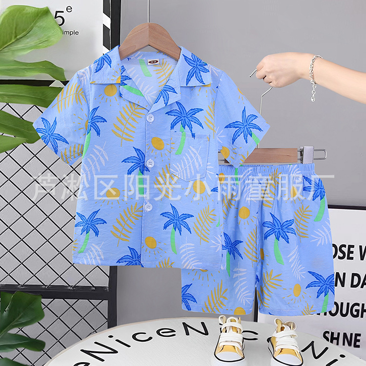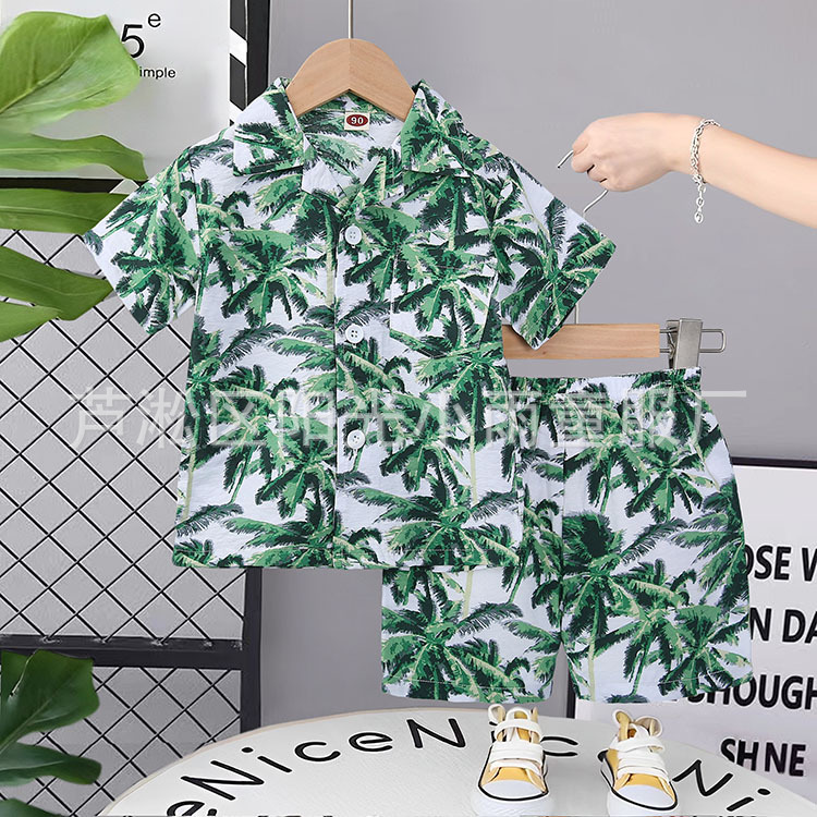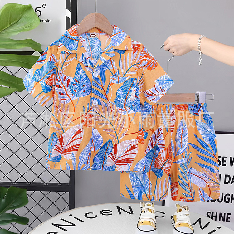 2025 어린이 앞 버클 세트 캐주얼 비치 세트 여름 얇은 느슨한 해변 옷 하와이 반바지