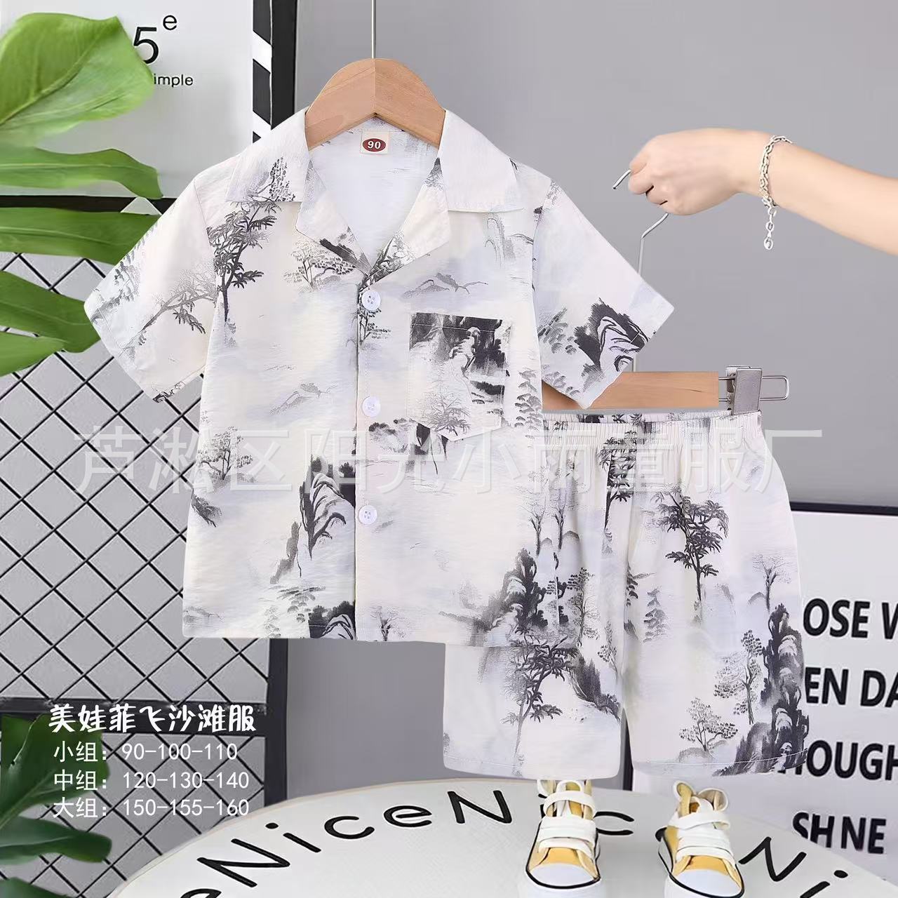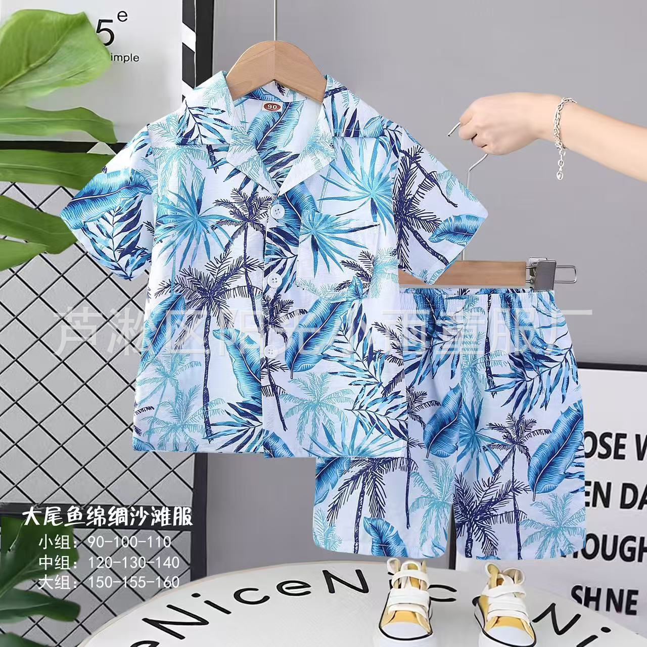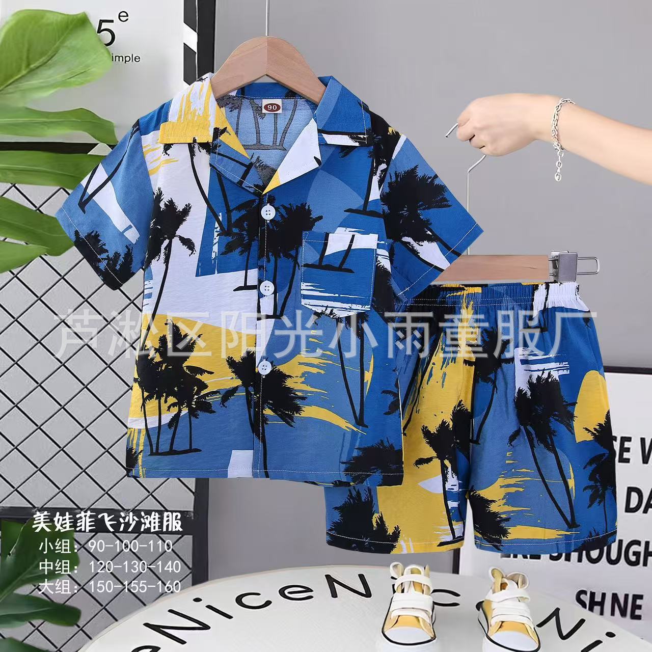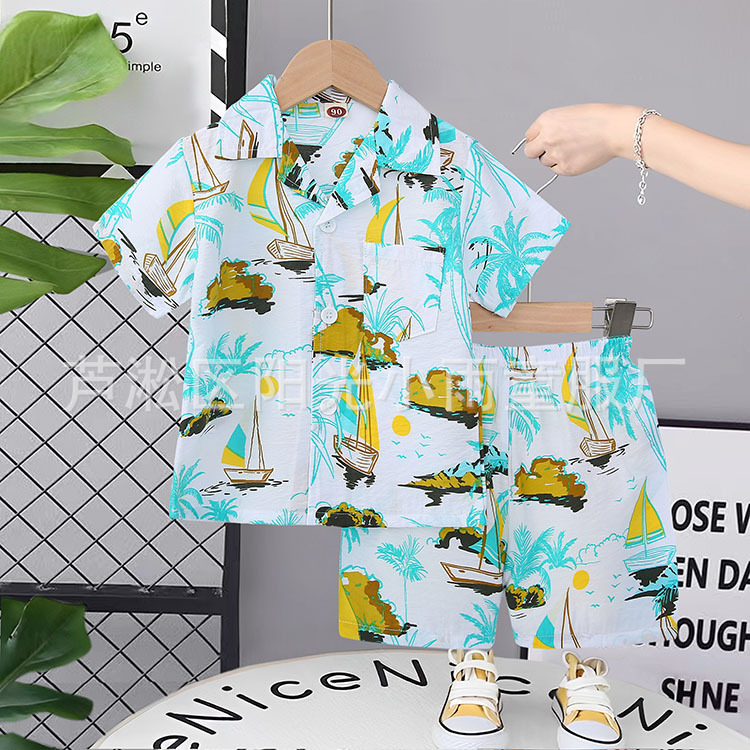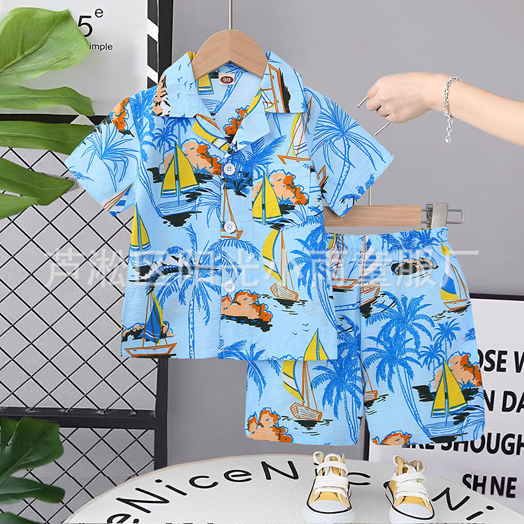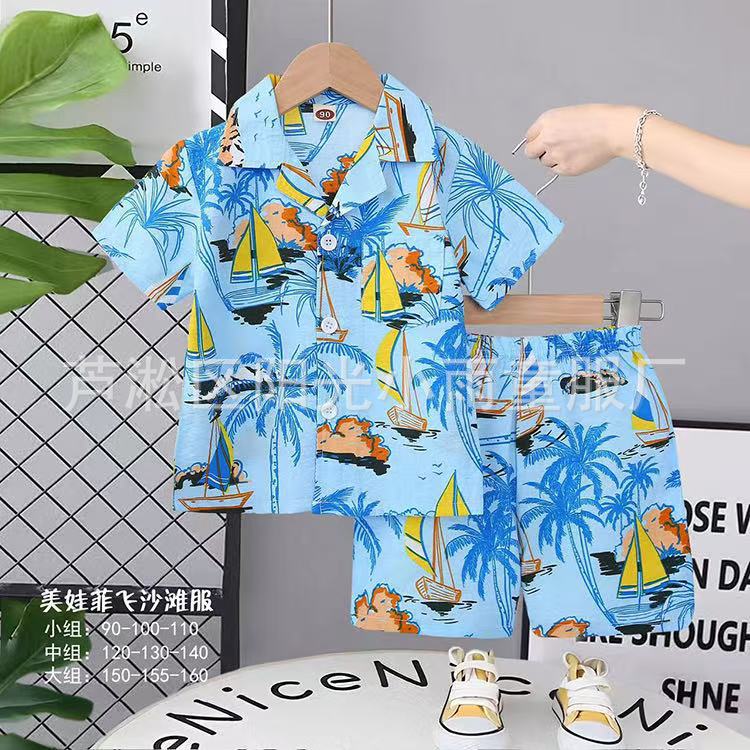 2025 어린이 앞 버클 세트 캐주얼 비치 세트 여름 얇은 느슨한 해변 옷 하와이 반바지스토어 가기
