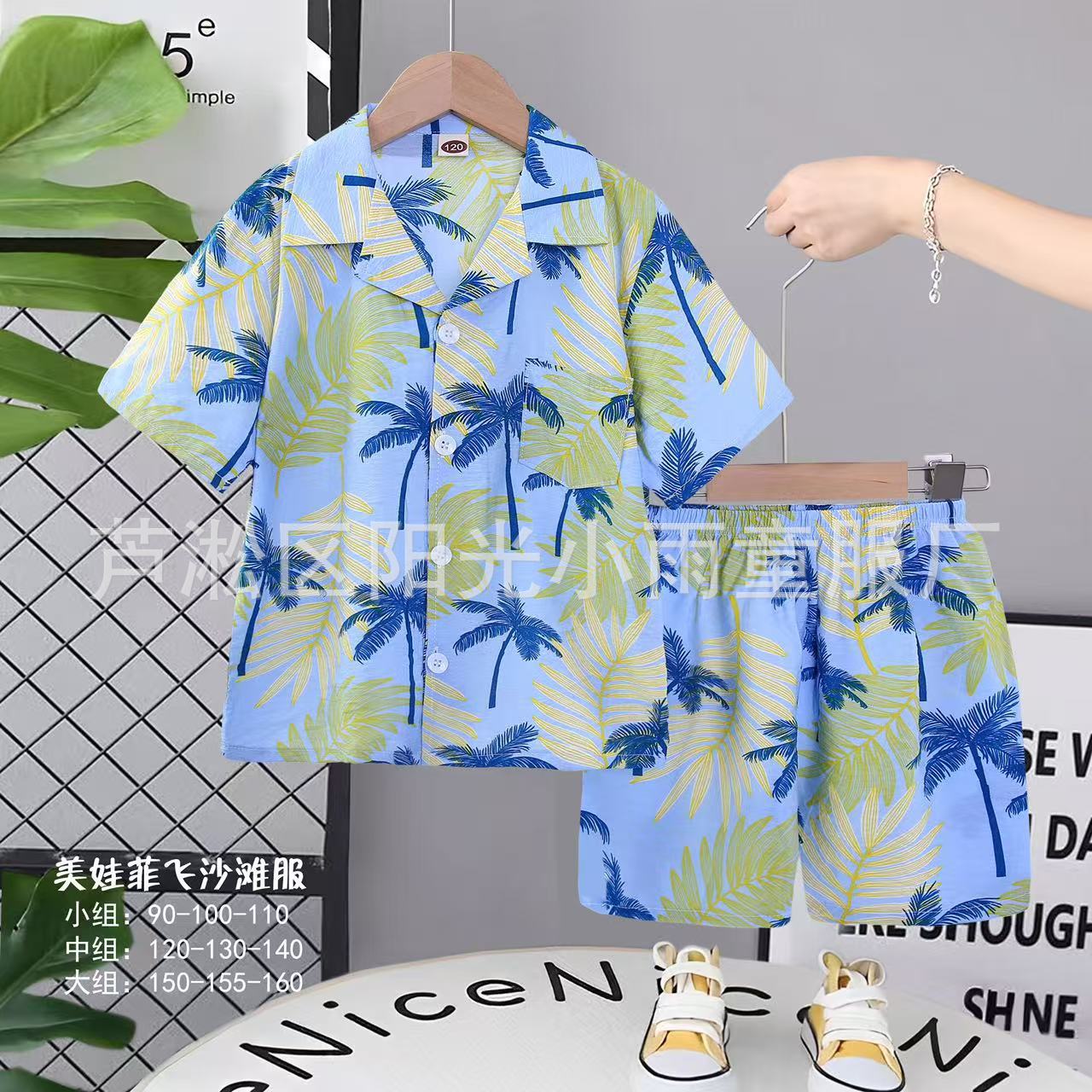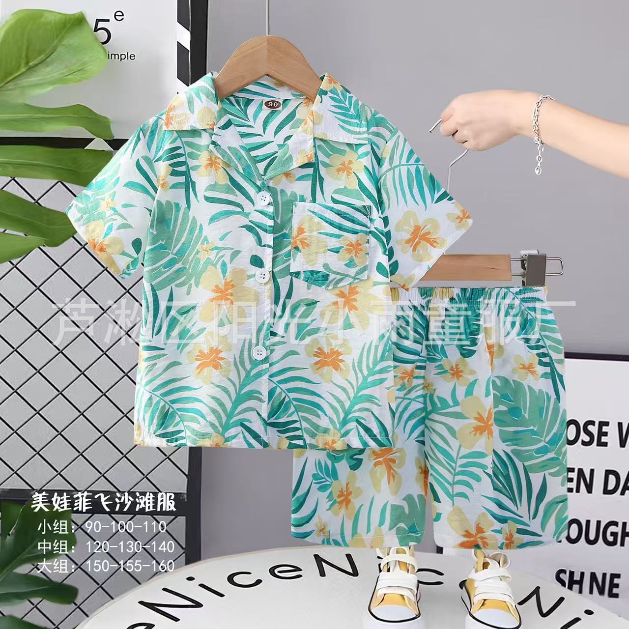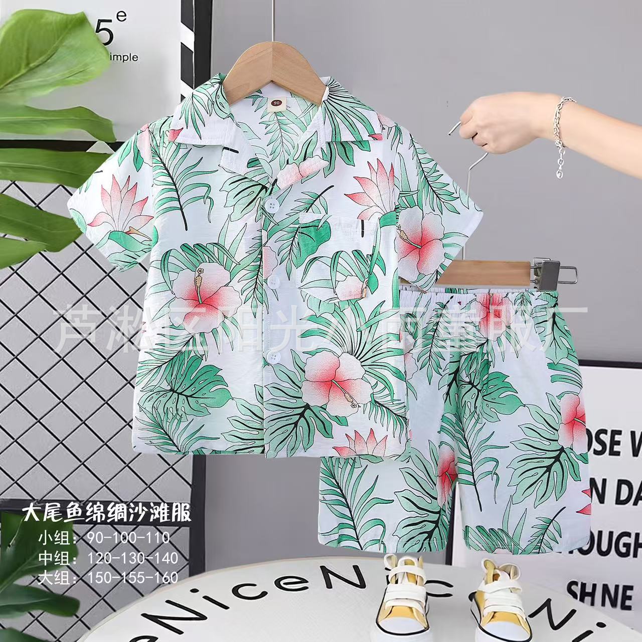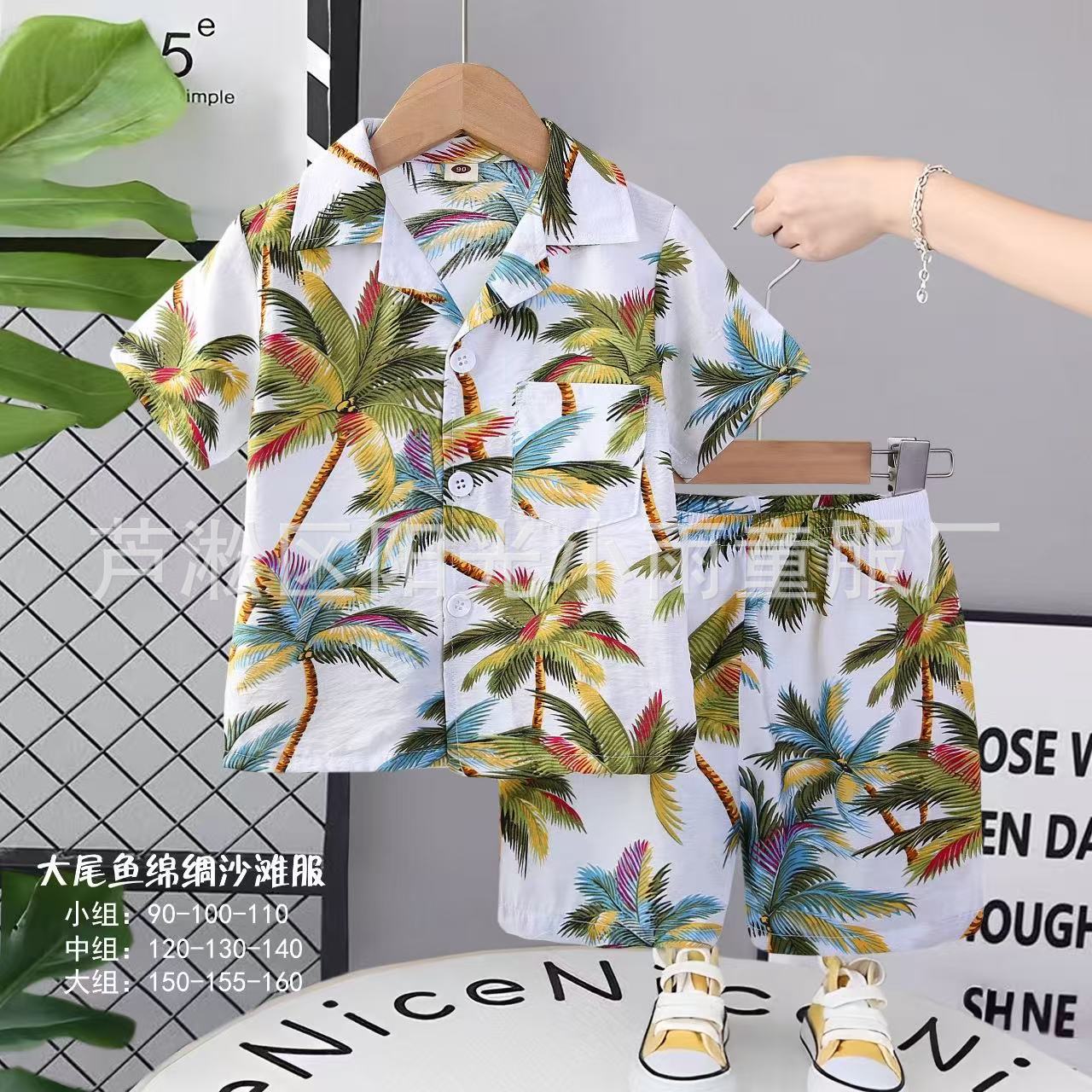 2025 어린이 앞 버클 세트 캐주얼 비치 세트 여름 얇은 느슨한 해변 옷 하와이 반바지스토어 가기