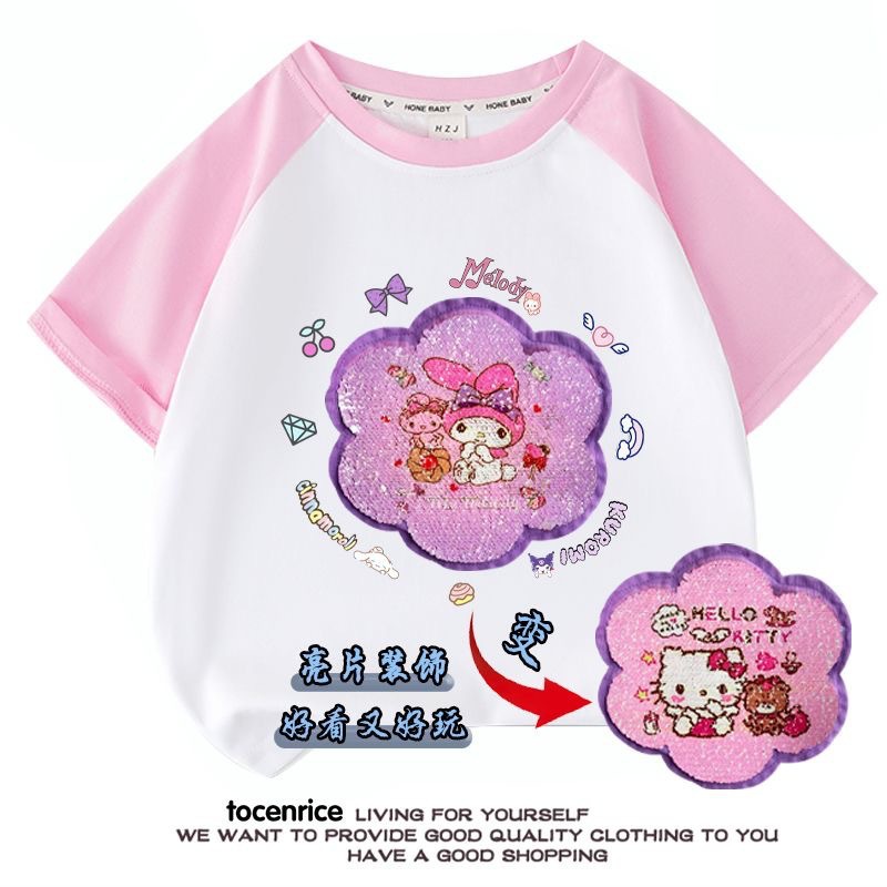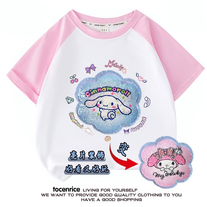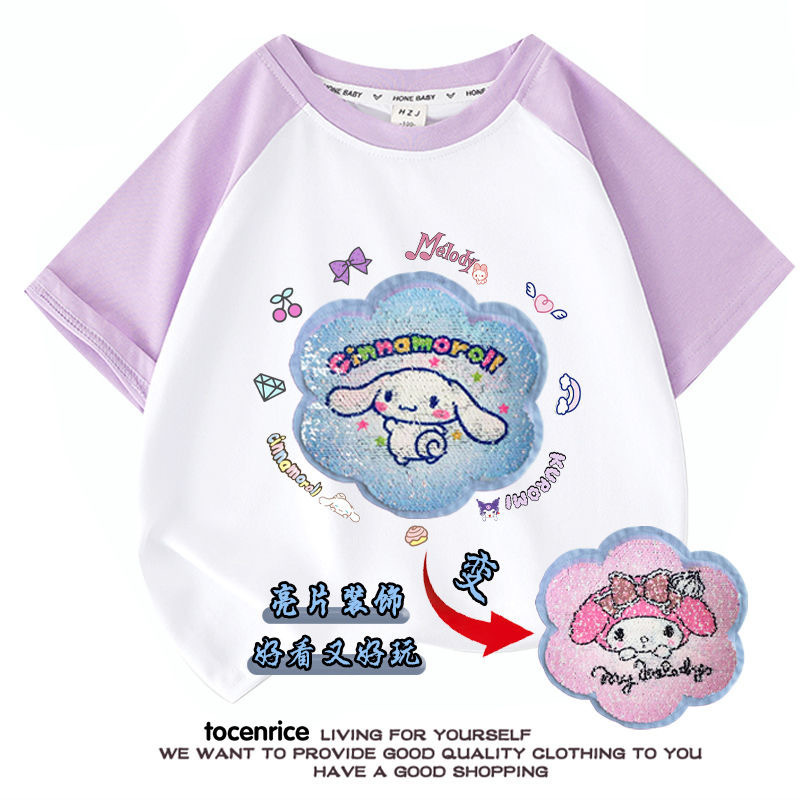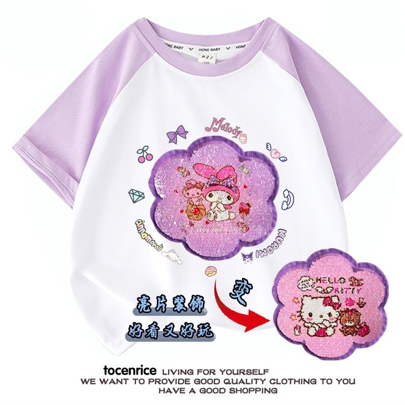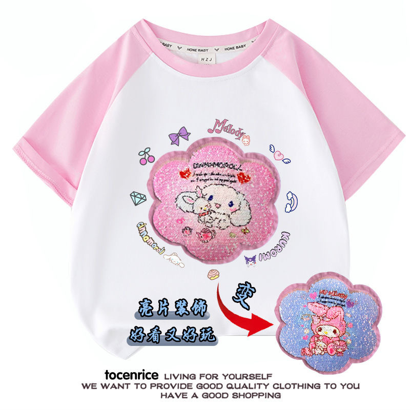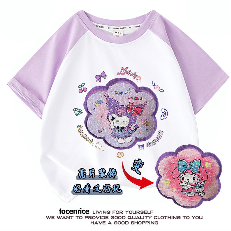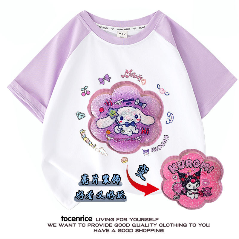 Kulomi Girls 여름 반팔 티셔츠 Sequin 색상 변경 Merleti Flip 그림 Yugui Dog Clothes 어린이 Top 3