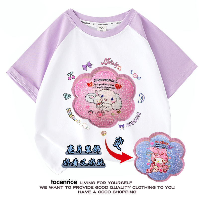 Kulomi Girls 여름 반팔 티셔츠 Sequin 색상 변경 Merleti Flip 그림 Yugui Dog Clothes 어린이 Top 3스토어 가기