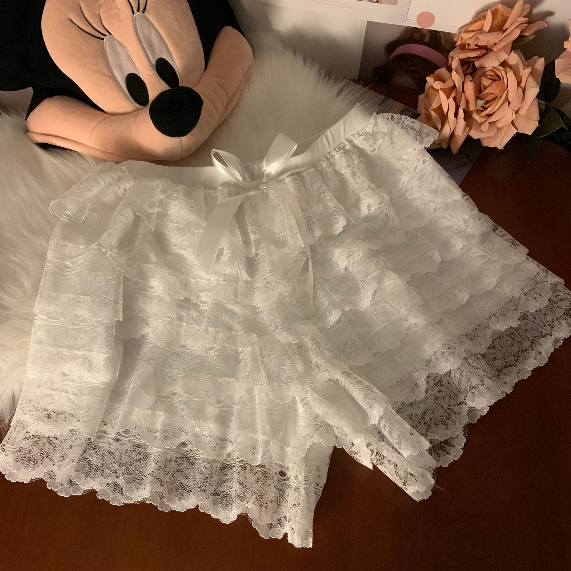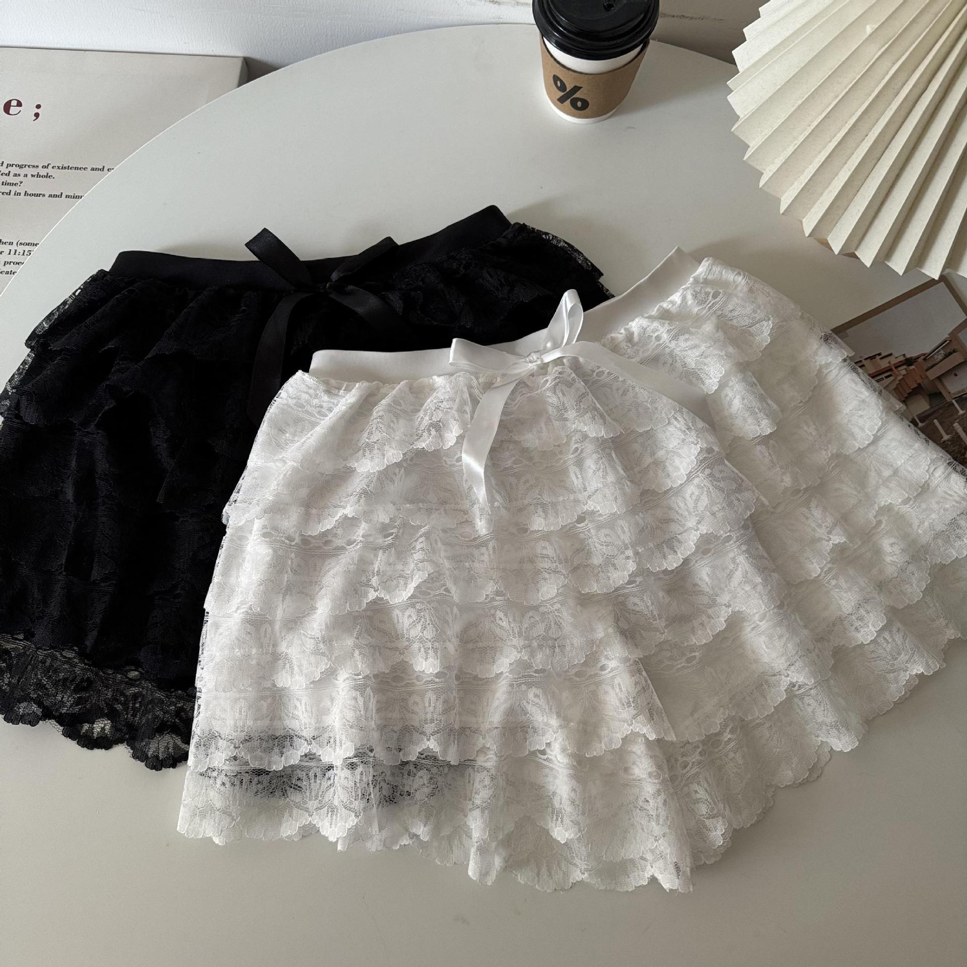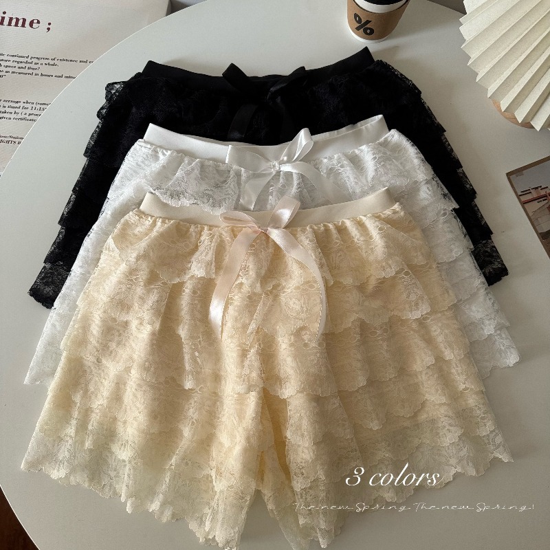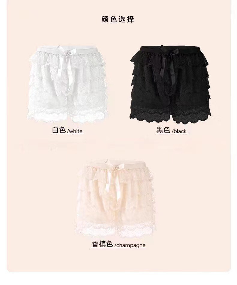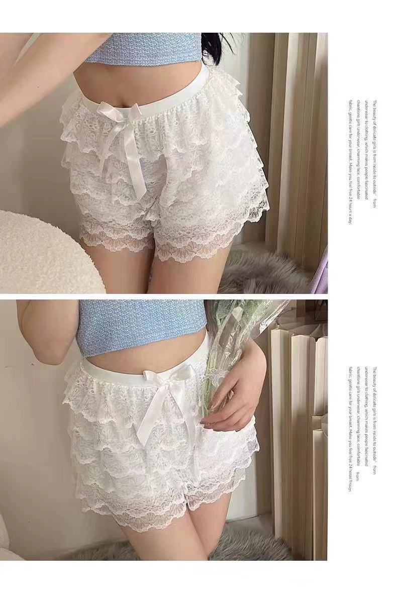 2024 새로운 다층 레이스 안전 바지 안티 라이트 jk 레깅스 느슨한 비 헴 여름 얇은 반바지 여성용