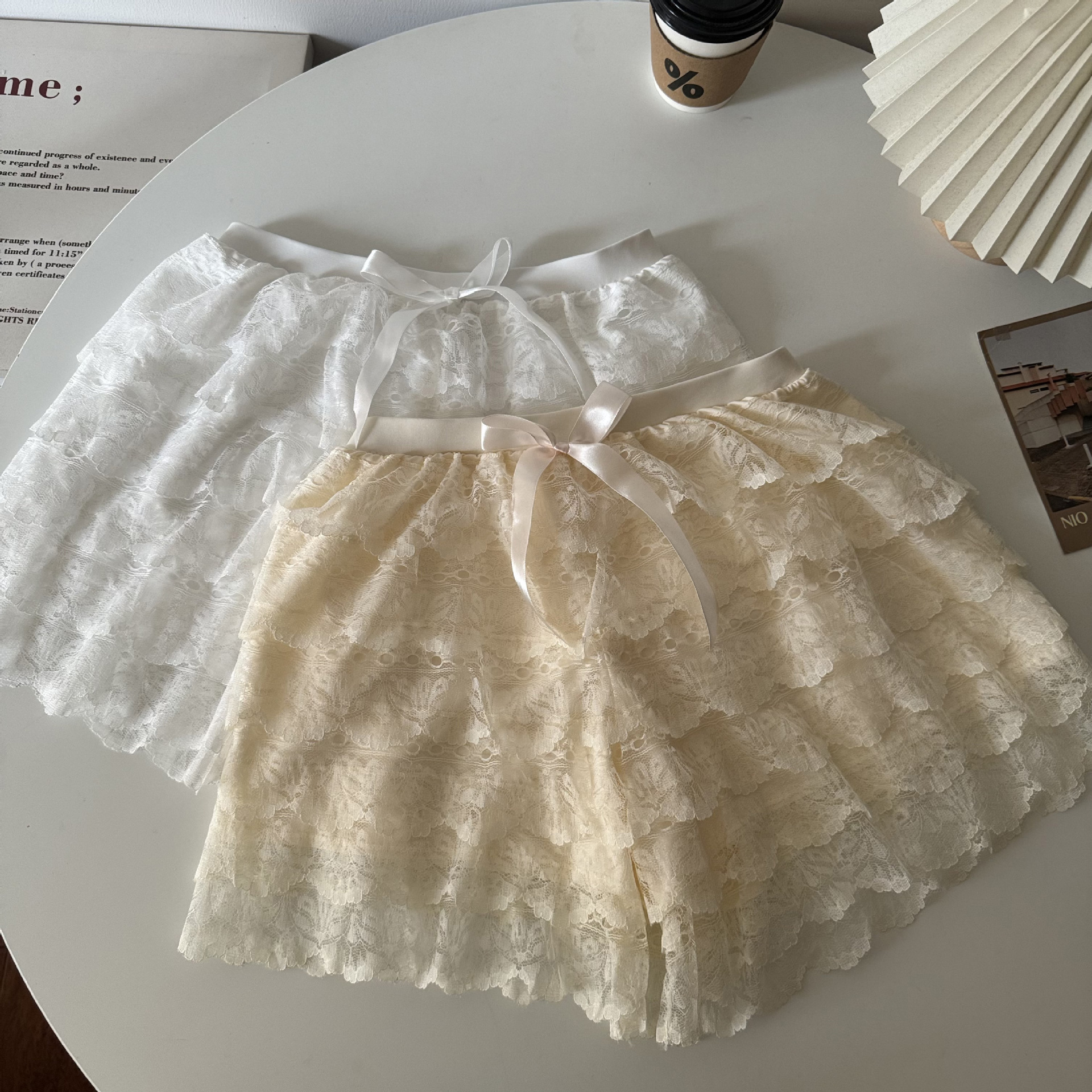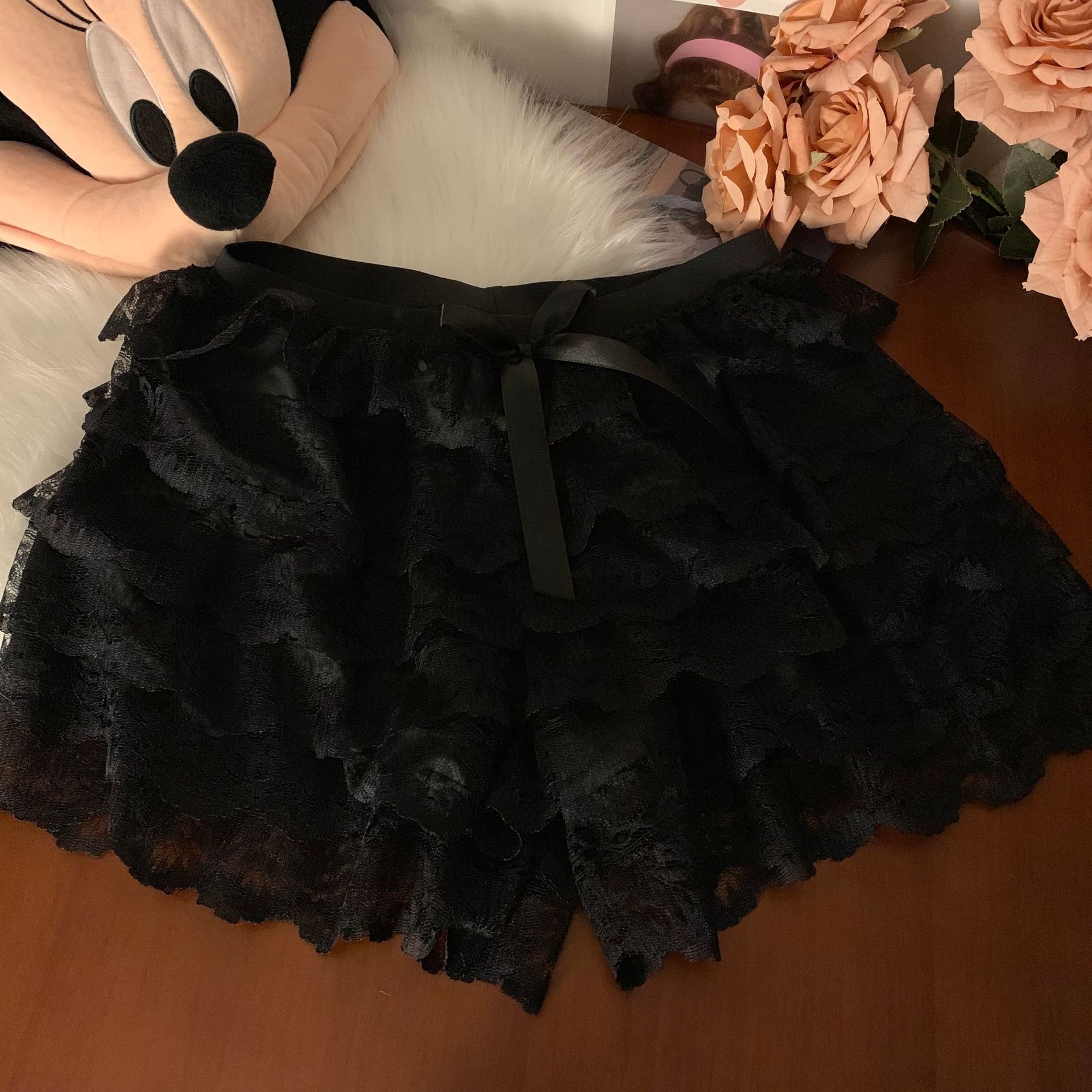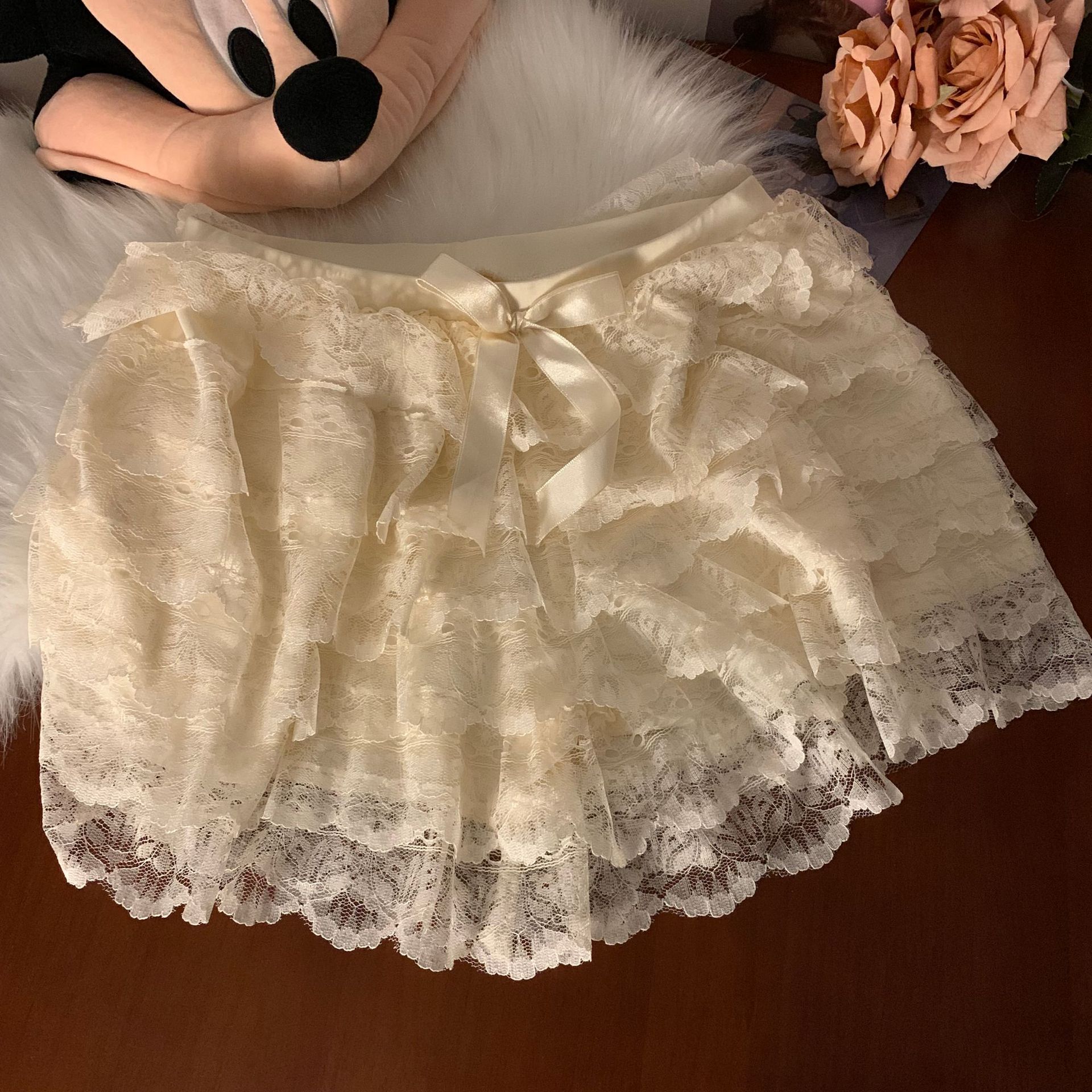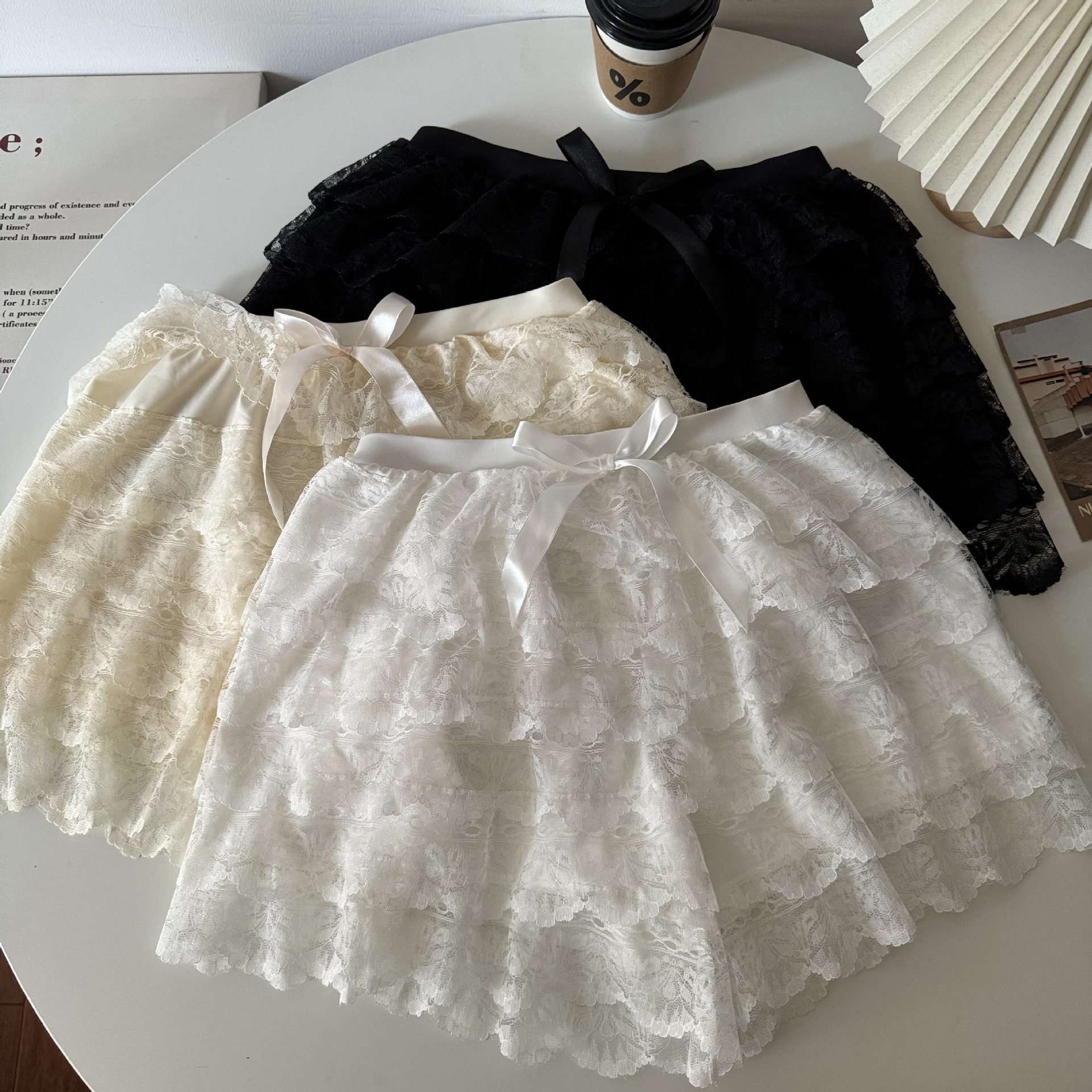 2024 새로운 다층 레이스 안전 바지 안티 라이트 jk 레깅스 느슨한 비 헴 여름 얇은 반바지 여성용