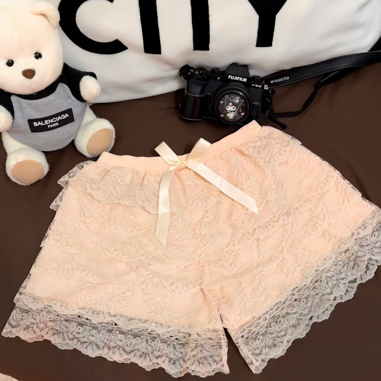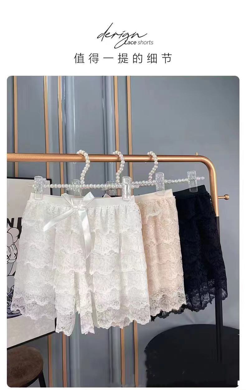 2024 새로운 다층 레이스 안전 바지 안티 라이트 jk 레깅스 느슨한 비 헴 여름 얇은 반바지 여성용스토어 가기