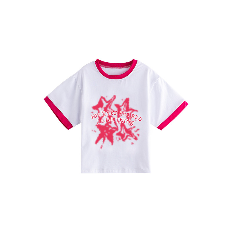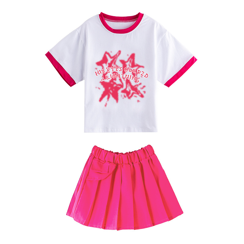 • A495 흰색 인쇄 짧은 소매 B225 로즈 레드 스커트