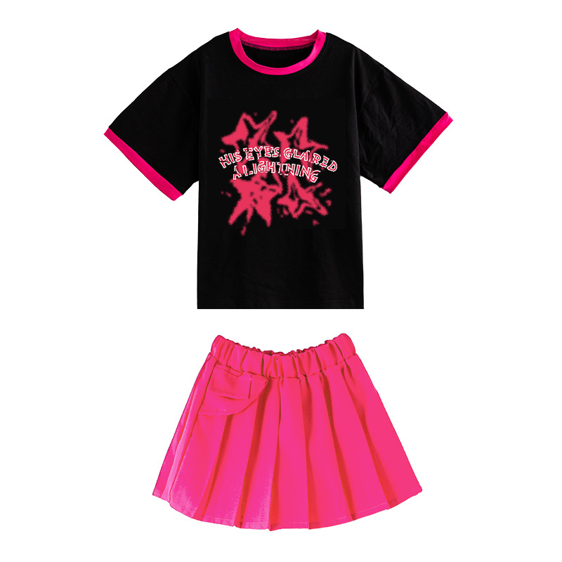 • A495 블랙 프린트 반팔 B225 로즈 스커트