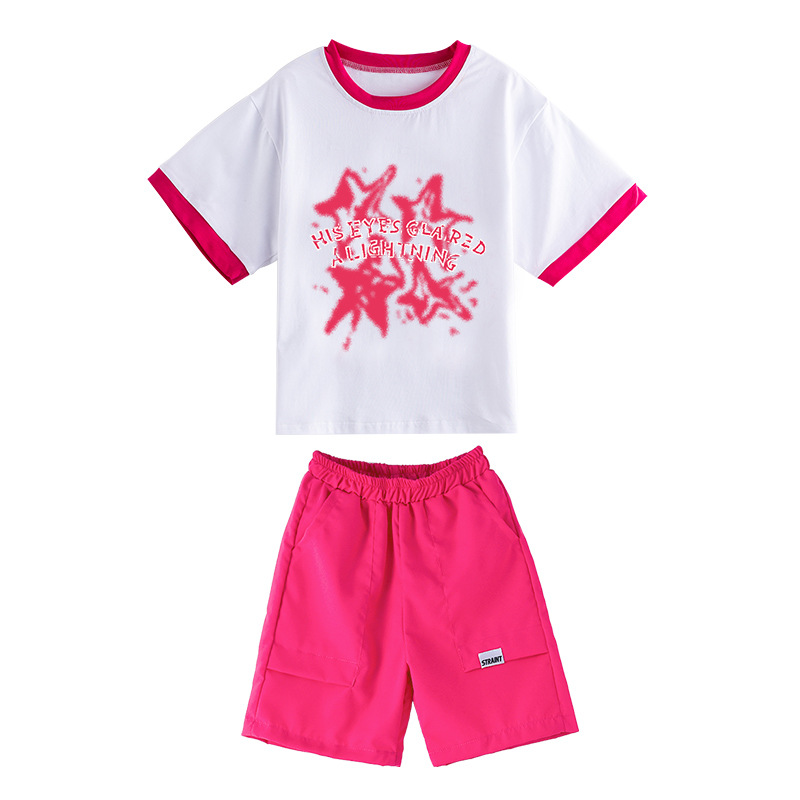 • A495 흰색 인쇄 짧은 소매 B224 장미 반바지