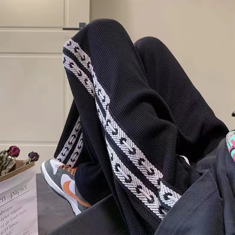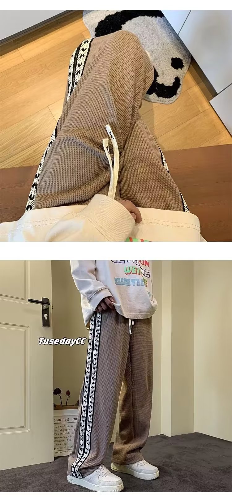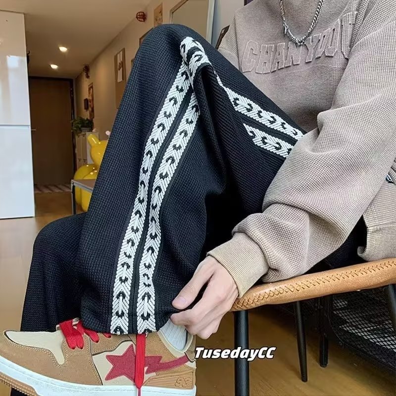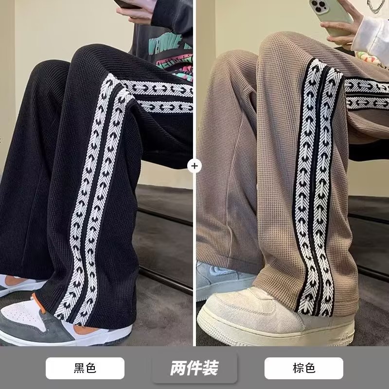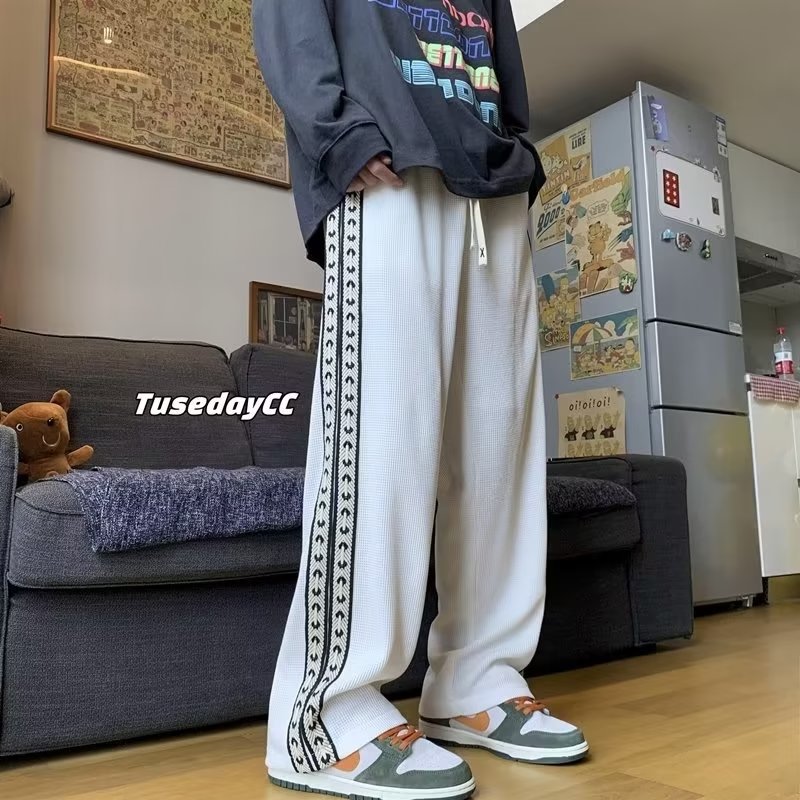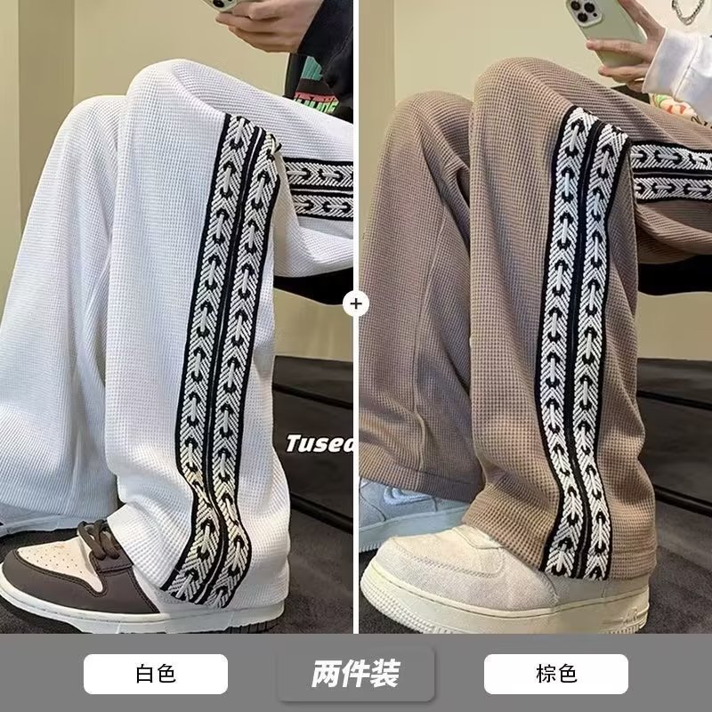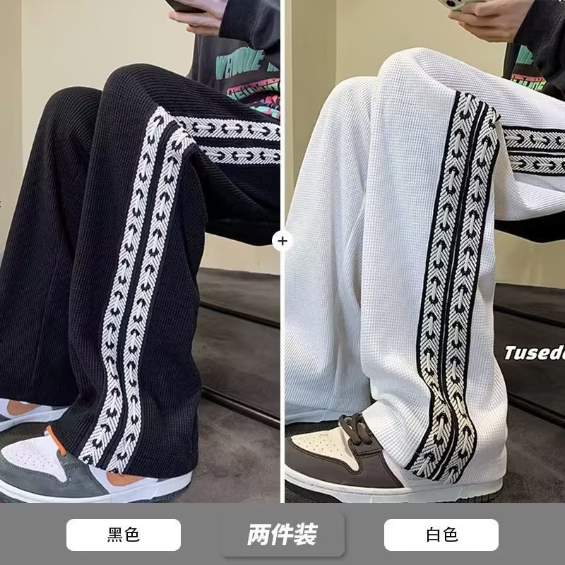 남성 초대형 300kg 플러스 사이즈 미국 하이 스트리트 와플 바지 봄과 가을 느슨한 스트레이트 와이드 레그 레저스토어 가기