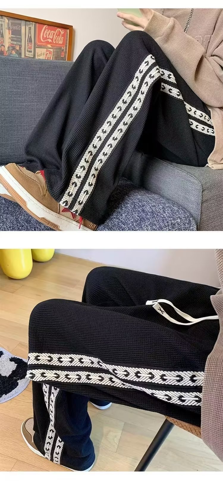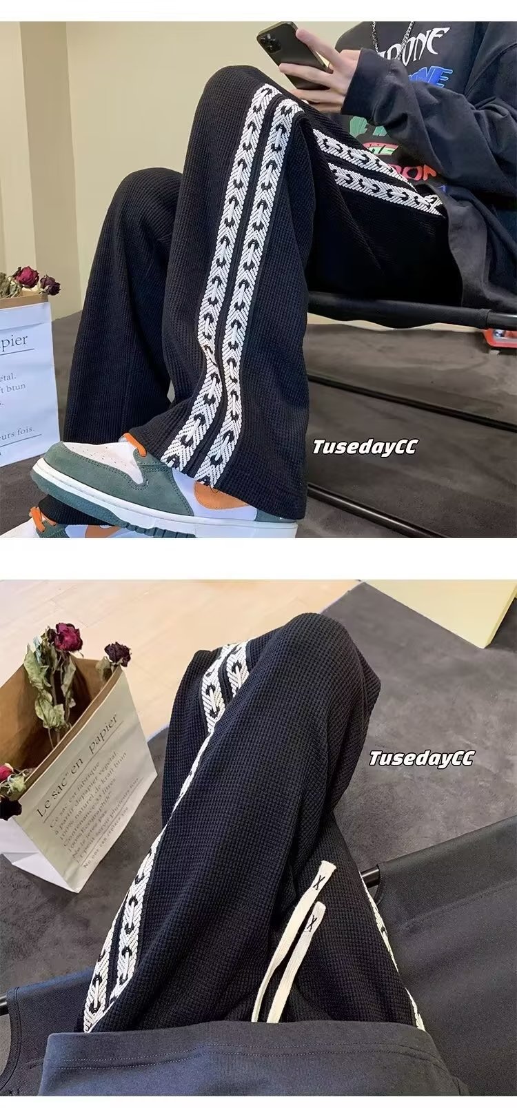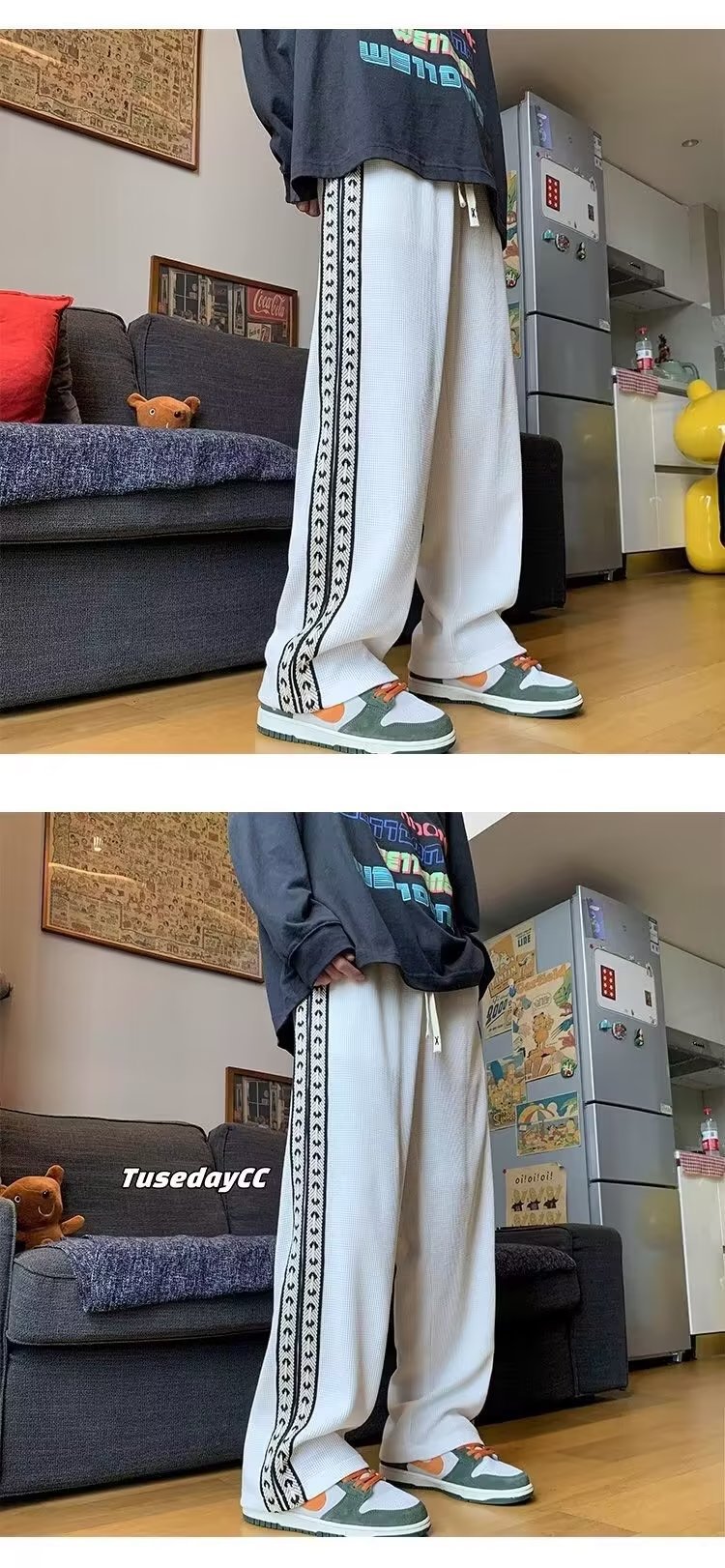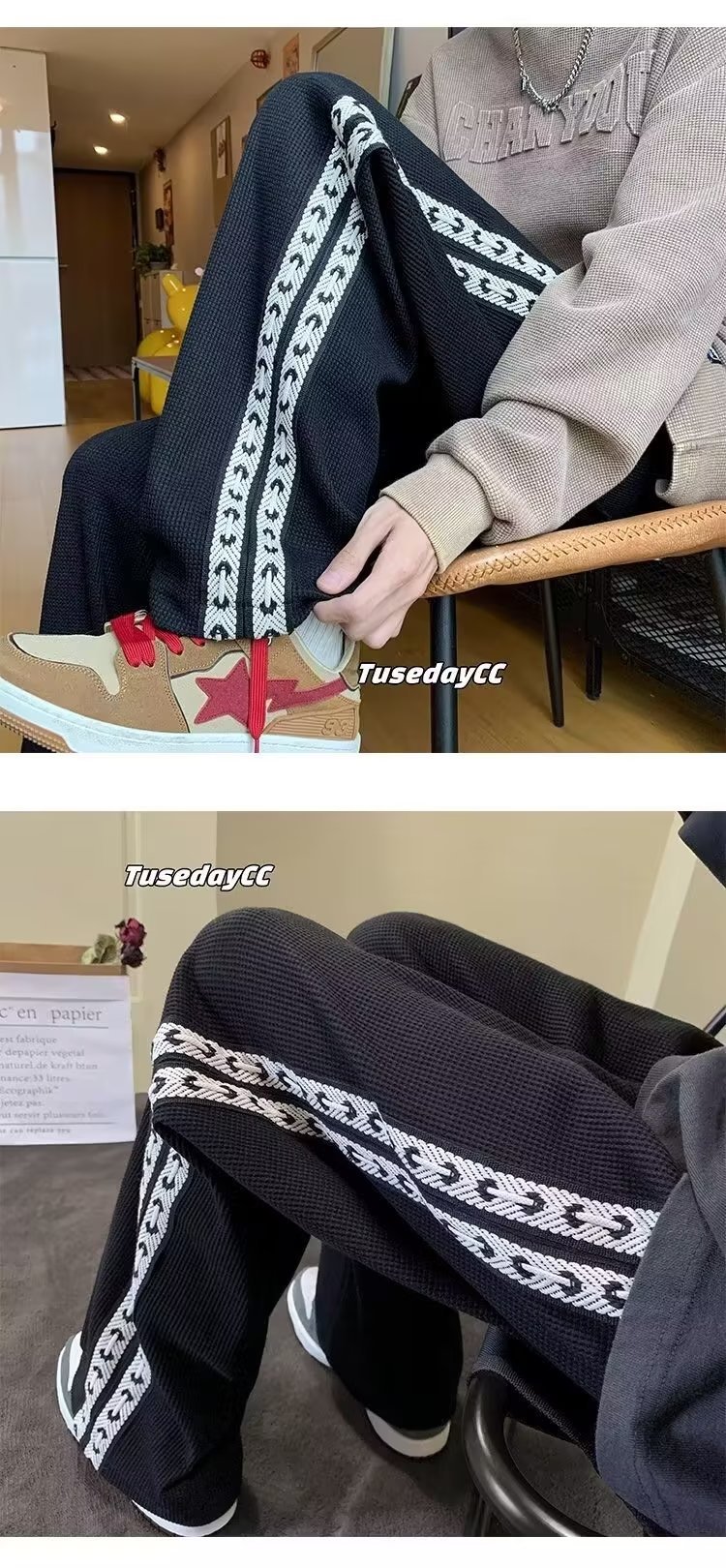 남성 초대형 300kg 플러스 사이즈 미국 하이 스트리트 와플 바지 봄과 가을 느슨한 스트레이트 와이드 레그 레저스토어 가기