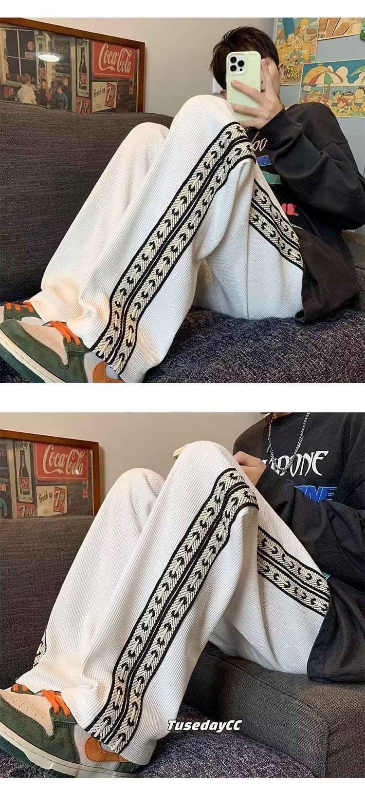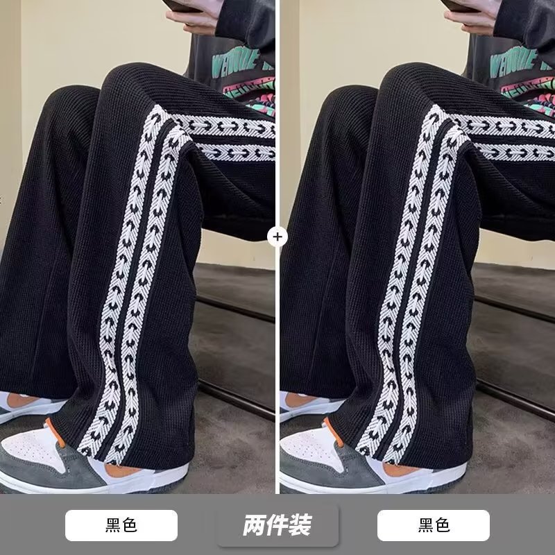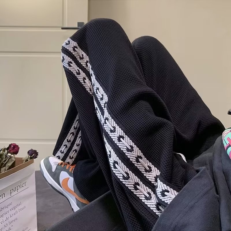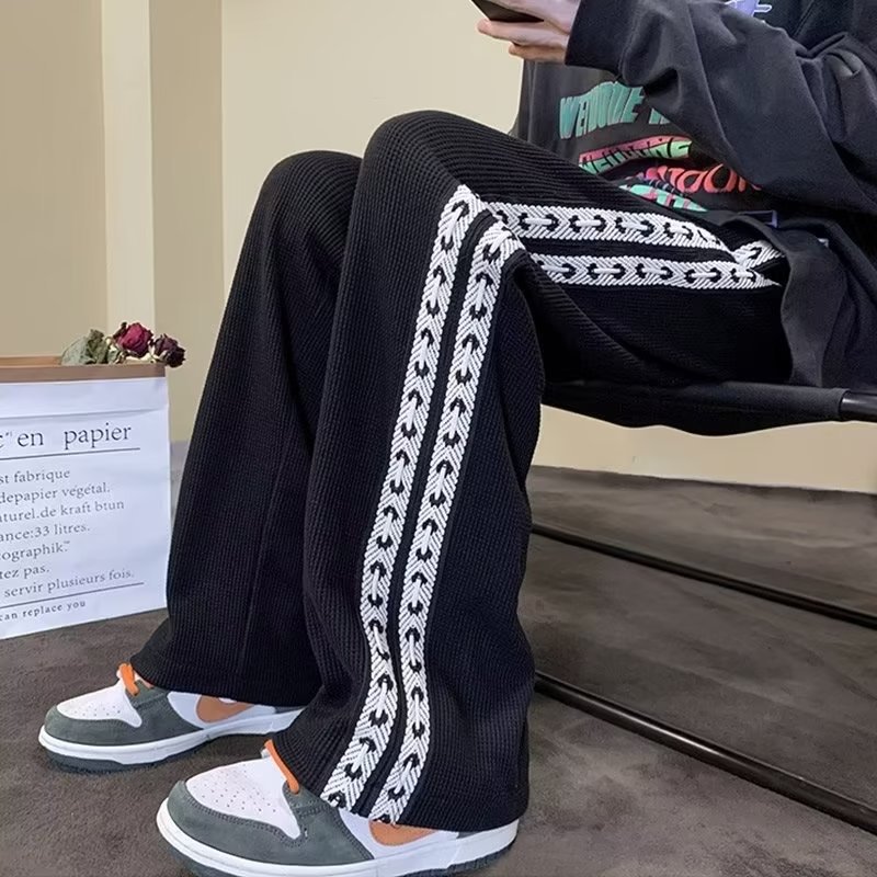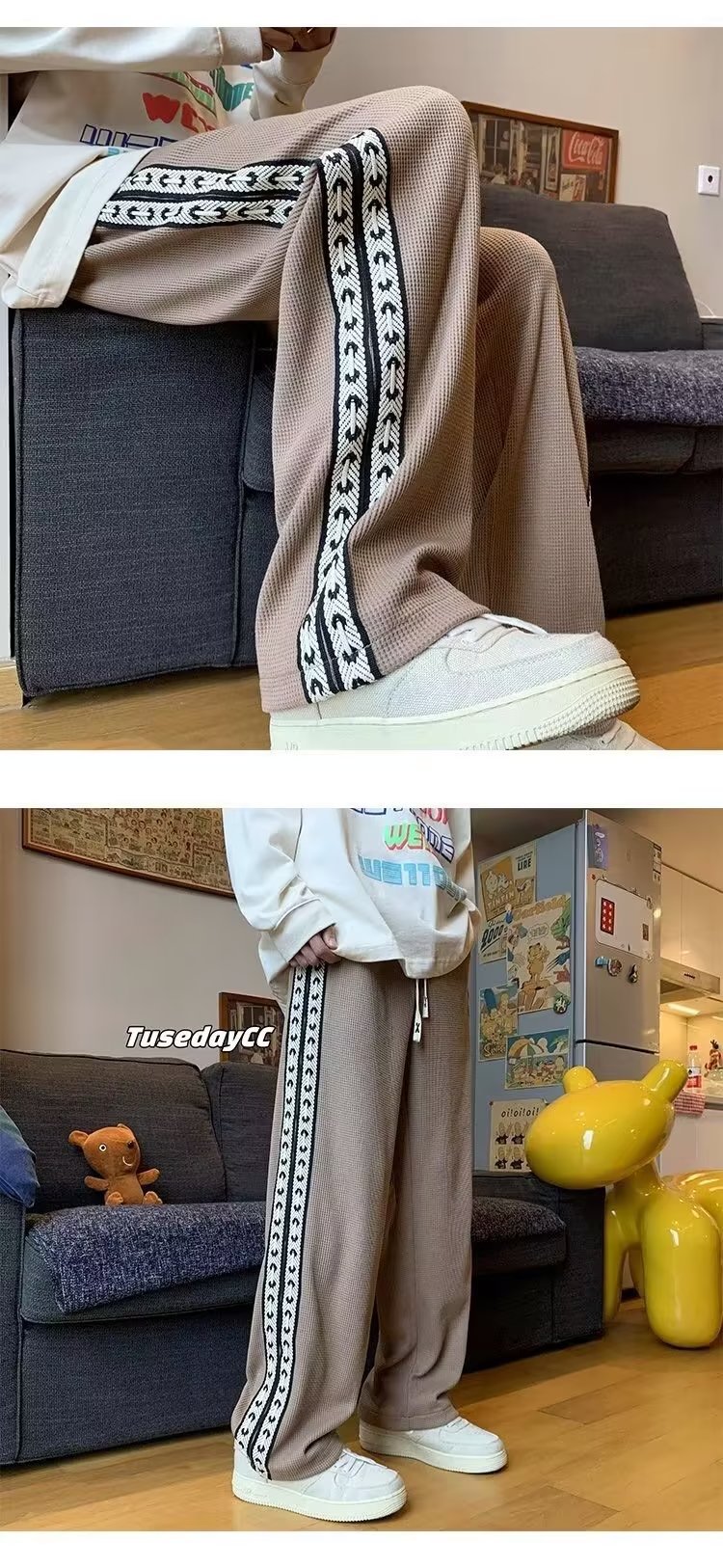 남성 초대형 300kg 플러스 사이즈 미국 하이 스트리트 와플 바지 봄과 가을 느슨한 스트레이트 와이드 레그 레저스토어 가기