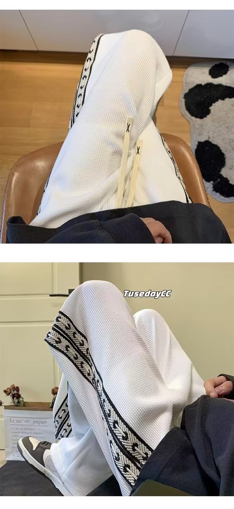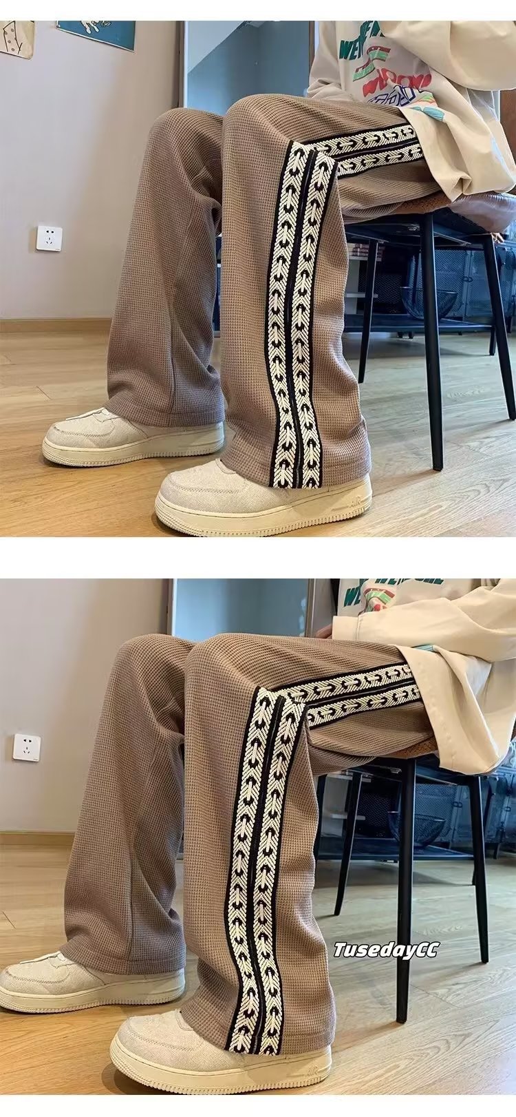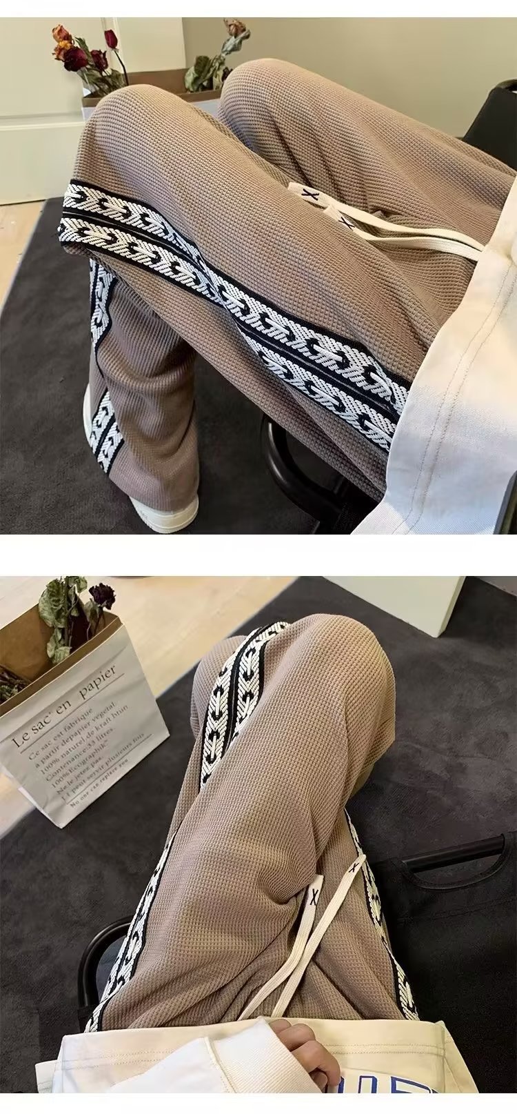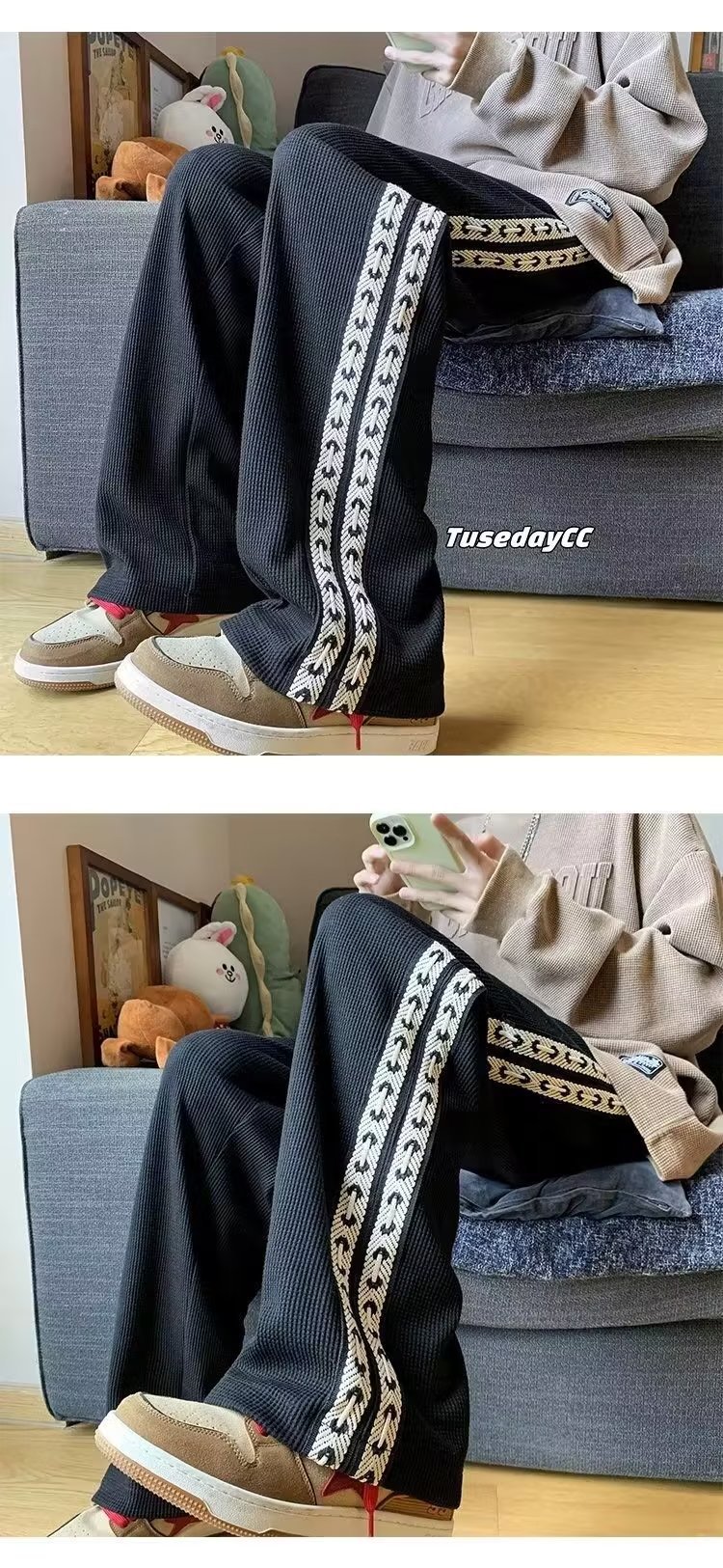 남성 초대형 300kg 플러스 사이즈 미국 하이 스트리트 와플 바지 봄과 가을 느슨한 스트레이트 와이드 레그 레저스토어 가기