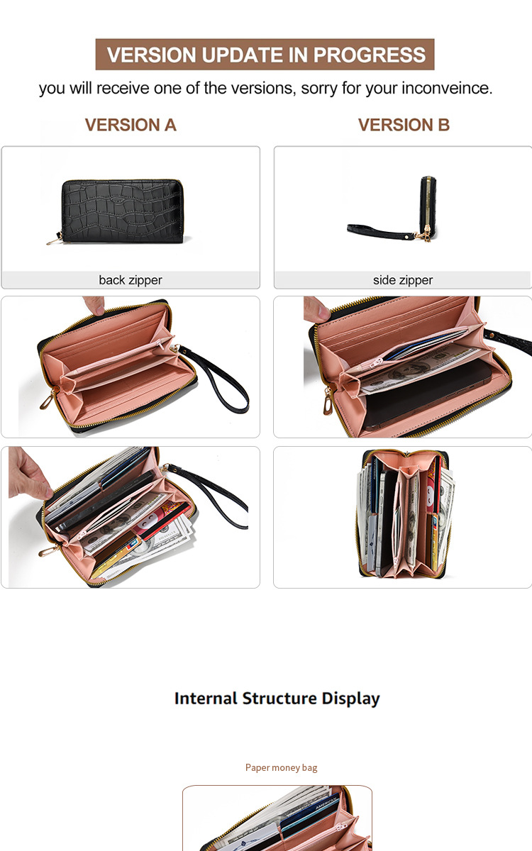 공장 도매 신상 악어 무늬 다용도 향수풍 핸드백 카드지갑 다기능 지퍼백 대용량스토어 가기