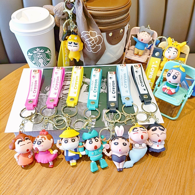 가변 크레용 작은 새로운 만화 키 체인 귀여운 인형 학교 가방 펜던트 인형 기계 작은 선물 자동차 키 체인스토어 가기