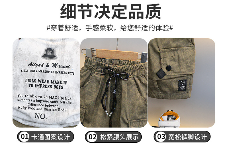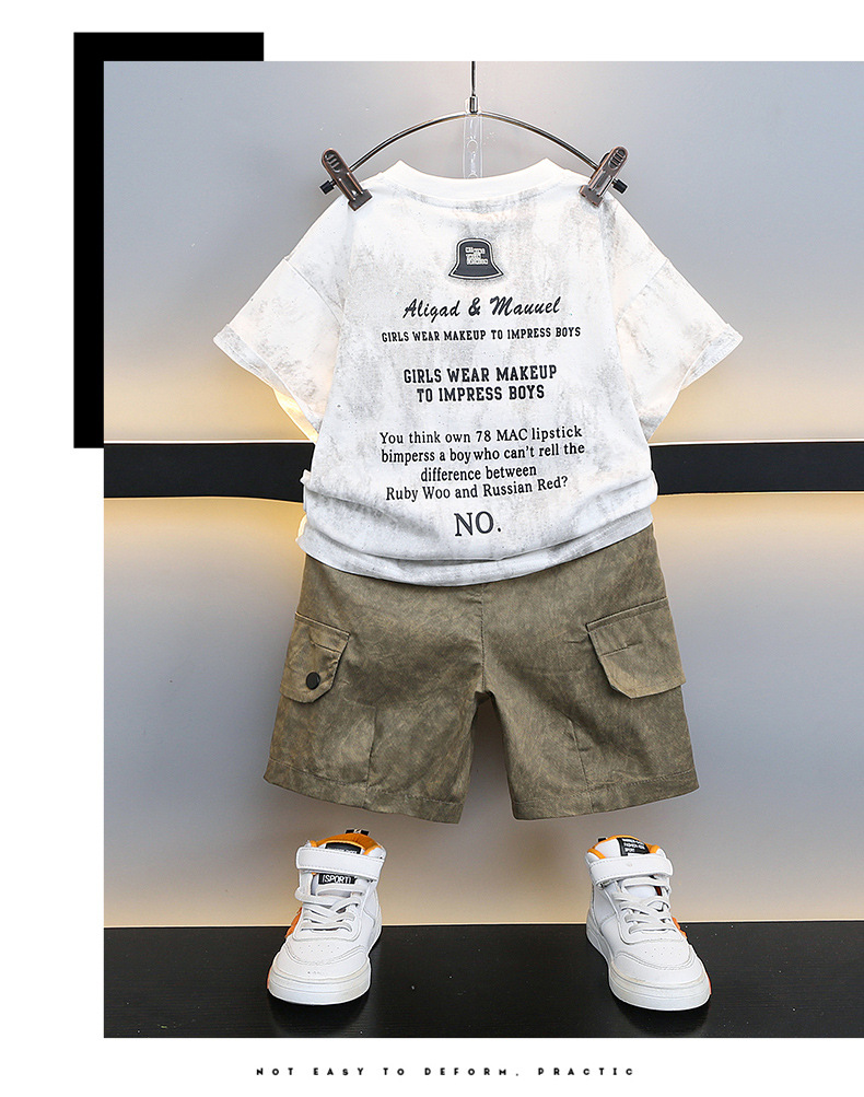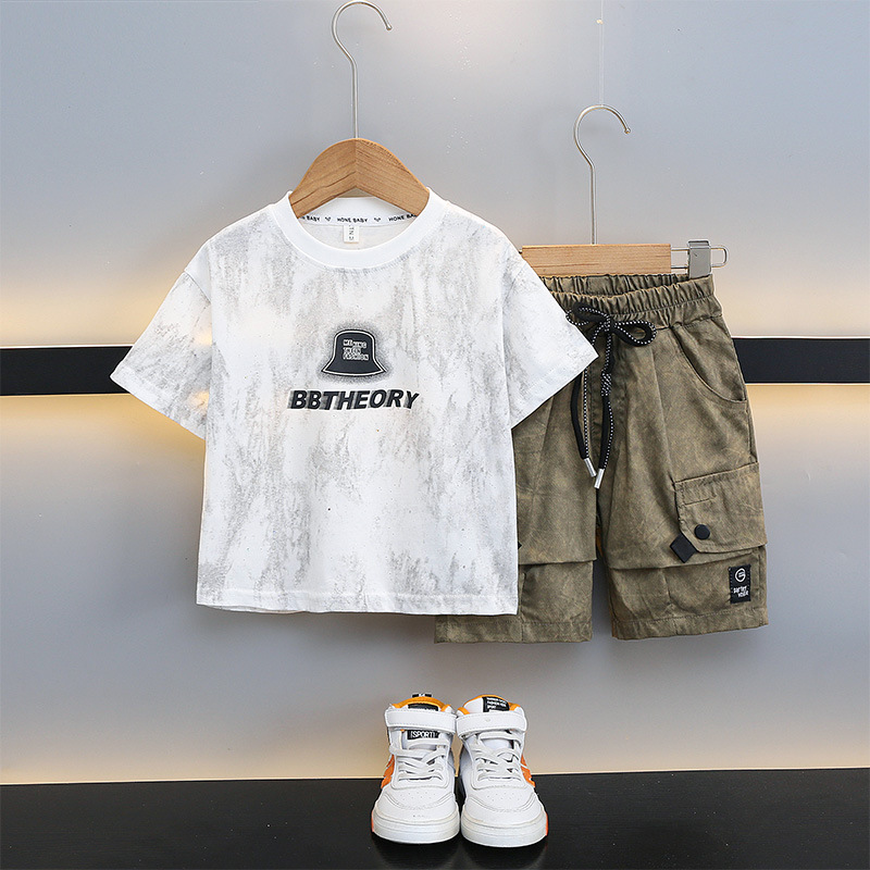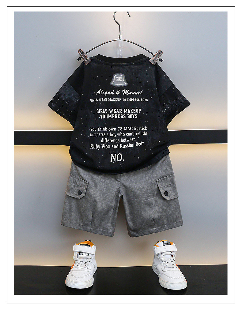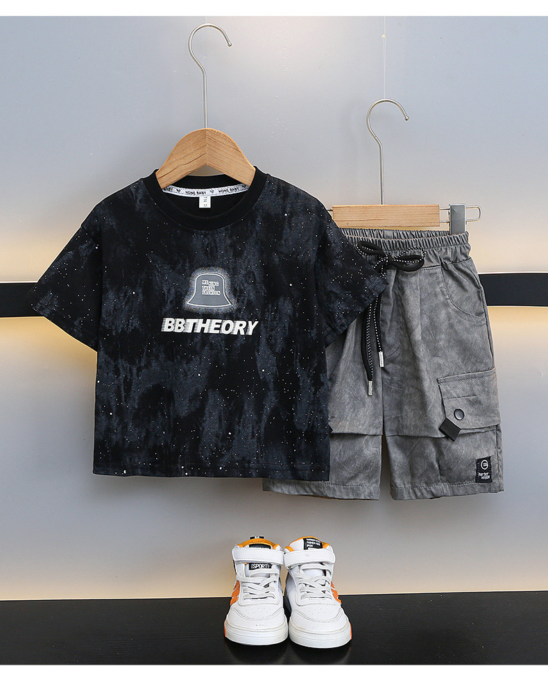 남학생 '2024 년 새 여름 반팔 세트 세련된 아동복 유행 중대형 어린이 여름 얇은 아동복 트렌디스토어 가기