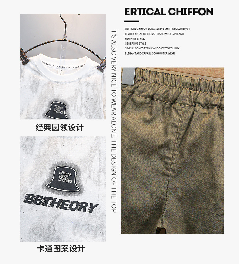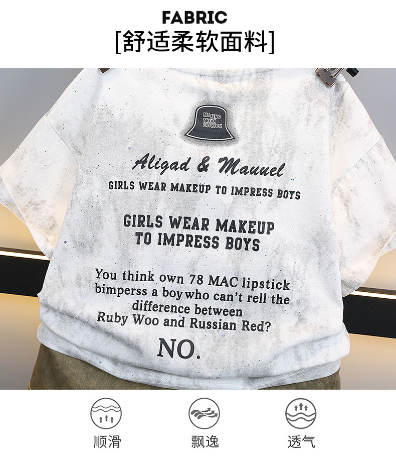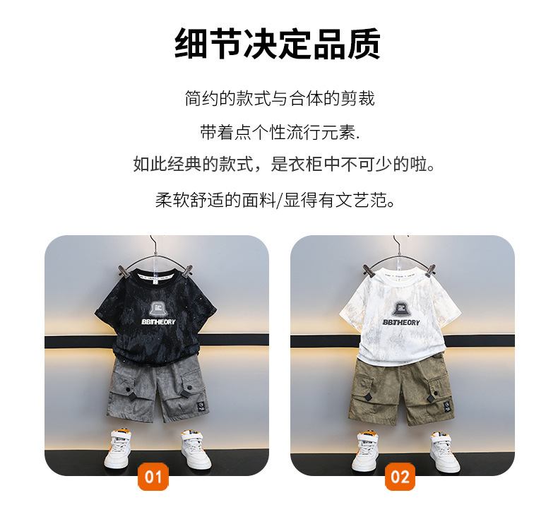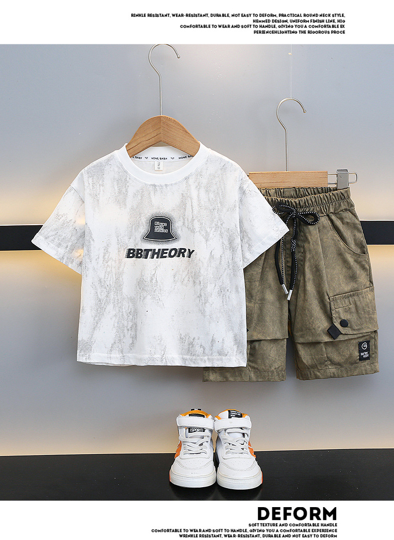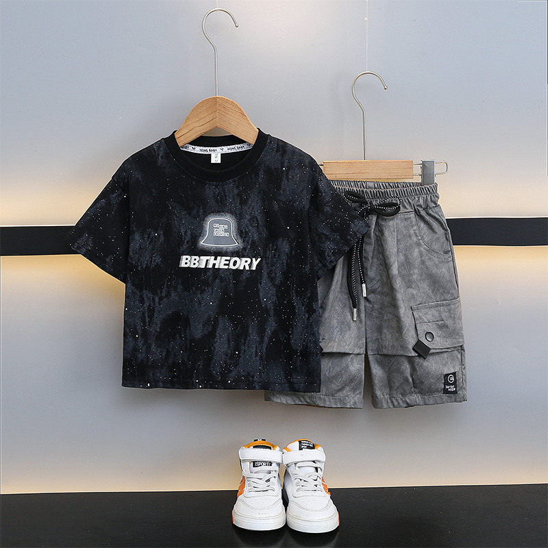 남학생 '2024 년 새 여름 반팔 세트 세련된 아동복 유행 중대형 어린이 여름 얇은 아동복 트렌디