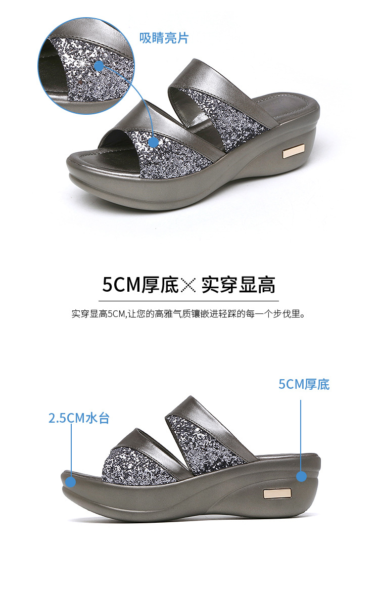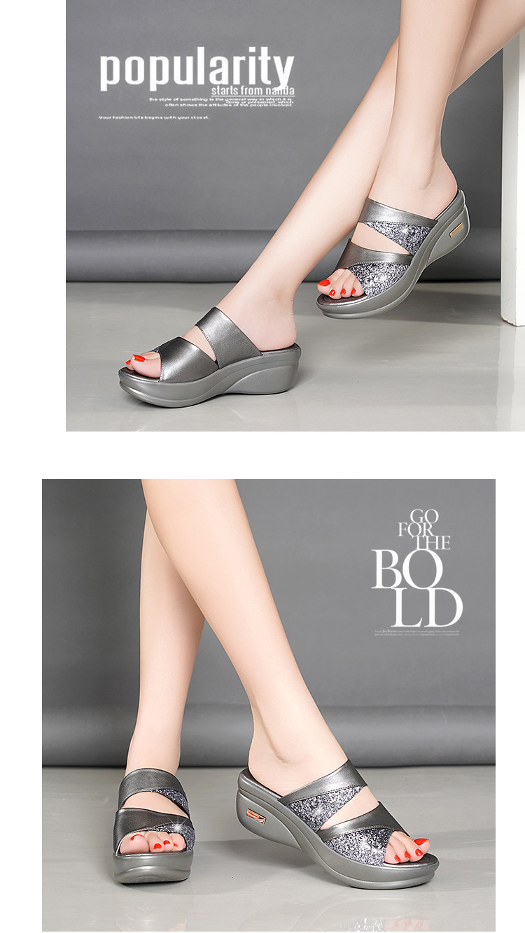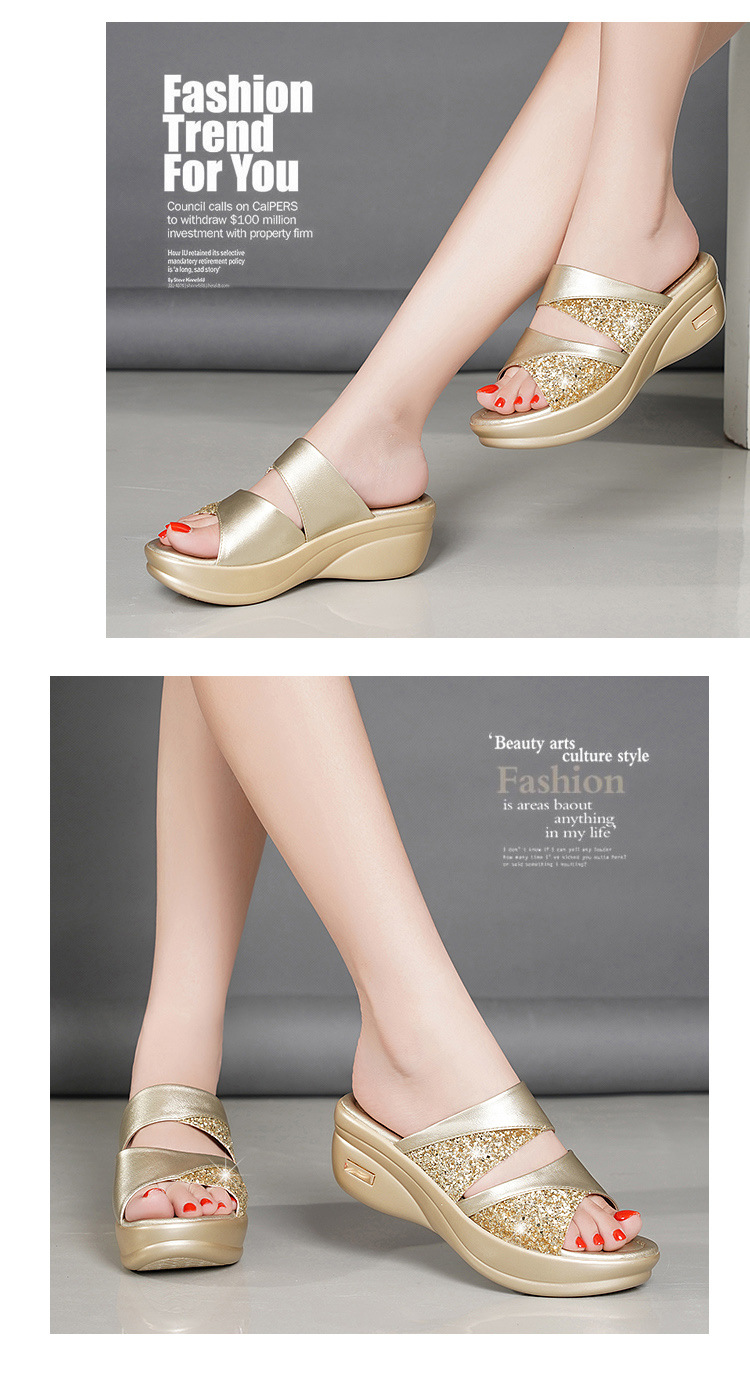 샌들과 슬리퍼 여성 여름 야외 착용 패션 2023 새로운 두꺼운 바닥 머핀 웨지 여성의 좋은 생선 입 스팽글 슬리퍼