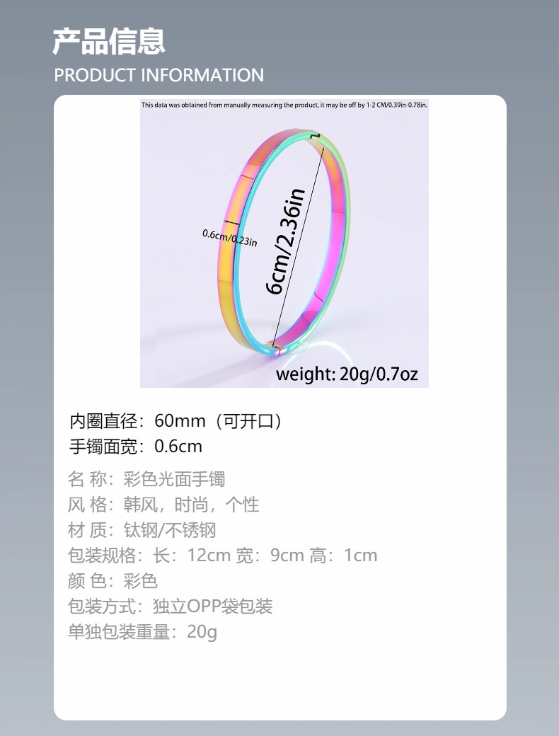 티타늄 팔찌 다채로운 광택 팔찌 소녀의 높은 감각 절묘한 성격 간단한 세트 로고 팔찌스토어 가기