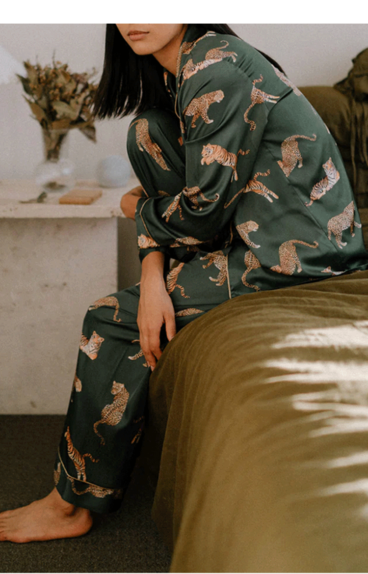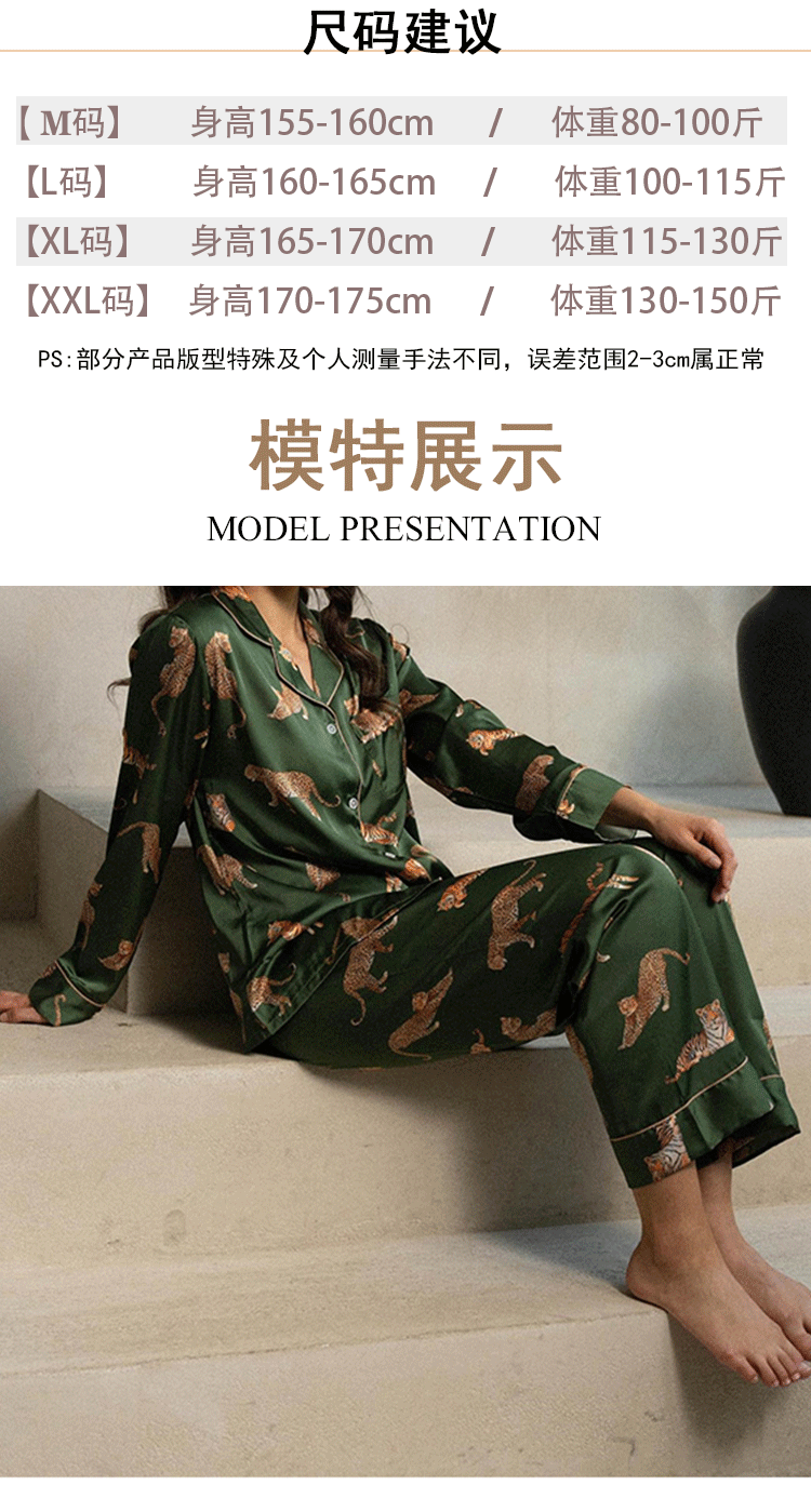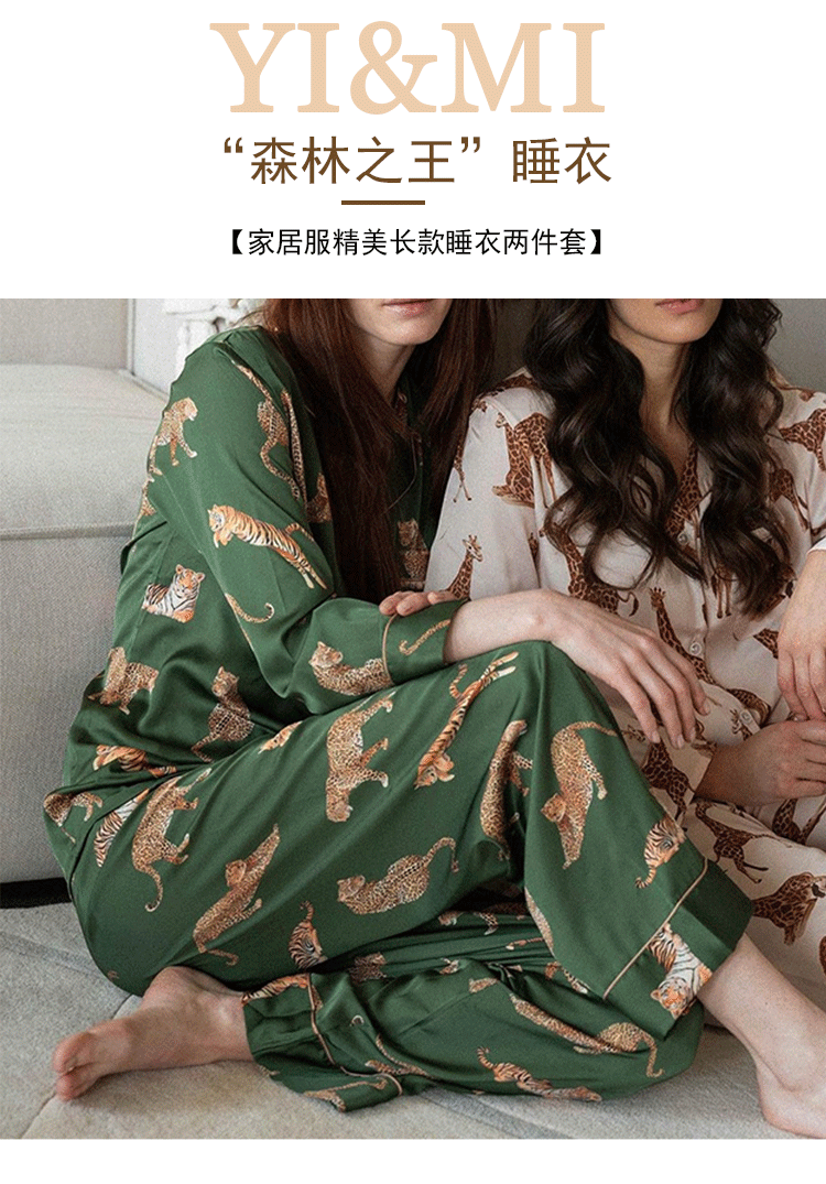 상하이 스토리 Mishiti 같은 스타일 유행 브랜드 대외 무역 틈새 숲 호랑이 패션 아이스 실크 긴 소매 바지 여성용 파자마스토어 가기