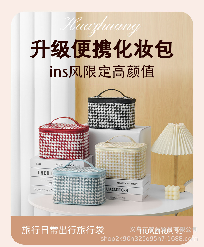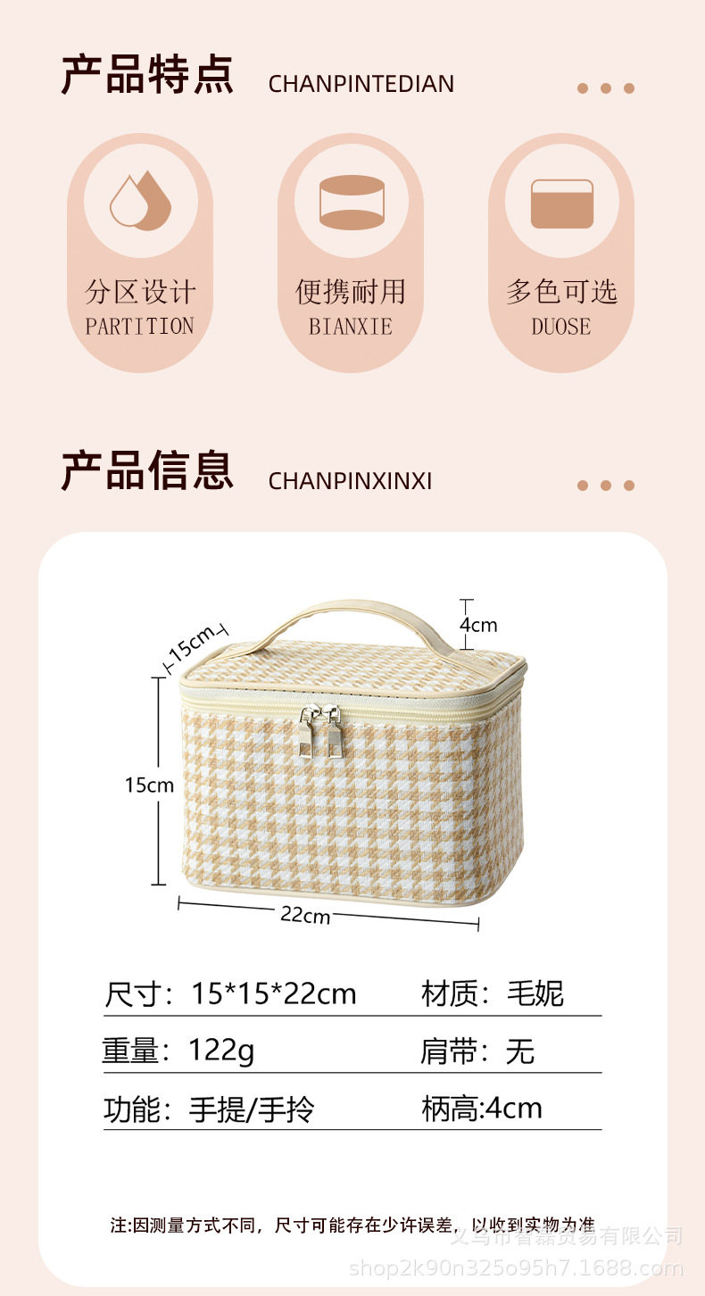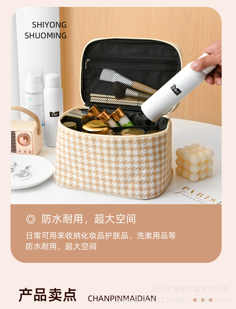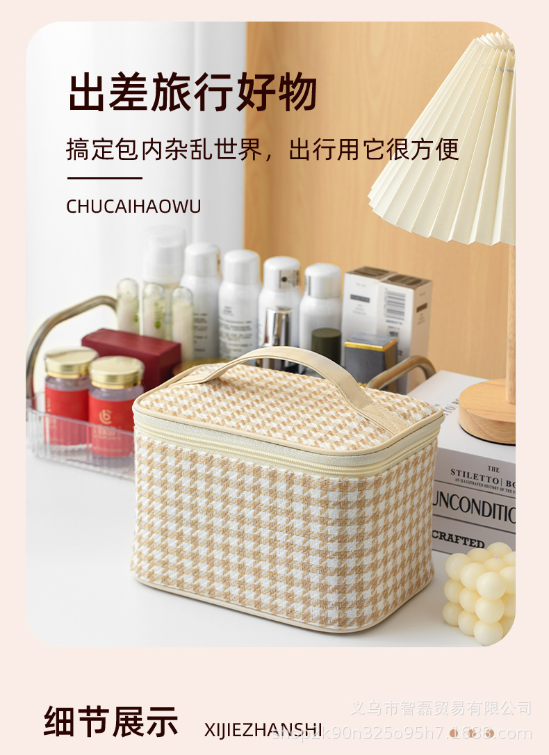 2024 새로운 Houndstooth 화장품 가방 하이 엔드 확장 저장 가방 휴대용 여행 손 씻기 가방