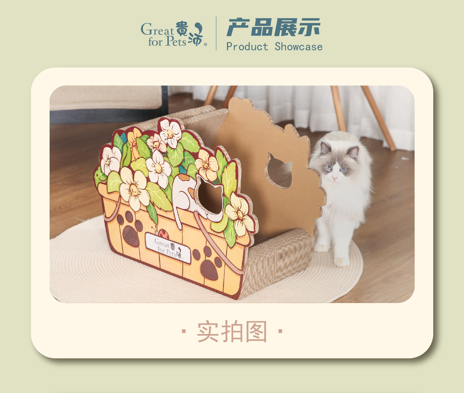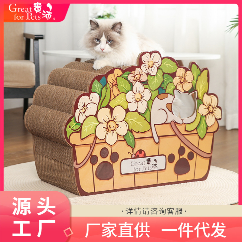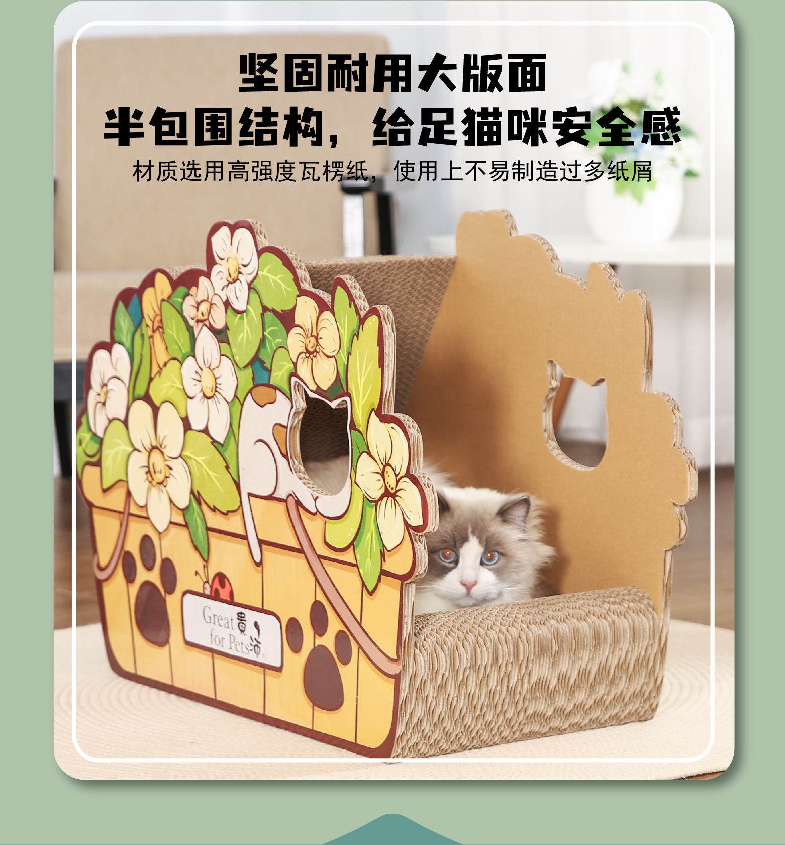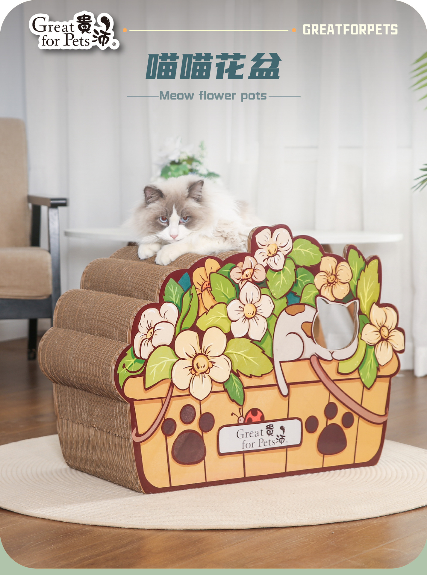 Guipei-Meow Meow 꽃 냄비-무료 조립 고양이 스크래치 보드 둥지 골판지 장난감 고양이 둥지 고양이 집 고양이 연삭 발톱스토어 가기