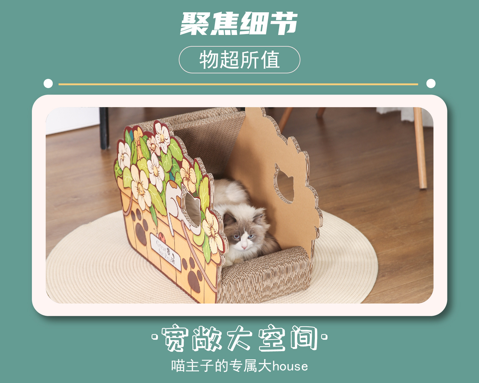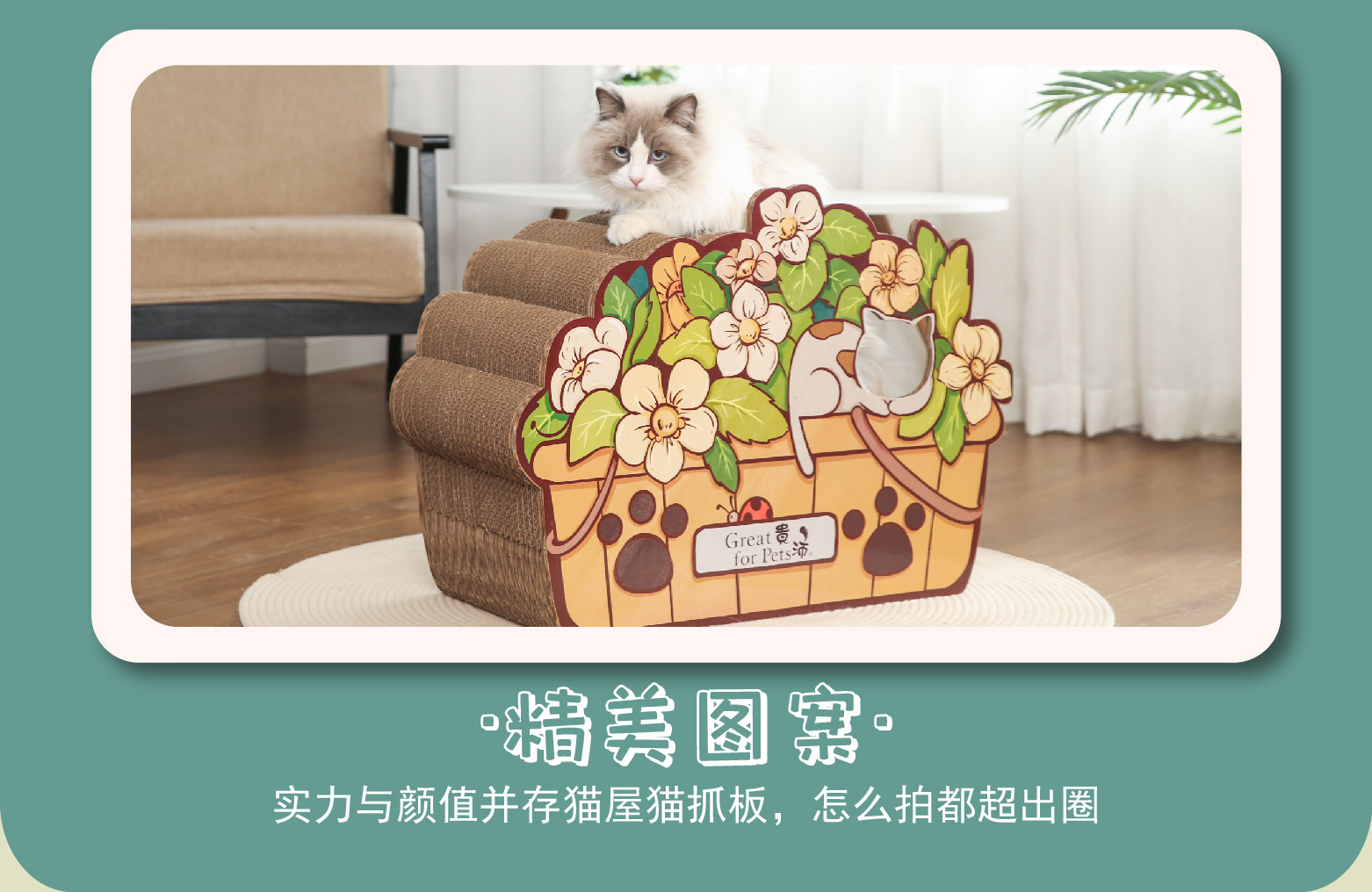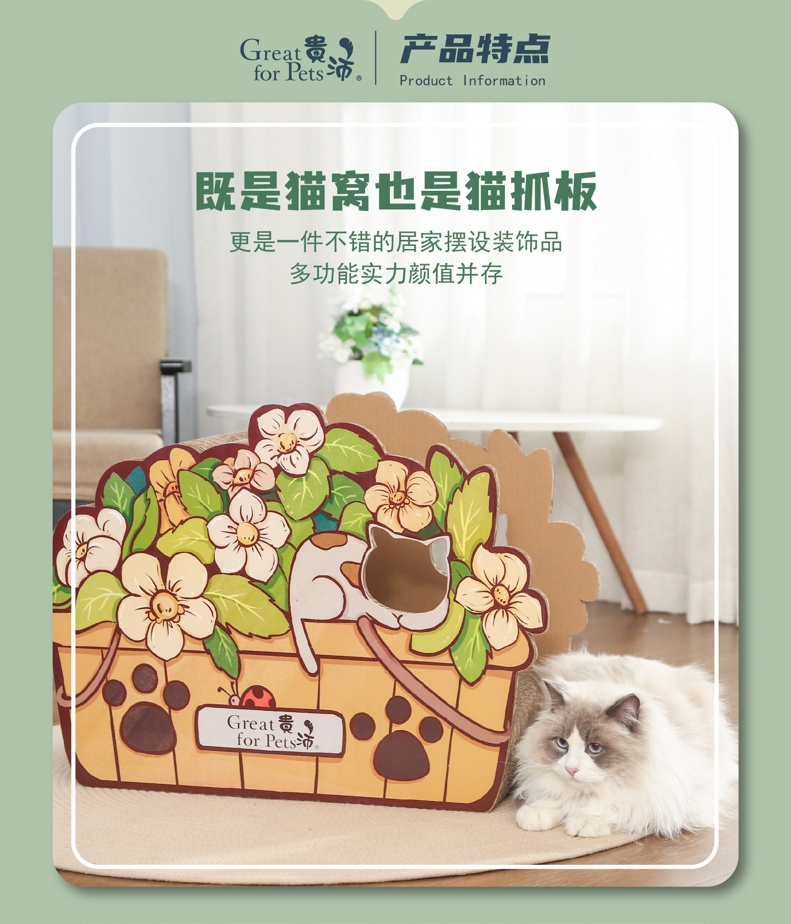 Guipei-Meow Meow 꽃 냄비-무료 조립 고양이 스크래치 보드 둥지 골판지 장난감 고양이 둥지 고양이 집 고양이 연삭 발톱스토어 가기