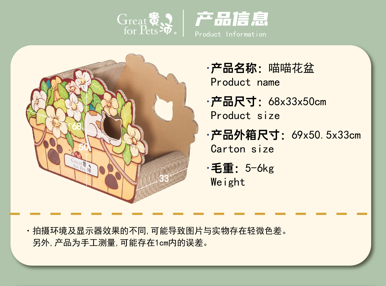 Guipei-Meow Meow 꽃 냄비-무료 조립 고양이 스크래치 보드 둥지 골판지 장난감 고양이 둥지 고양이 집 고양이 연삭 발톱