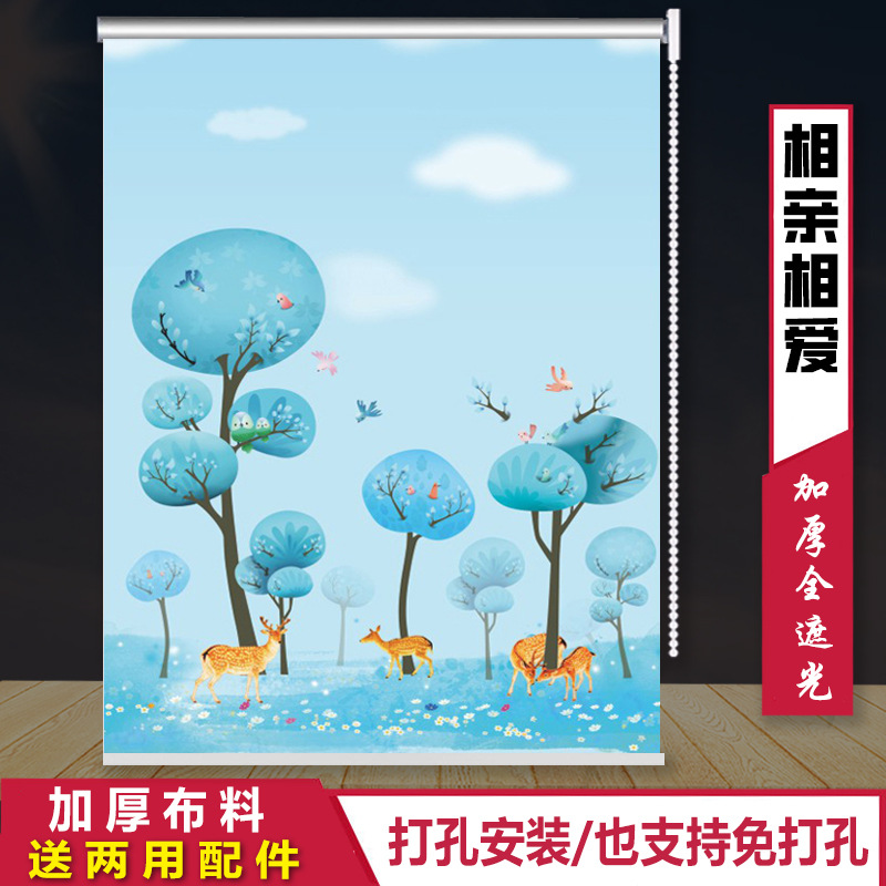 전체 정전 커튼 지퍼 롤업 교수형 사진 완전한 세트 커튼 침실 정전 주방 펀치 프리