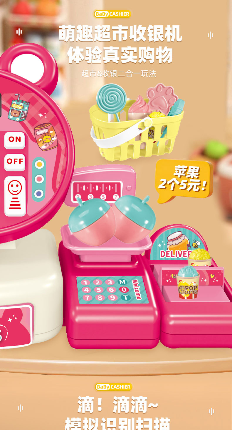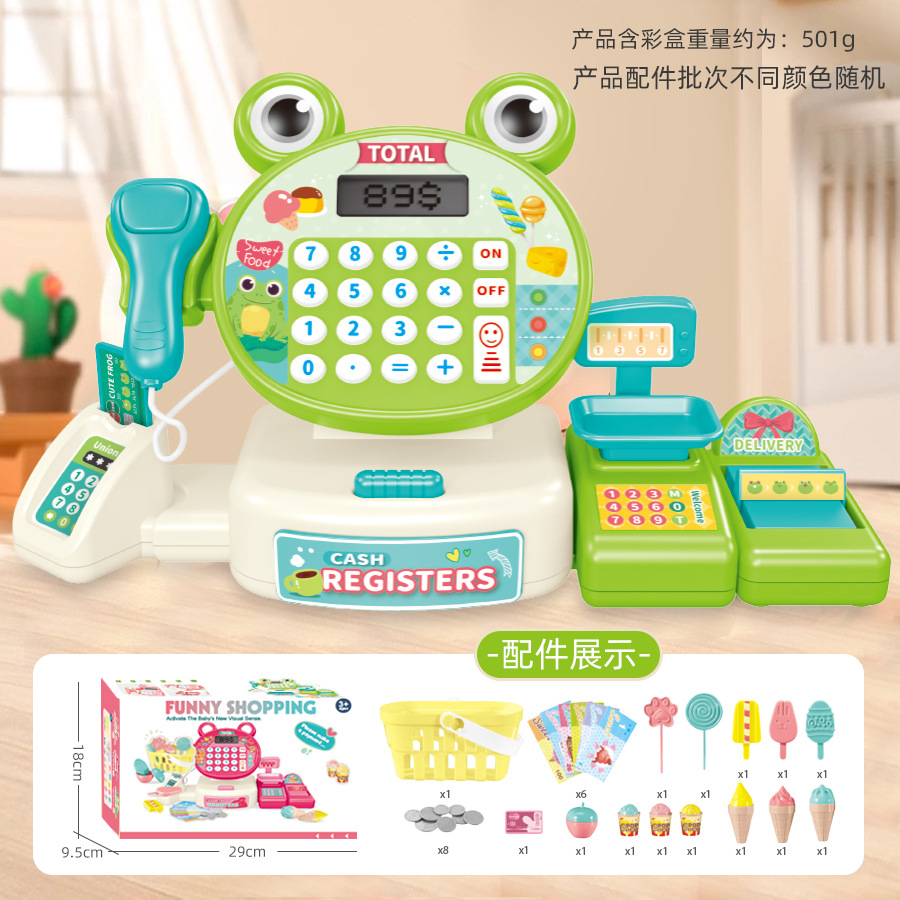 국경 간 어린이 놀이 시뮬레이션 슈퍼마켓 금전 등록기 만화 개구리 쇼핑 컴퓨터 음향 효과 소녀 장난감