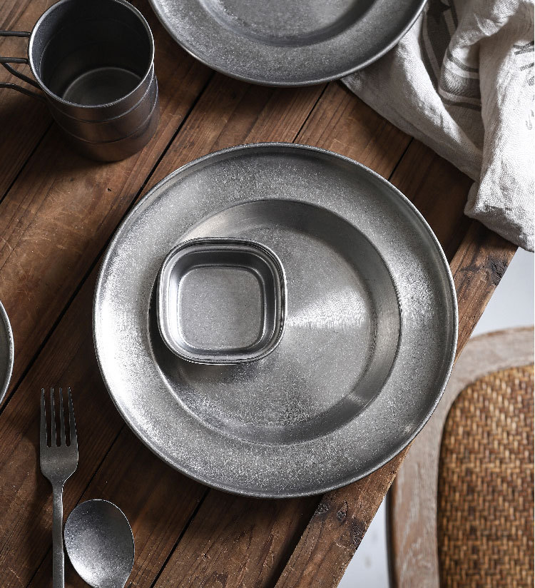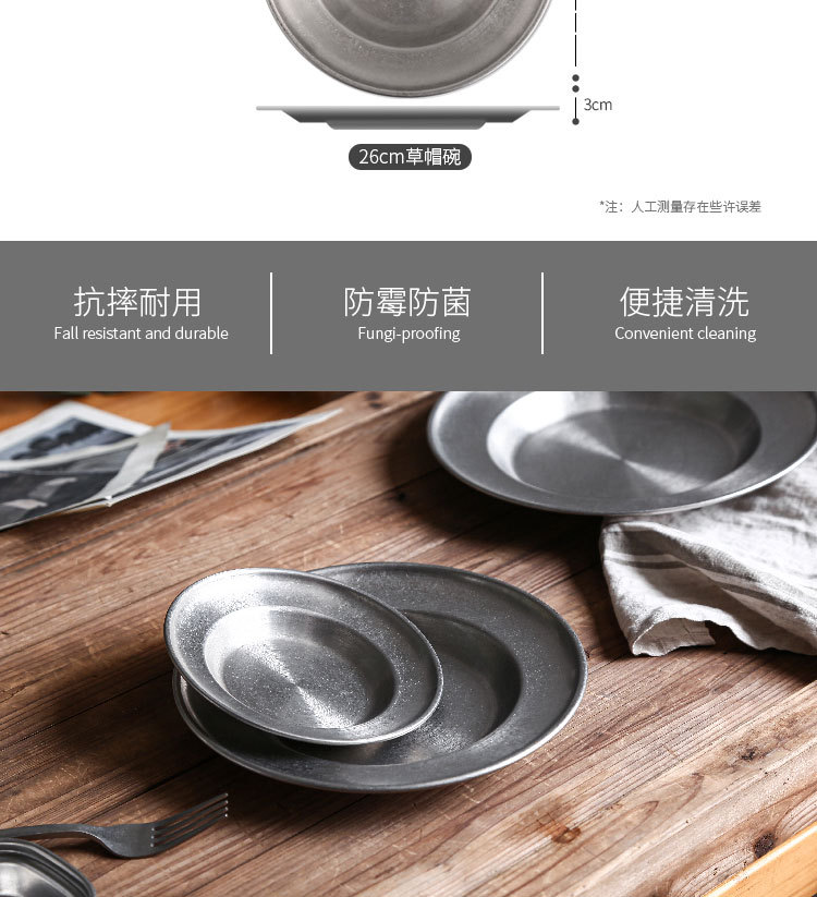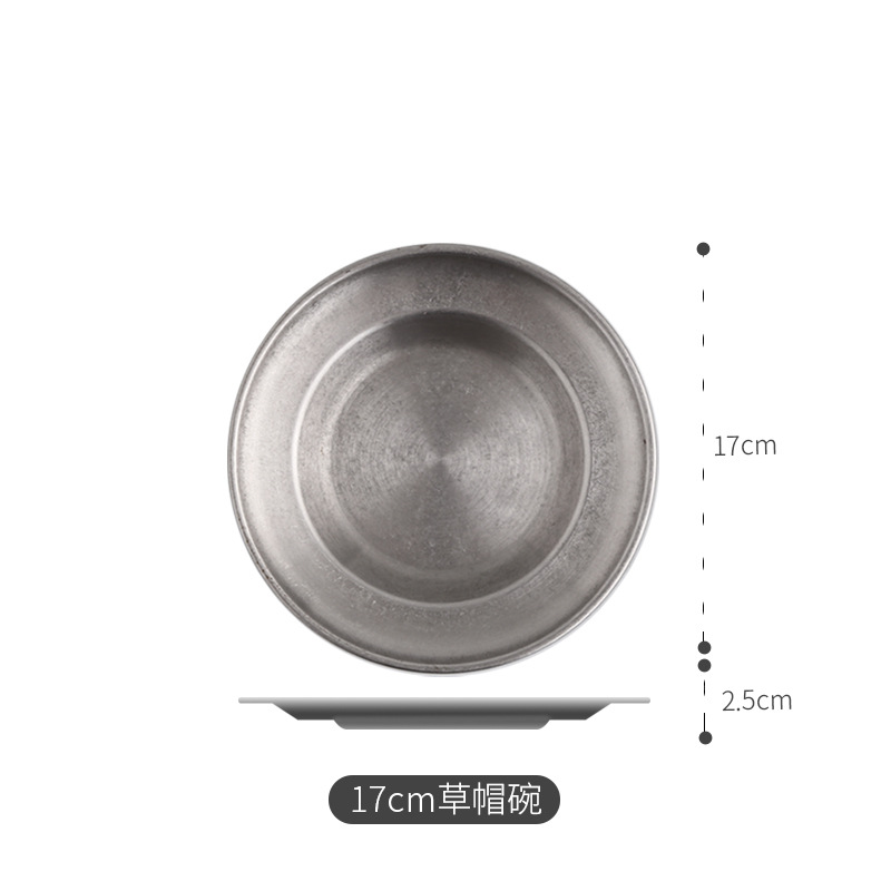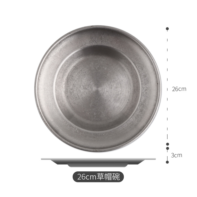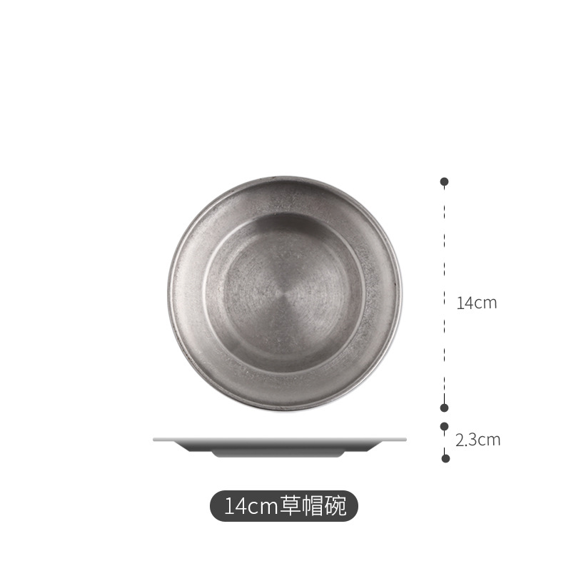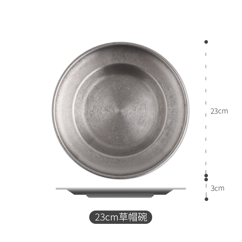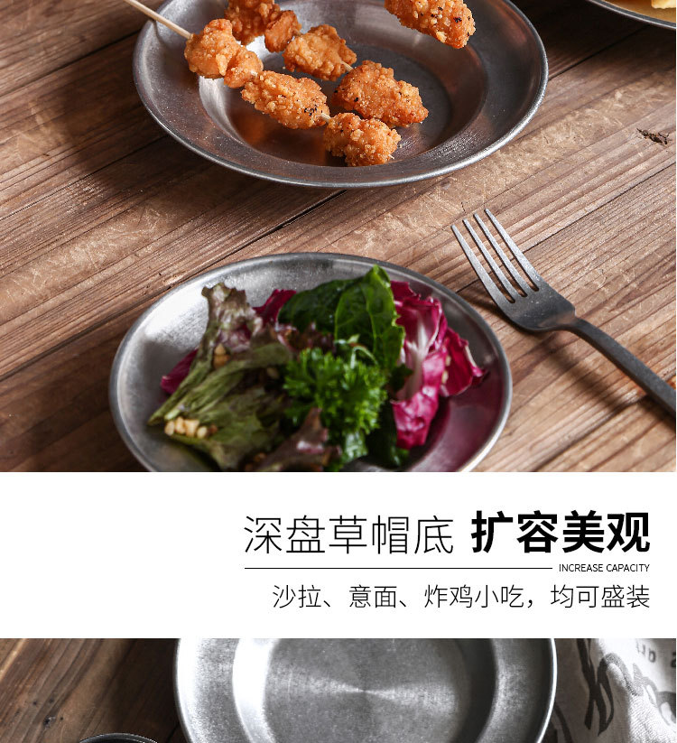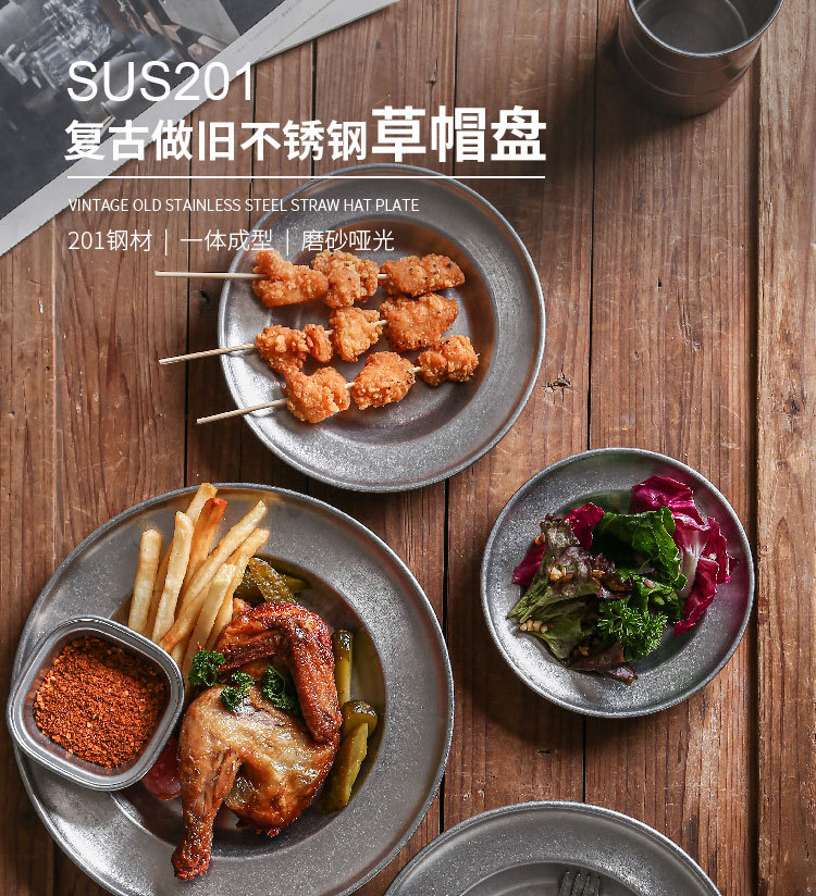 빈티지 스테인레스 스틸 밀짚 모자 디저트 프라이 프라이드 치킨 파갓 살라 플레이트 웨스턴 식기 미국 레스토랑스토어 가기