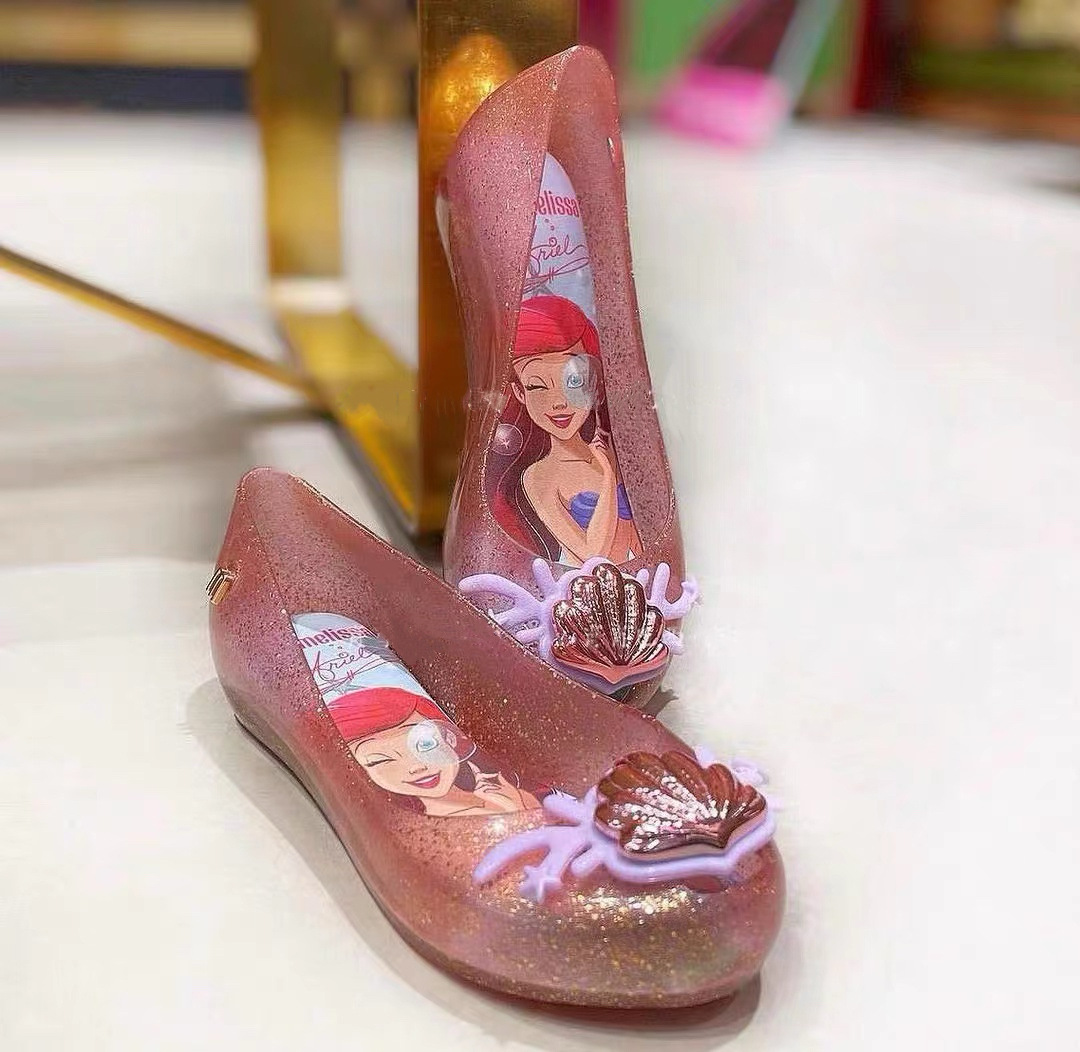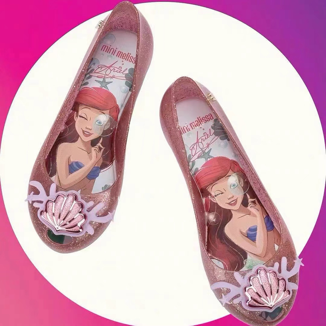 멜리사 2024 새로운 소녀 샌들 큰 키즈 냉동 만화 공주 신발 소프트 단독 생선 발가락 젤리 신발스토어 가기