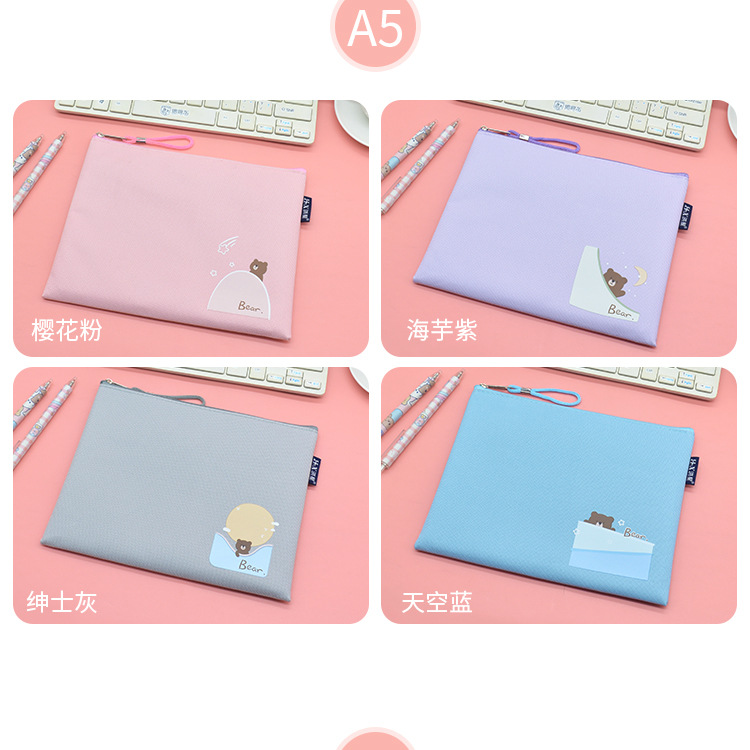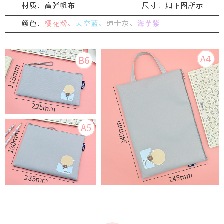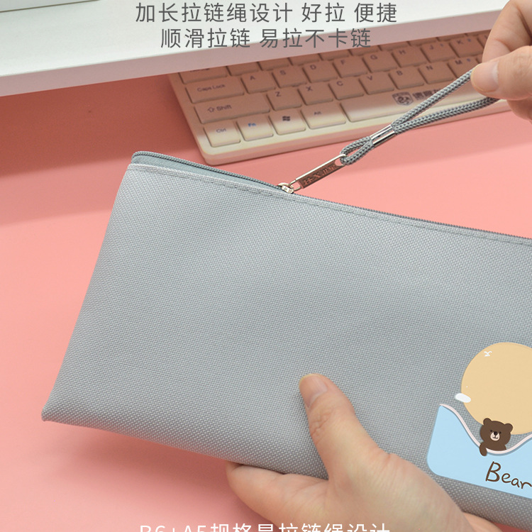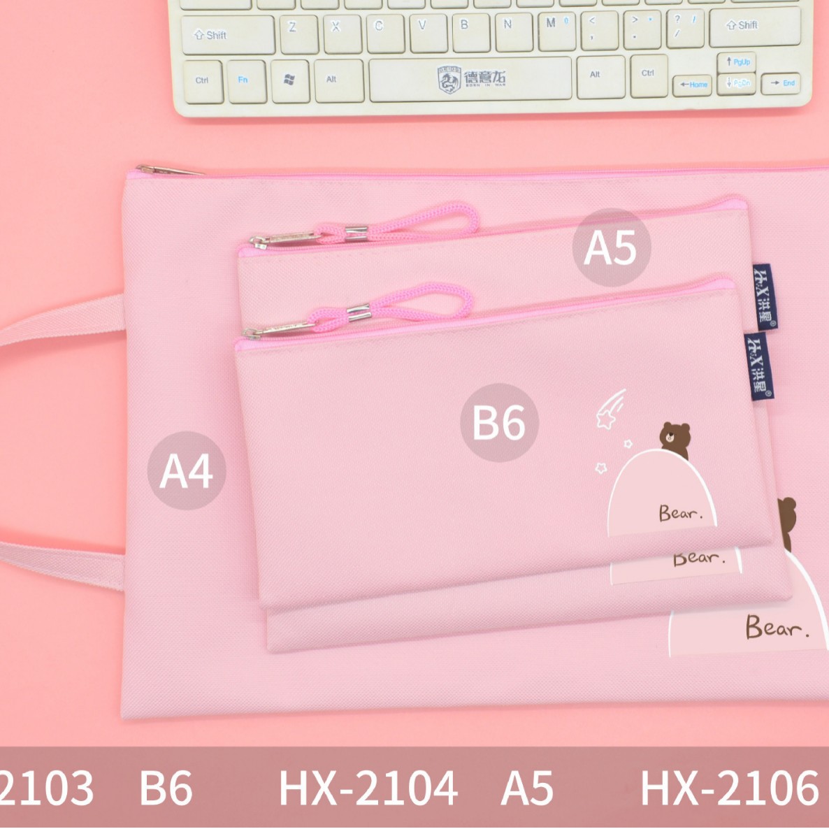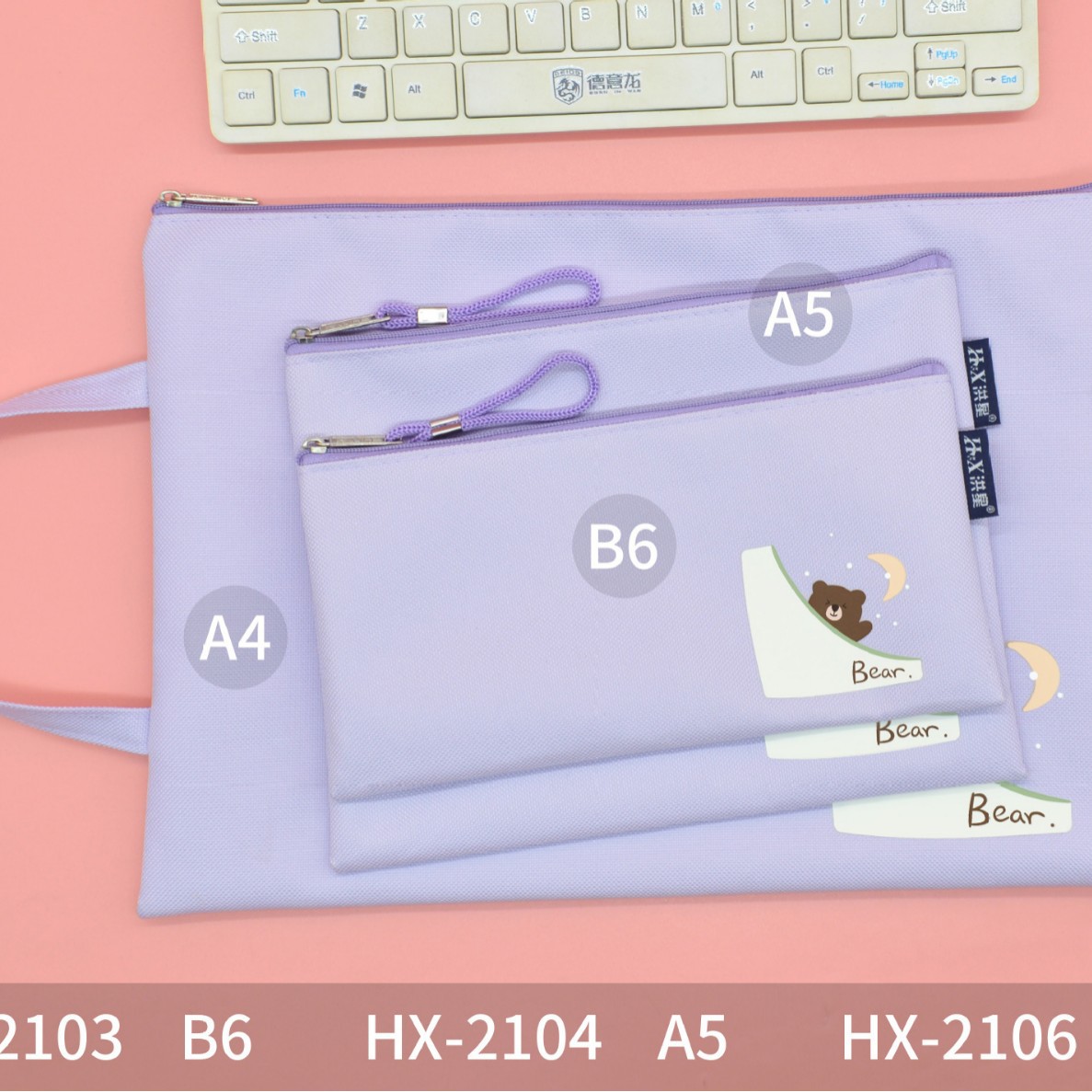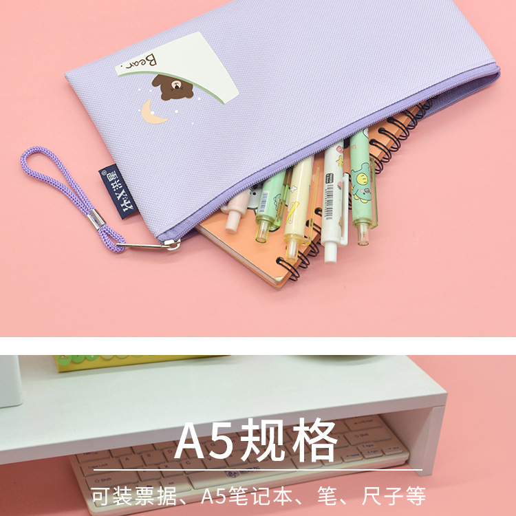 홍싱 A4A5 만화 캔버스 파일 가방 귀여운 지퍼 가방 학생 정보 가방 만화 연필 케이스 나일론 보관 가방