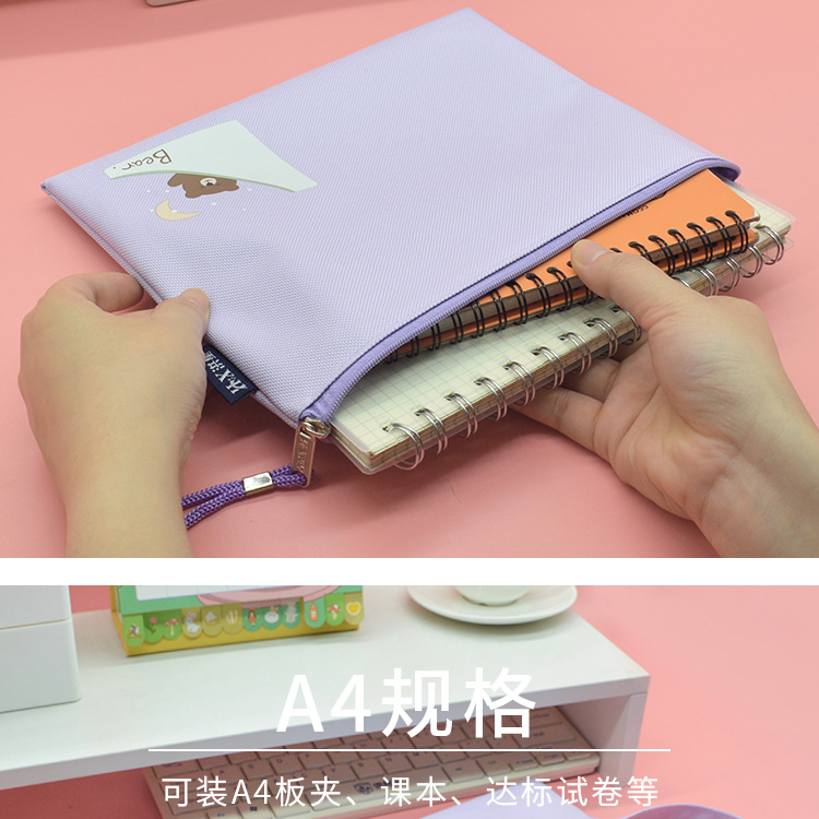 홍싱 A4A5 만화 캔버스 파일 가방 귀여운 지퍼 가방 학생 정보 가방 만화 연필 케이스 나일론 보관 가방스토어 가기