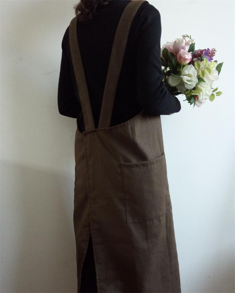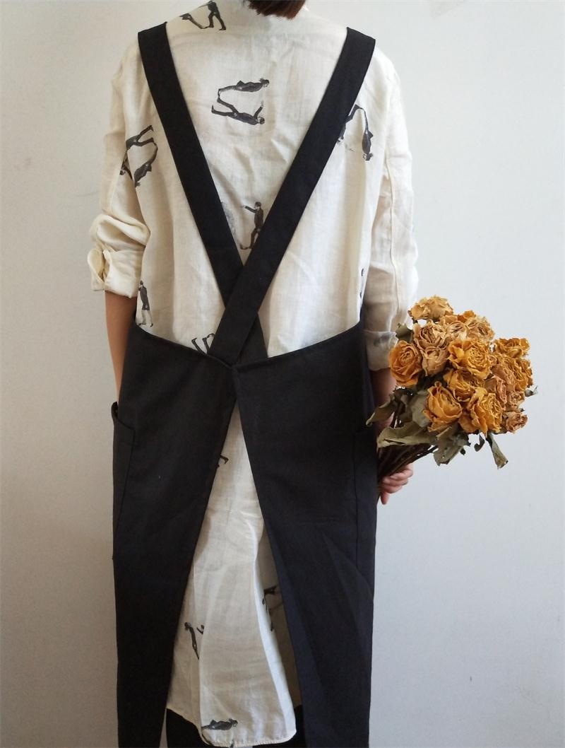 夏季文艺棉麻围裙长款家居烘焙甜点师咖啡店花艺绘画美术围裙批发