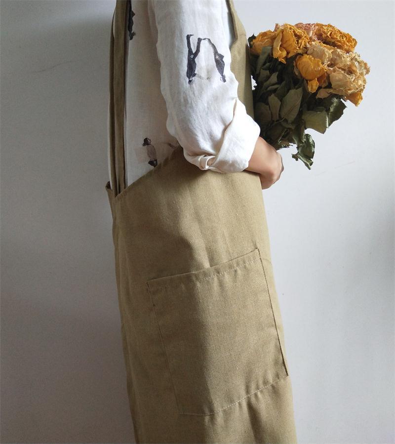 여름용 면마 앞치마 롱 스타일 홈베이킹 디저트 요리사 커피숍 꽃꽂이 그림 예술 앞치마 도매스토어 가기