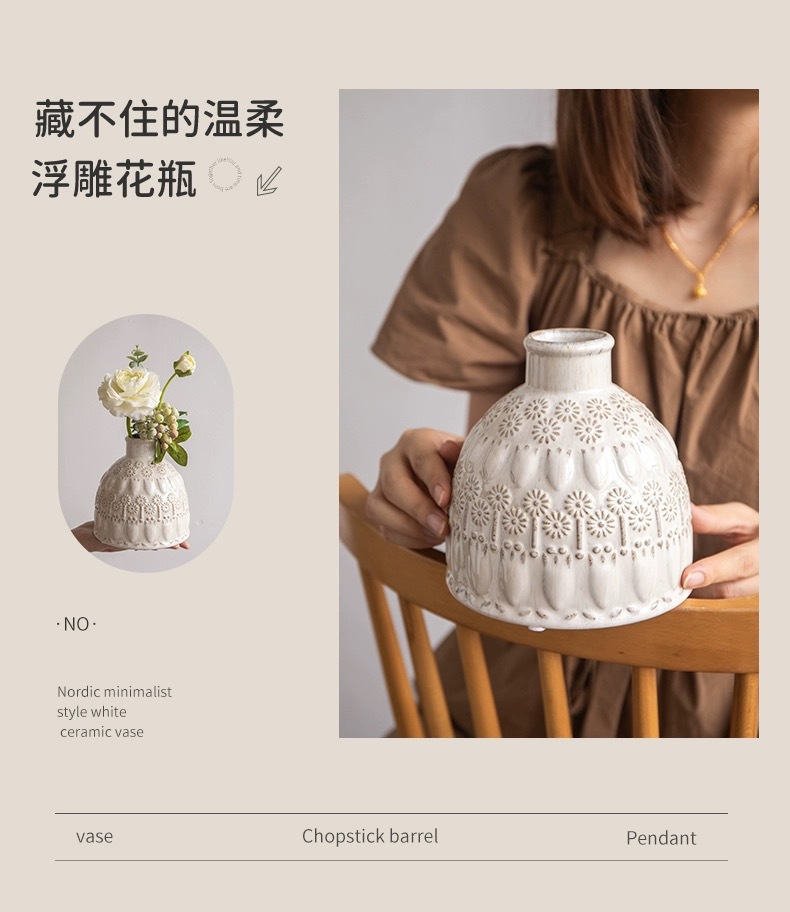 유럽식 레트로 양각 세라믹 꽃병 스타일 레트로 하이 엔드 장식품 거실 식탁 장식 꽃 꽃병스토어 가기