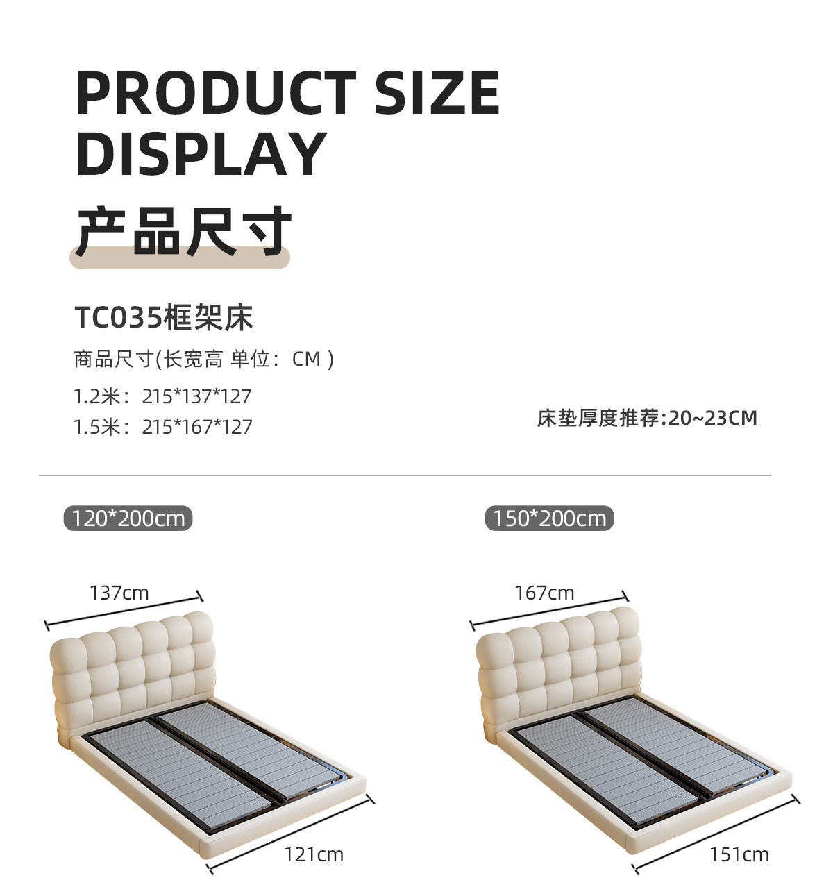 • 천연 소가죽 침대 / 업그레이드된 저소음 스프링 매트리스