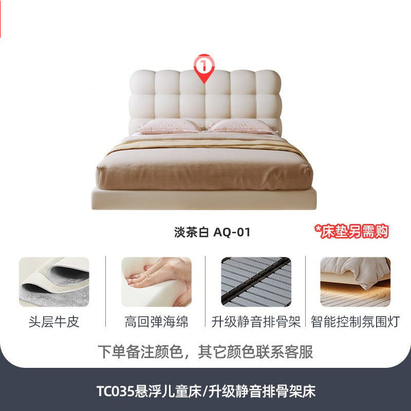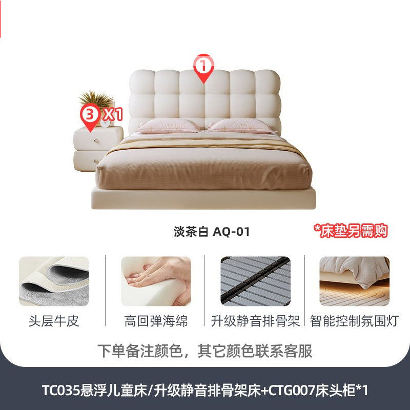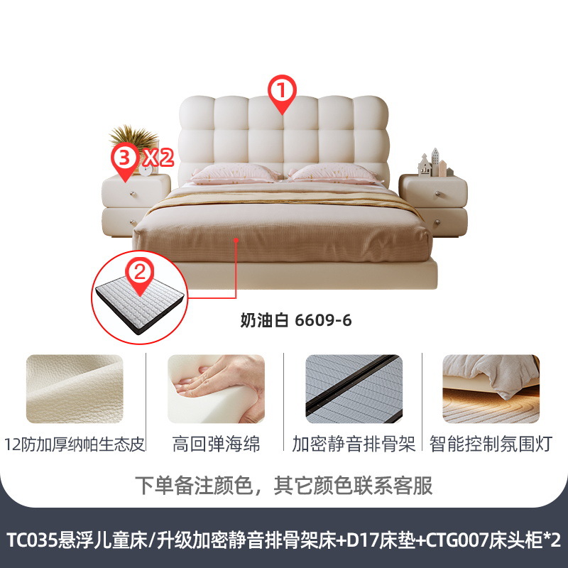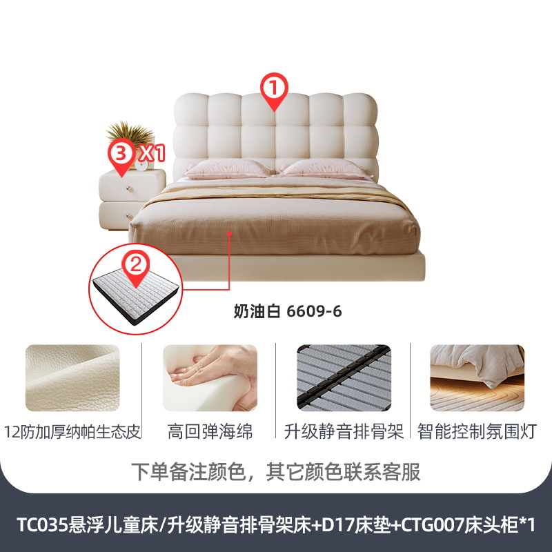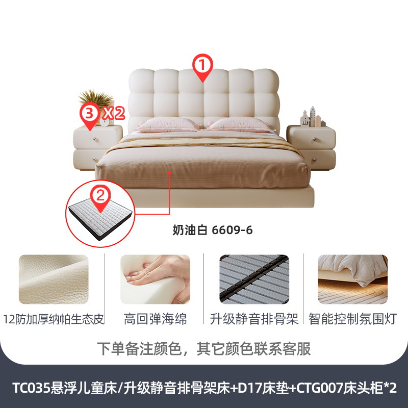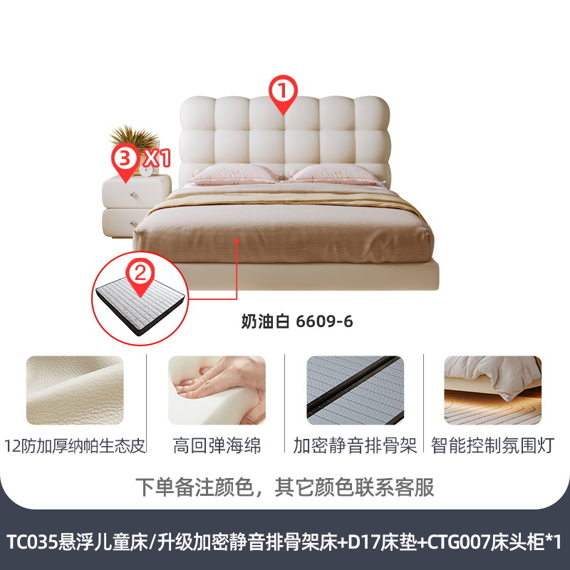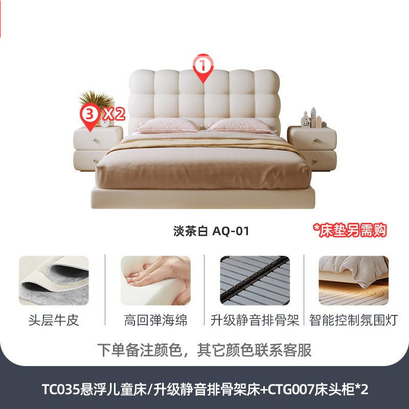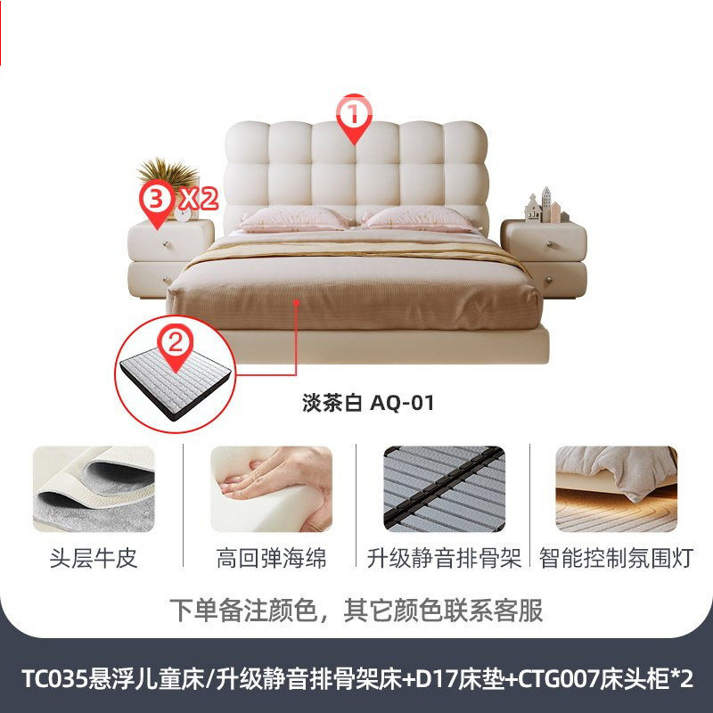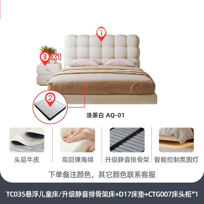 • 1층 소가죽 침대 + D17 쿠션 + 캐비닛 * 1/업그레이드된 무소음 립 프레임